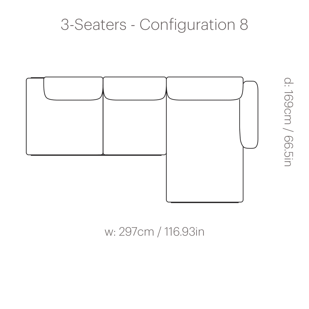 - Configuration 8: 27.6" h x 141.7" w x 152" d (70x360x386cm)