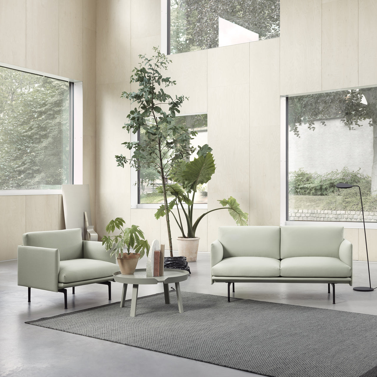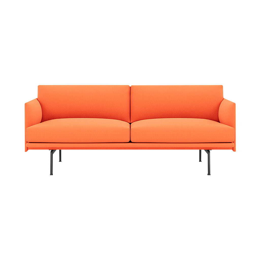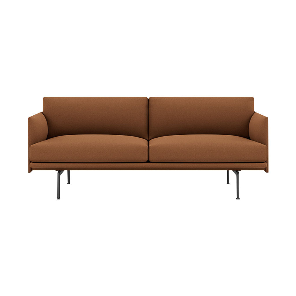 Outline evolves from classic Scandinavian design sofas of the '60s, with a clean profile on the outside and luxuriantly deep seat and back cushioning on the inside. Elegant yet timeless, the 2-seater adds a compact model to designer Anderssen & Voll's distinctively architectural series, with its squared-off form eased on slender powder-coated or polished aluminum legs. Constructed with plywood and steel, the seating is layered with foam beneath the chosen textile or leather and cushions are hand-sewn and filled with premium cold foam.