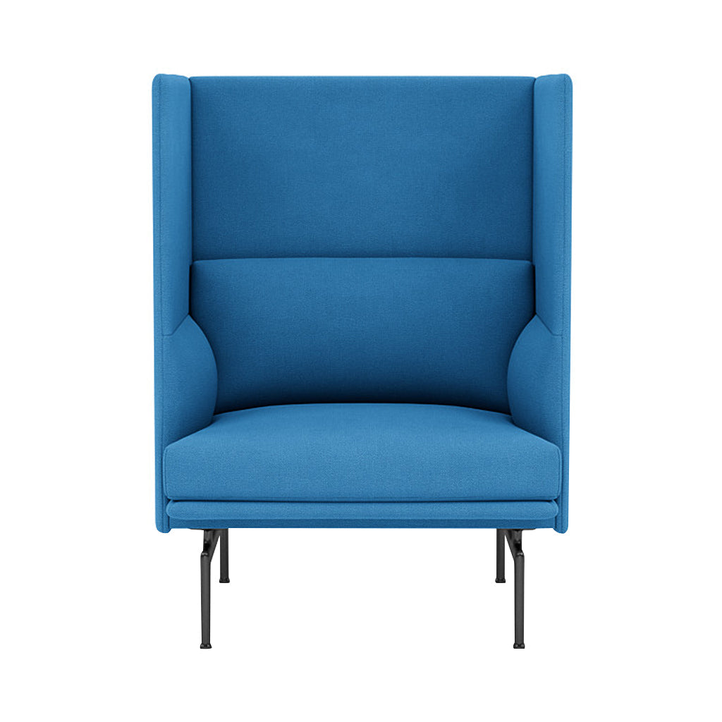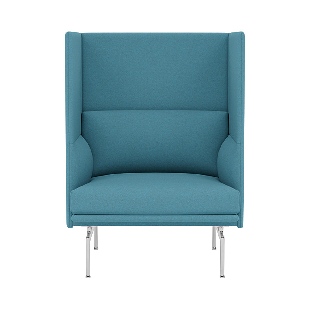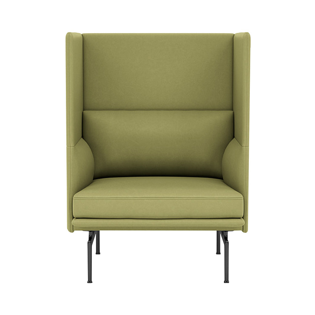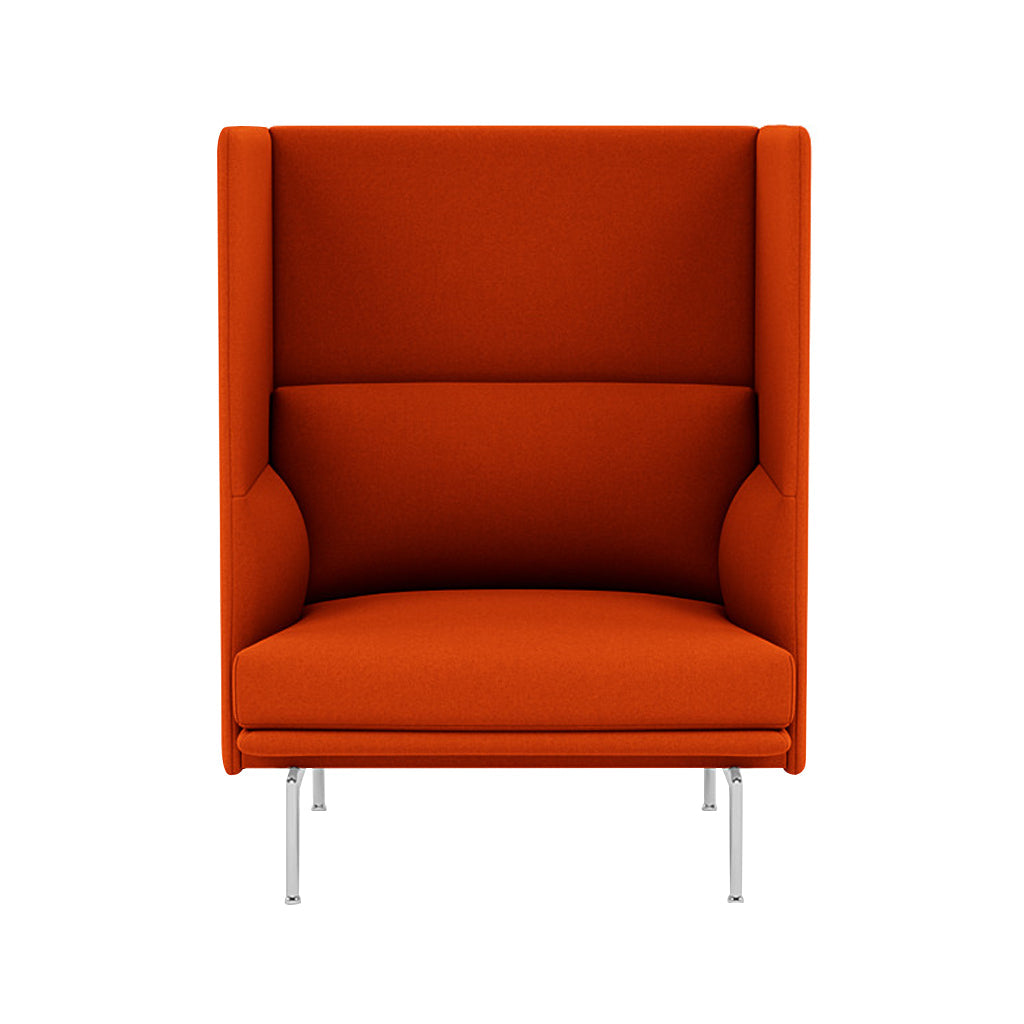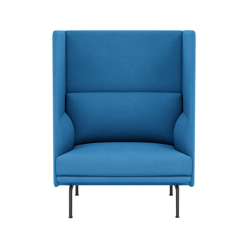 Muuto’s single-seater provides a maximum zone of individual privacy in Outline Highback’s tallest version, with its mix of soft, deeply proportioned comfort and protective boxlike enclosure. Offering a range of custom upholstery choices and trim legs in polished or black aluminum, it makes a welcome haven in open-plan areas.