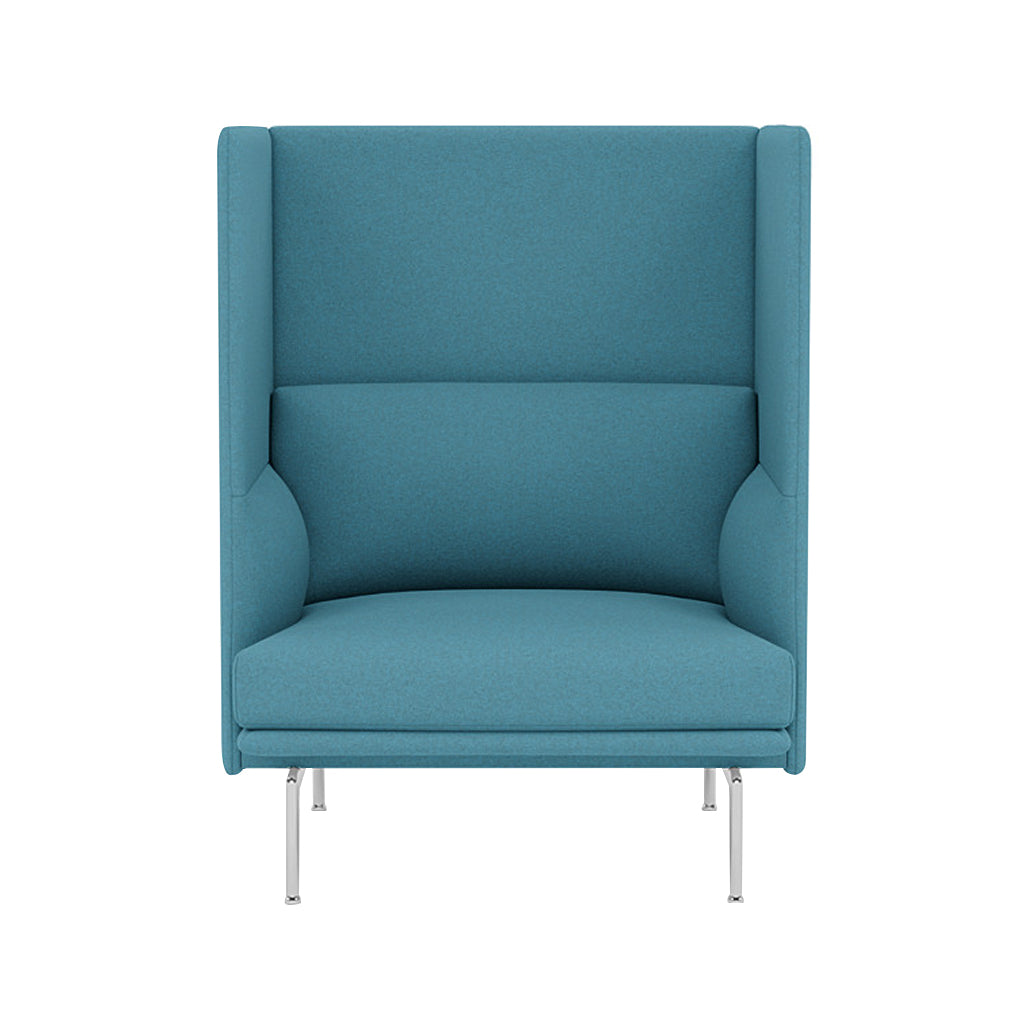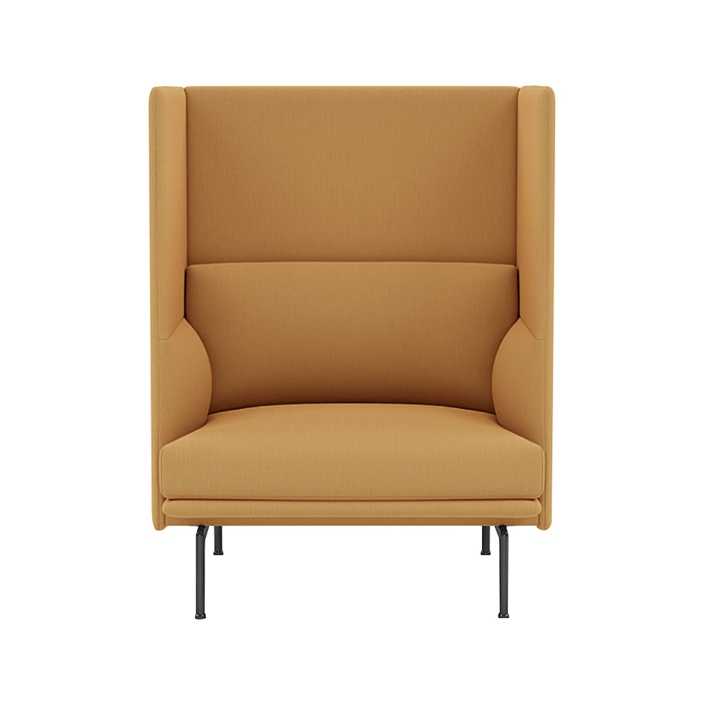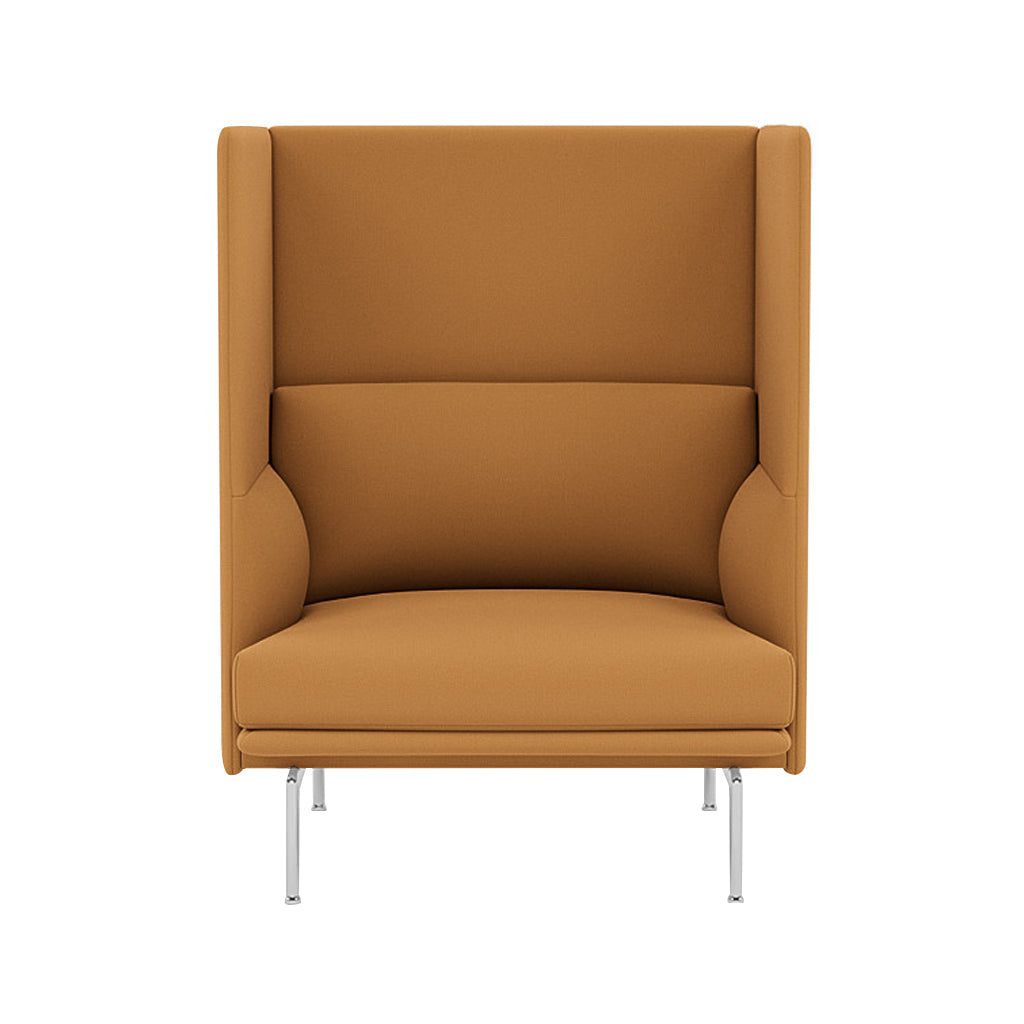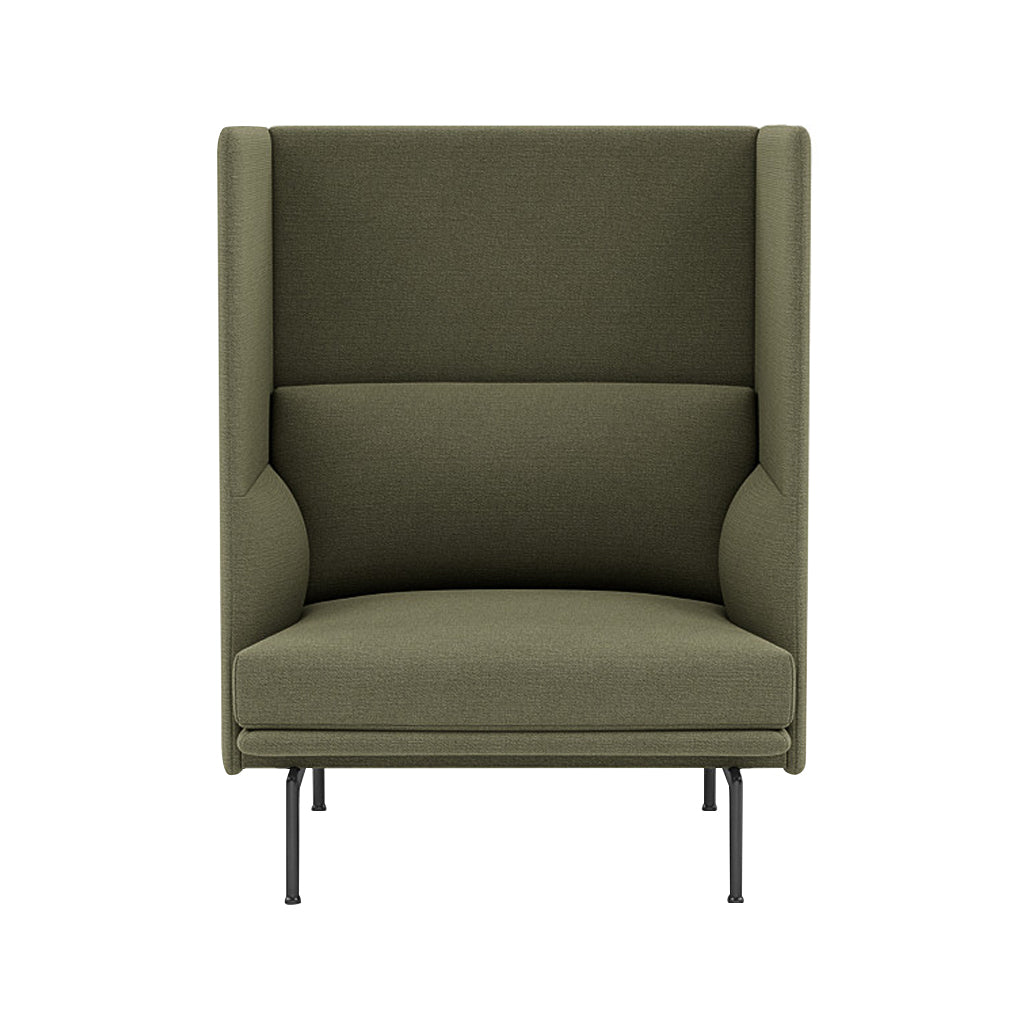 Muuto’s single-seater provides a maximum zone of individual privacy in Outline Highback’s tallest version, with its mix of soft, deeply proportioned comfort and protective boxlike enclosure. Offering a range of custom upholstery choices and trim legs in polished or black aluminum, it makes a welcome haven in open-plan areas.