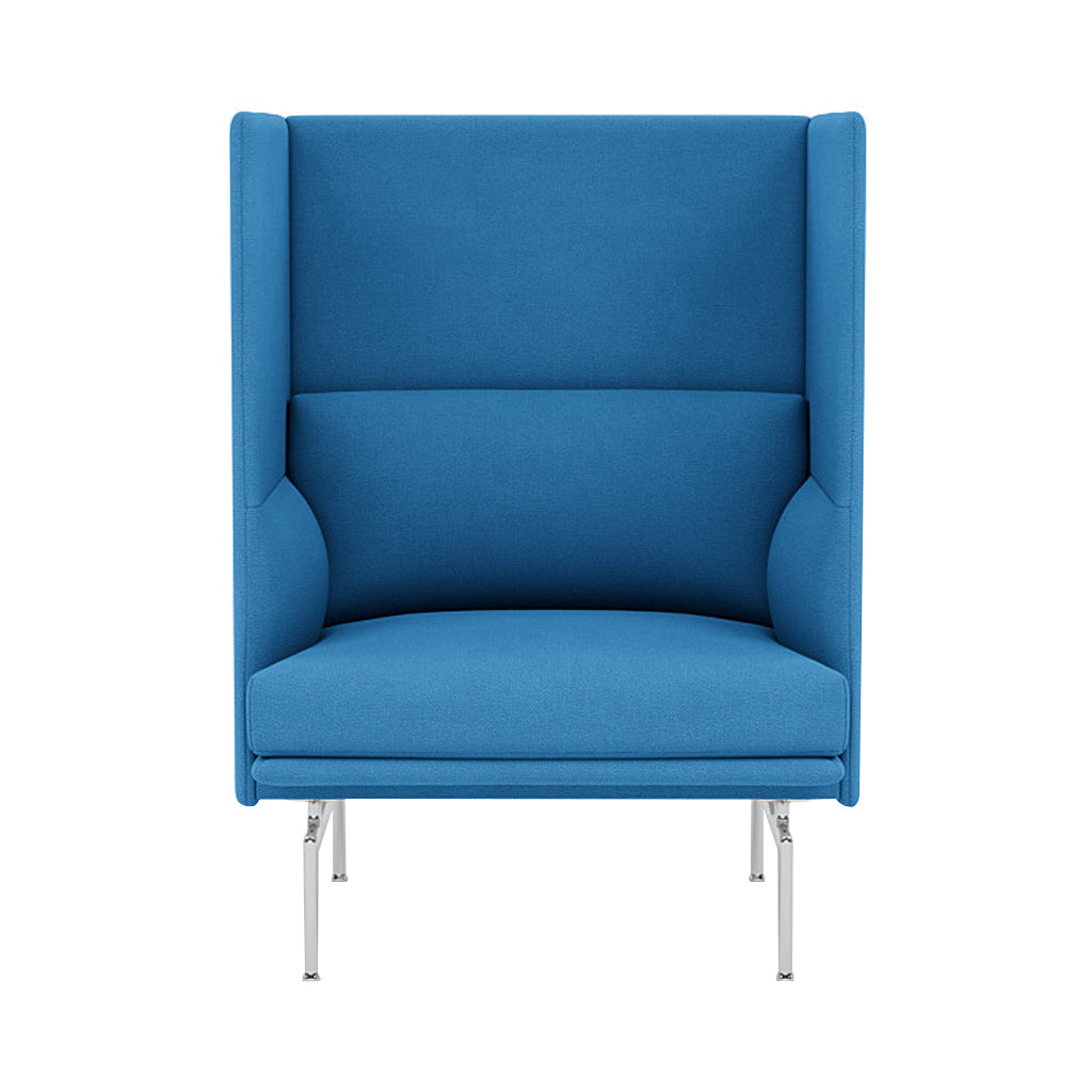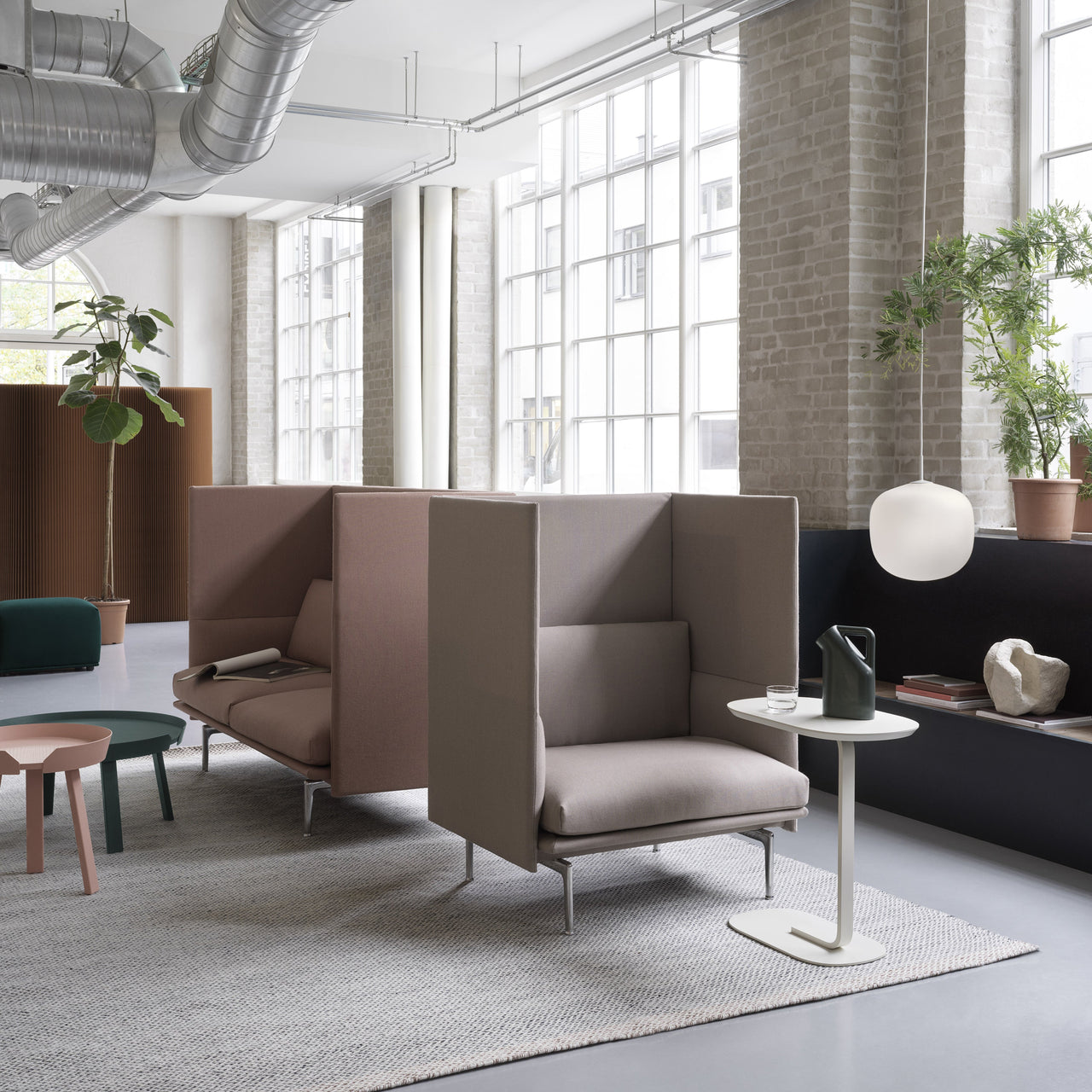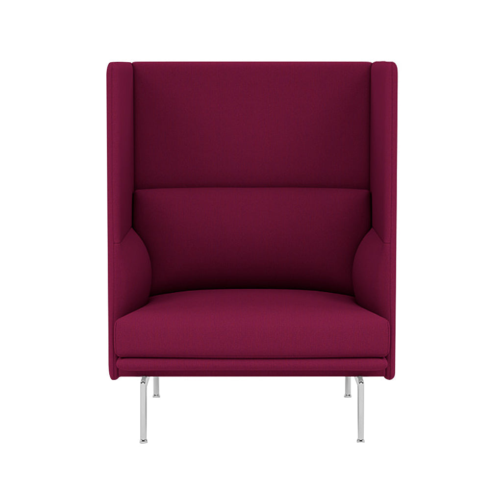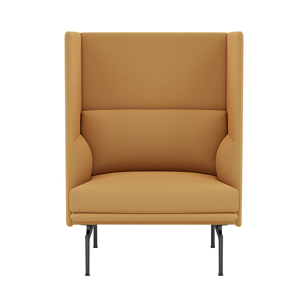 Muuto’s single-seater provides a maximum zone of individual privacy in Outline Highback’s tallest version, with its mix of soft, deeply proportioned comfort and protective boxlike enclosure. Offering a range of custom upholstery choices and trim legs in polished or black aluminum, it makes a welcome haven in open-plan areas.