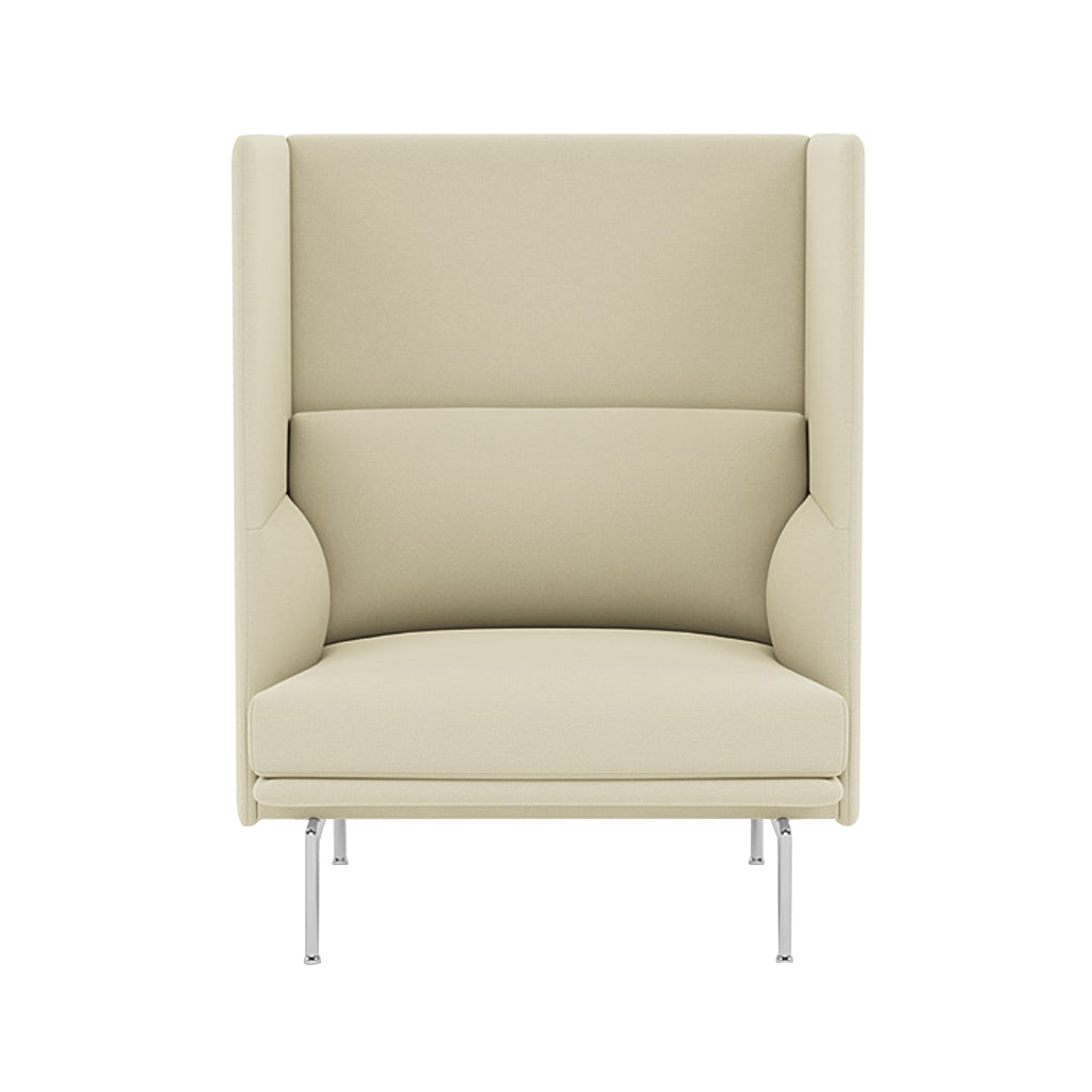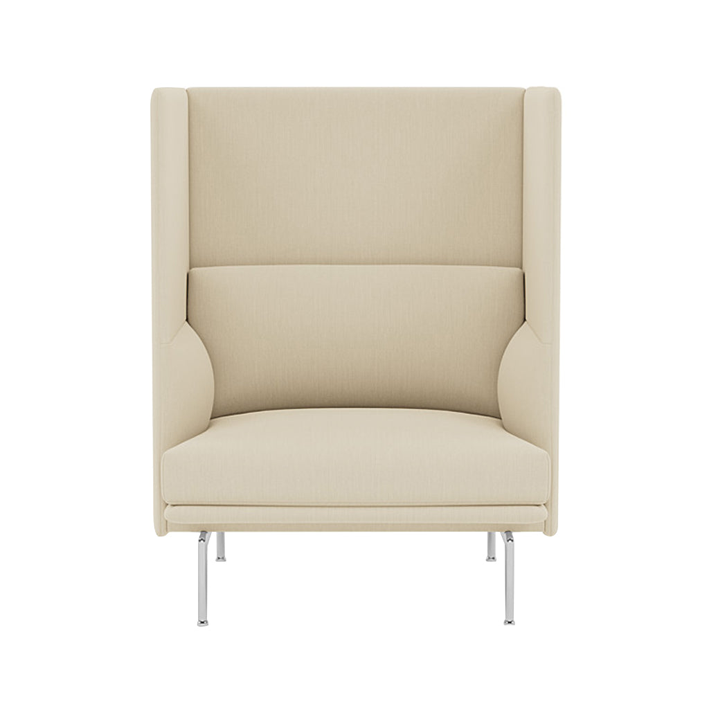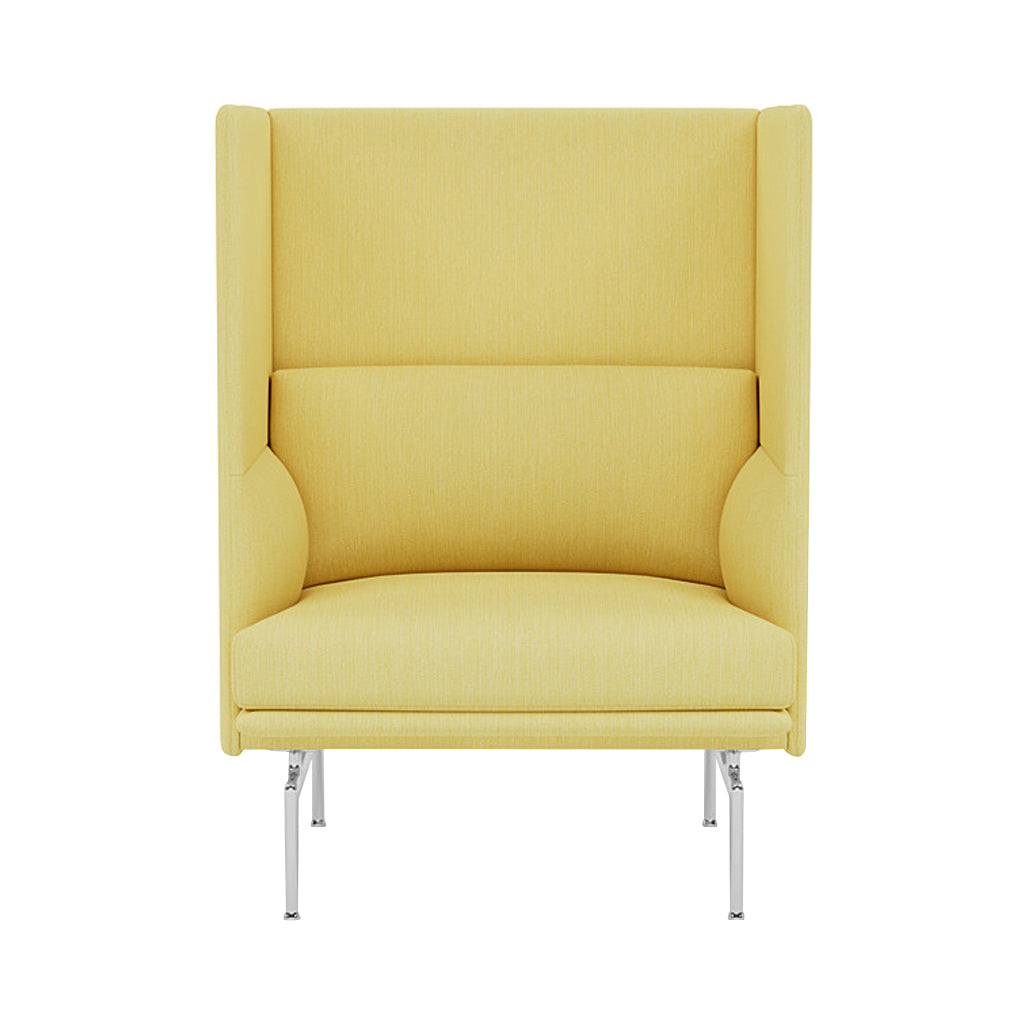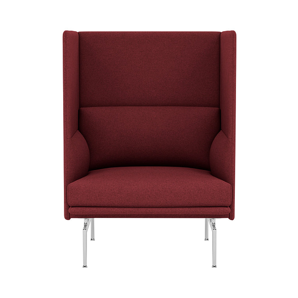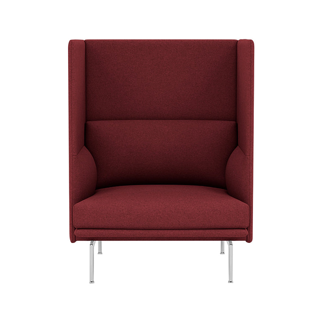 Muuto’s single-seater provides a maximum zone of individual privacy in Outline Highback’s tallest version, with its mix of soft, deeply proportioned comfort and protective boxlike enclosure. Offering a range of custom upholstery choices and trim legs in polished or black aluminum, it makes a welcome haven in open-plan areas.