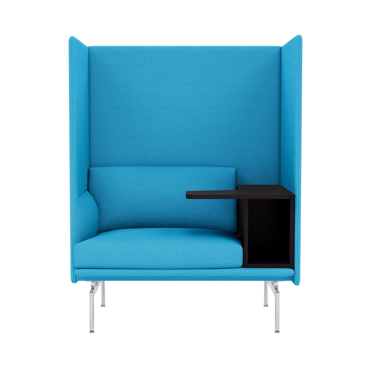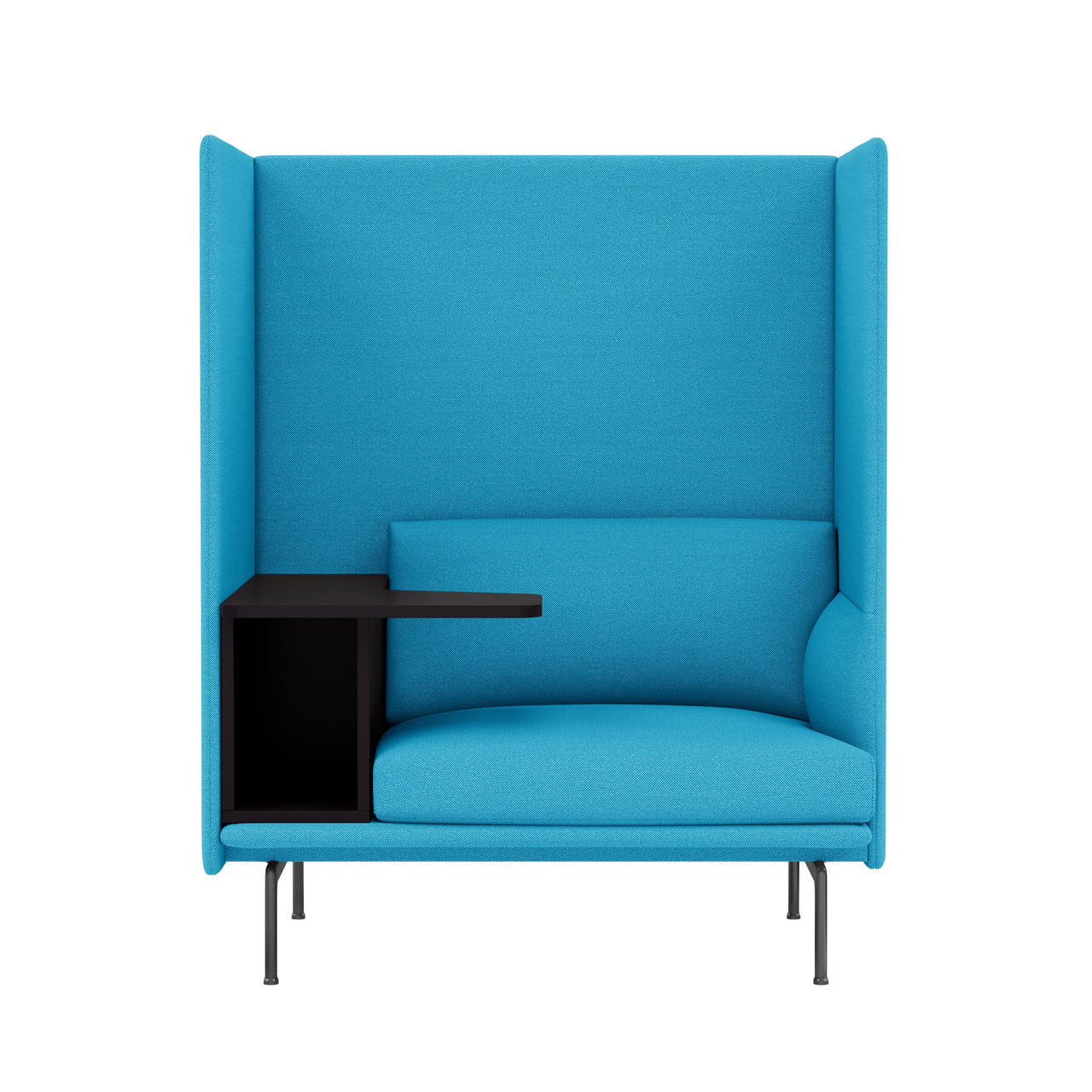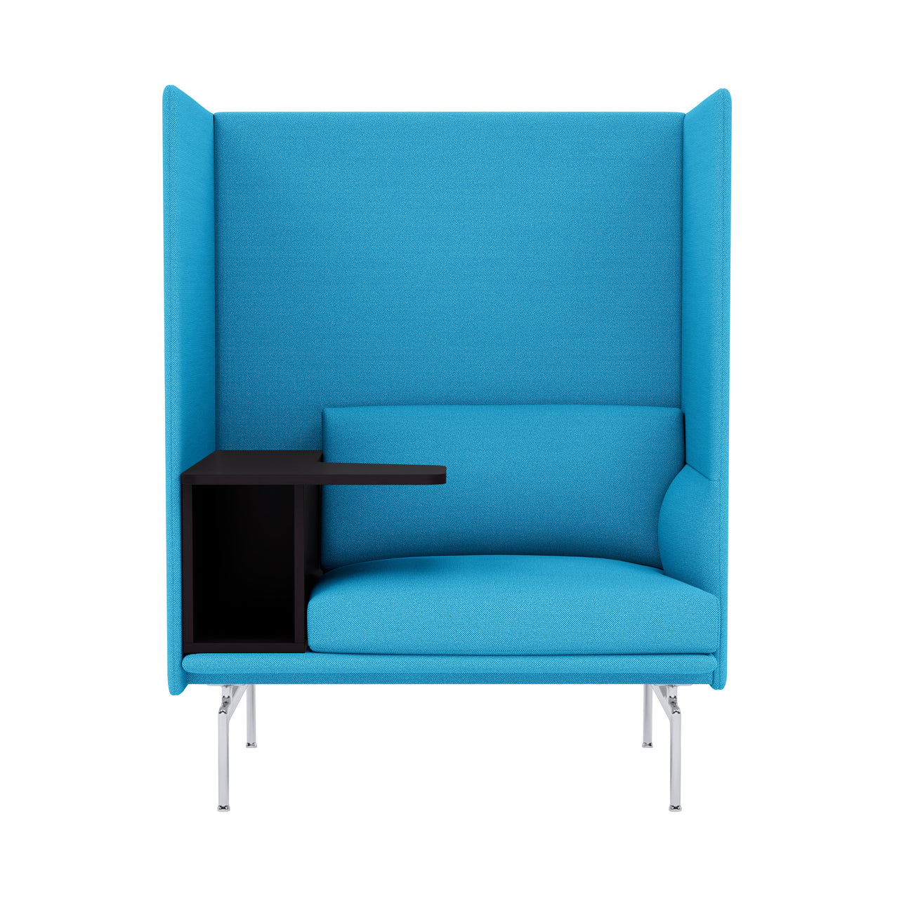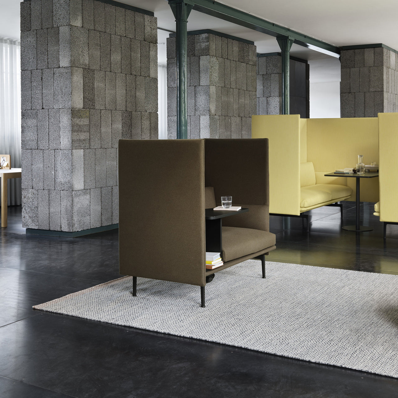 Providing acoustic and spatial shelter, Muuto’s refined Outline series adds Highback Work, combining expansive seated comfort with a desk surface-storage cubby on a trim base. Options include left or right orientation and a cable outlet for easy power access, making the chair a complete task-oriented environment for open-plan offices or hospitality settings.