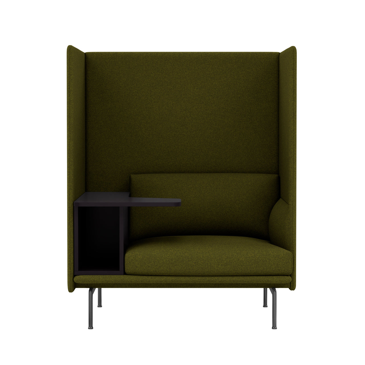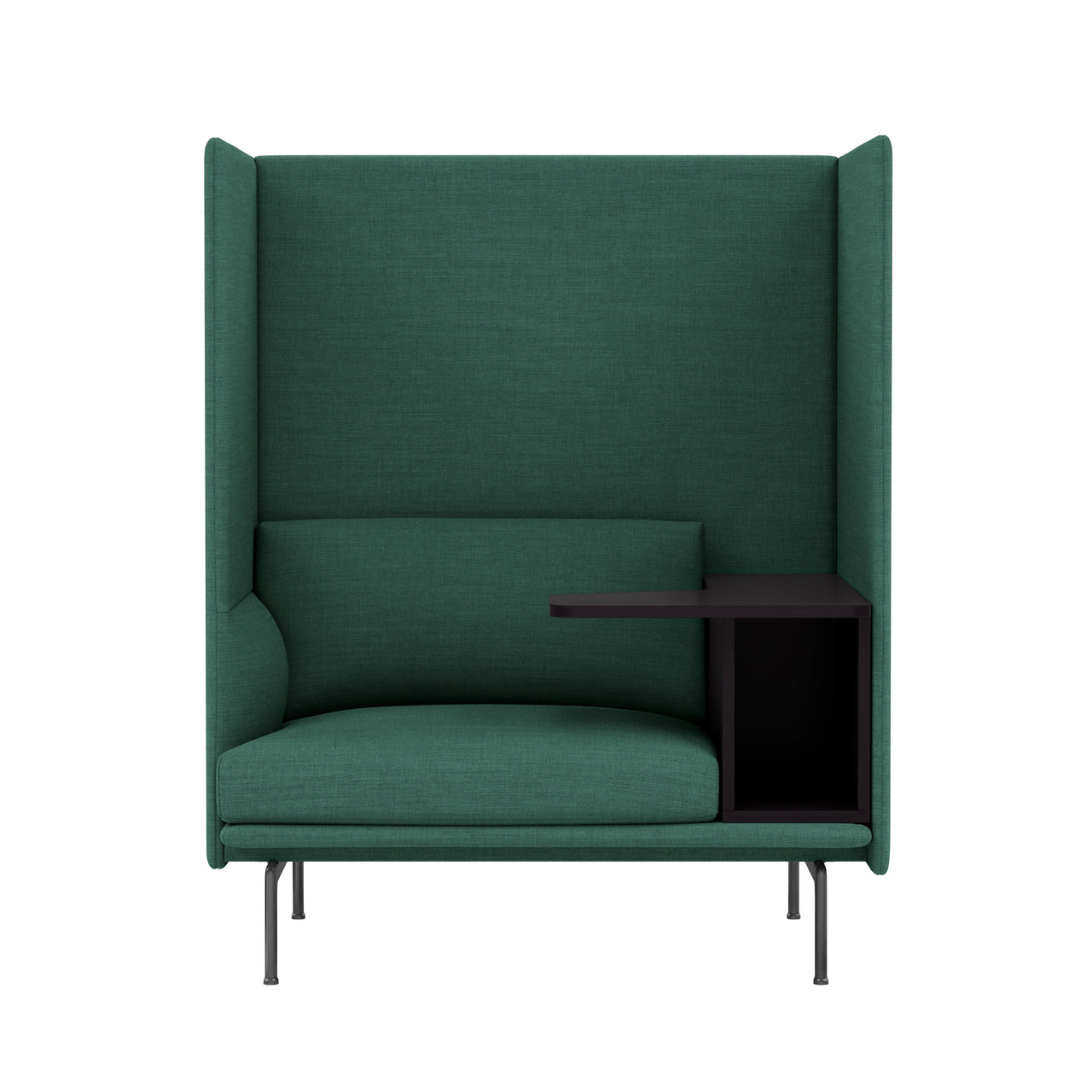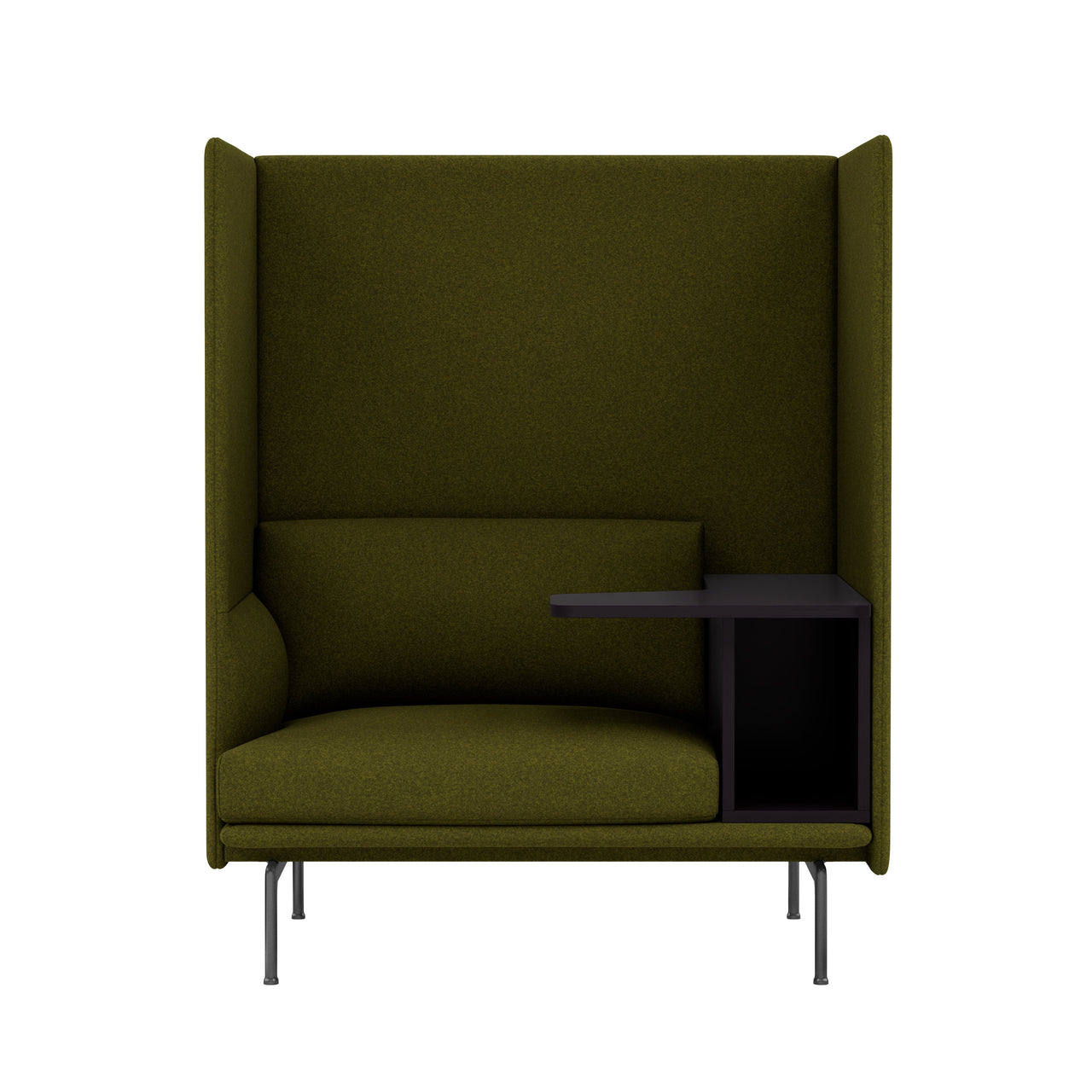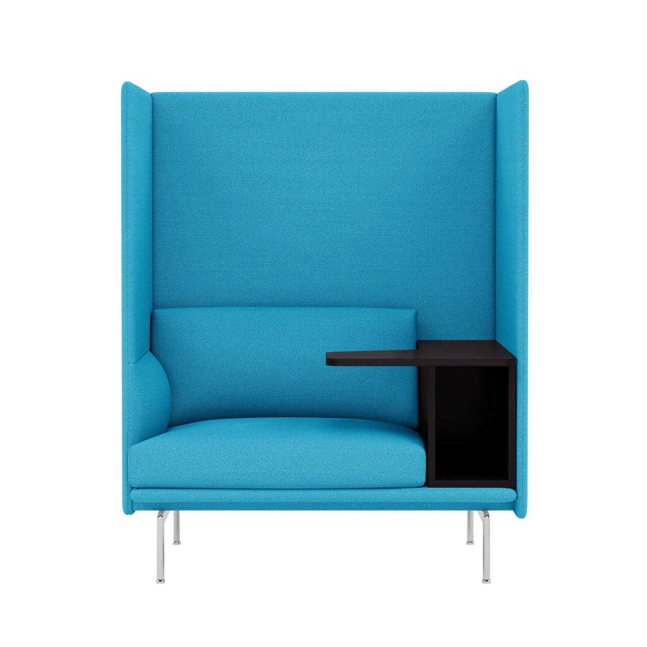 Providing acoustic and spatial shelter, Muuto’s refined Outline series adds Highback Work, combining expansive seated comfort with a desk surface-storage cubby on a trim base. Options include left or right orientation and a cable outlet for easy power access, making the chair a complete task-oriented environment for open-plan offices or hospitality settings.