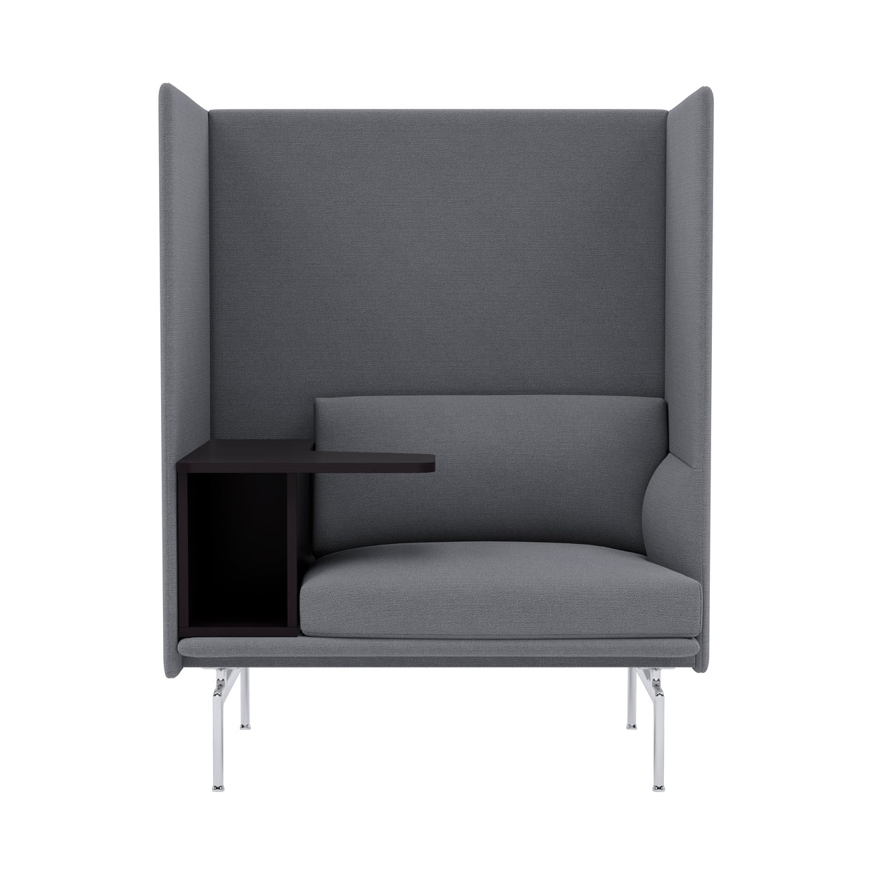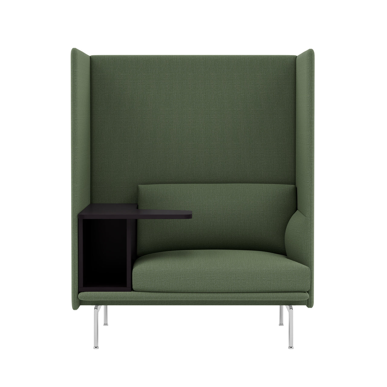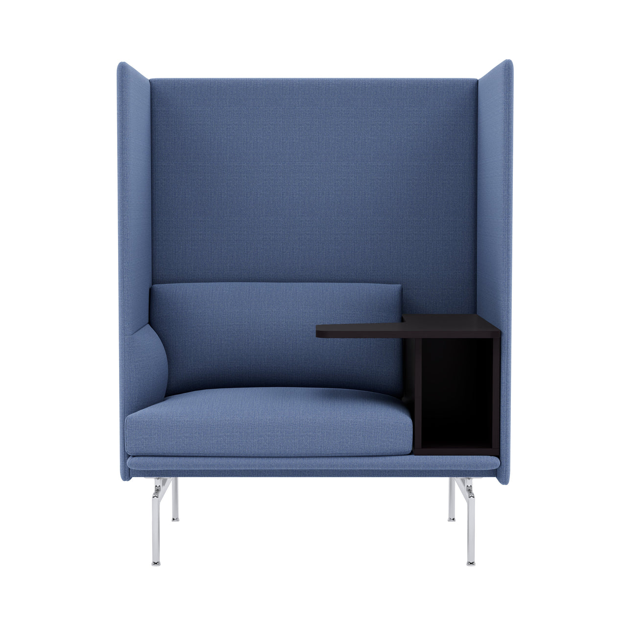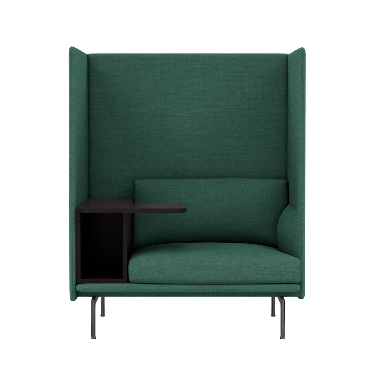 Providing acoustic and spatial shelter, Muuto’s refined Outline series adds Highback Work, combining expansive seated comfort with a desk surface-storage cubby on a trim base. Options include left or right orientation and a cable outlet for easy power access, making the chair a complete task-oriented environment for open-plan offices or hospitality settings.