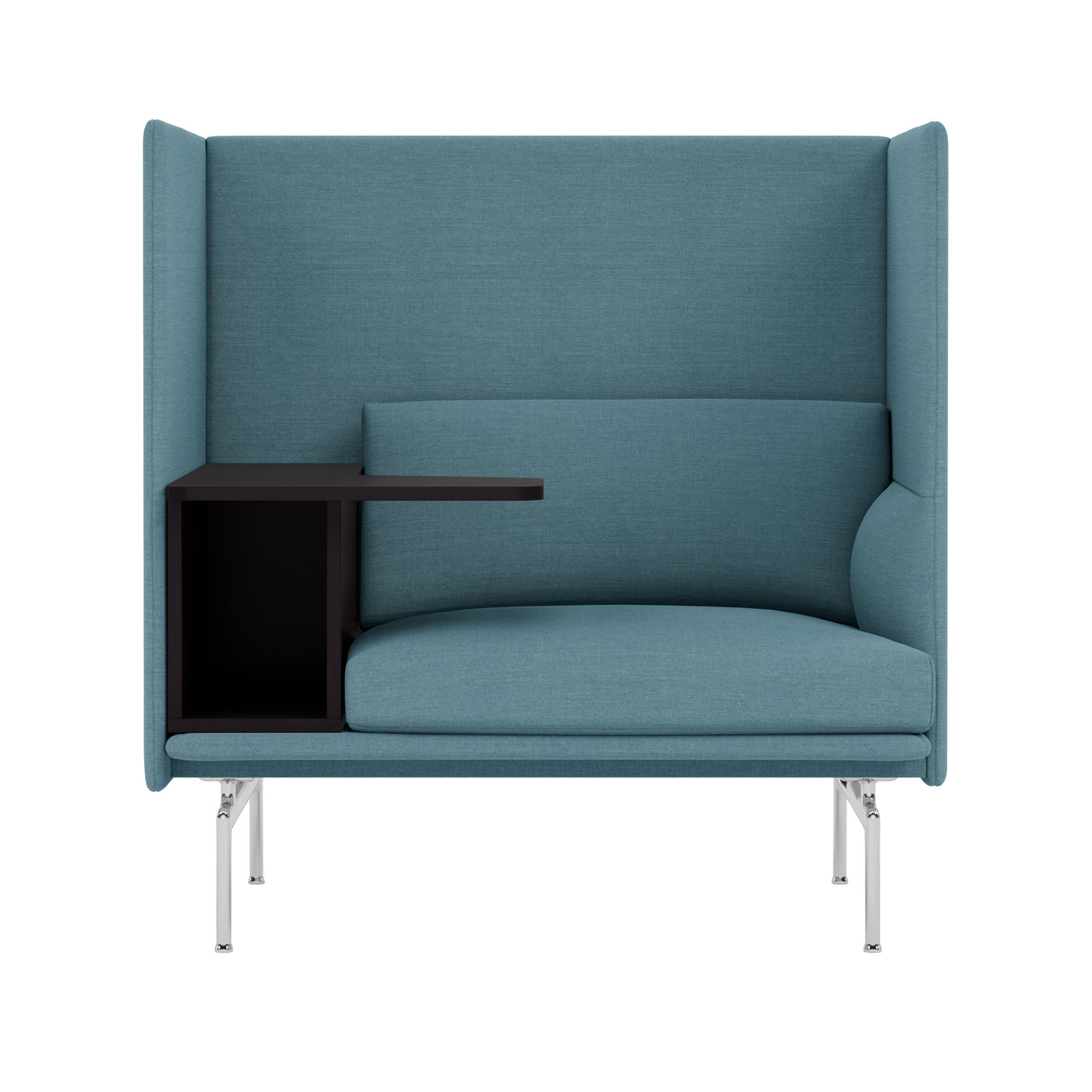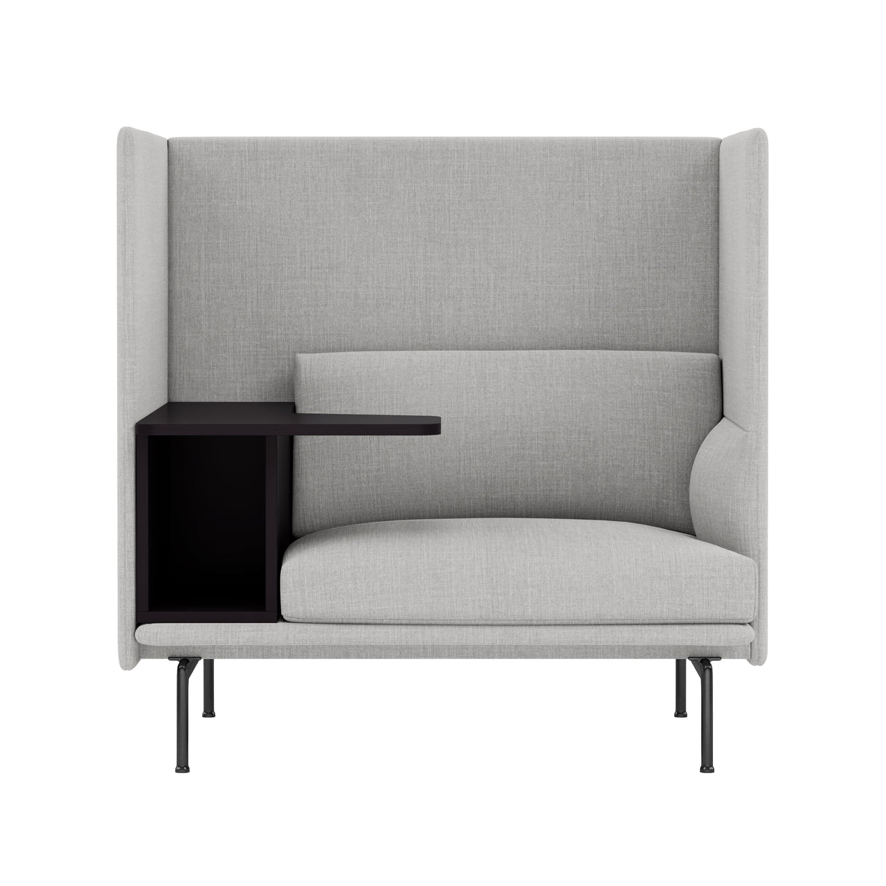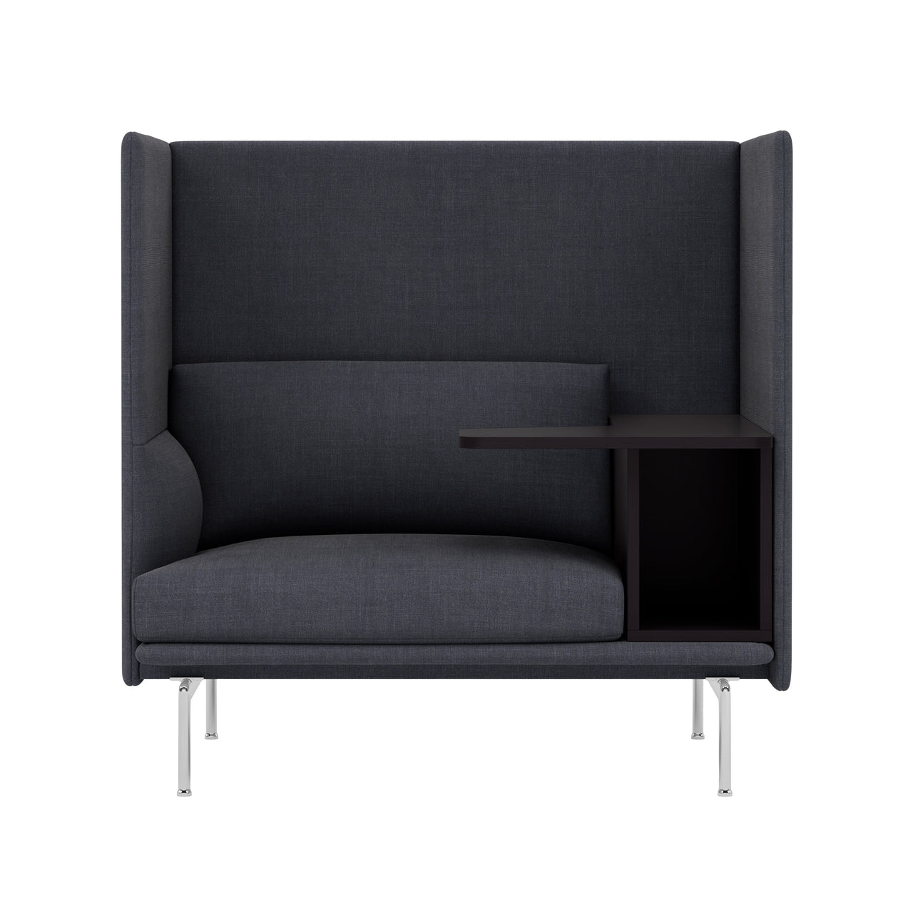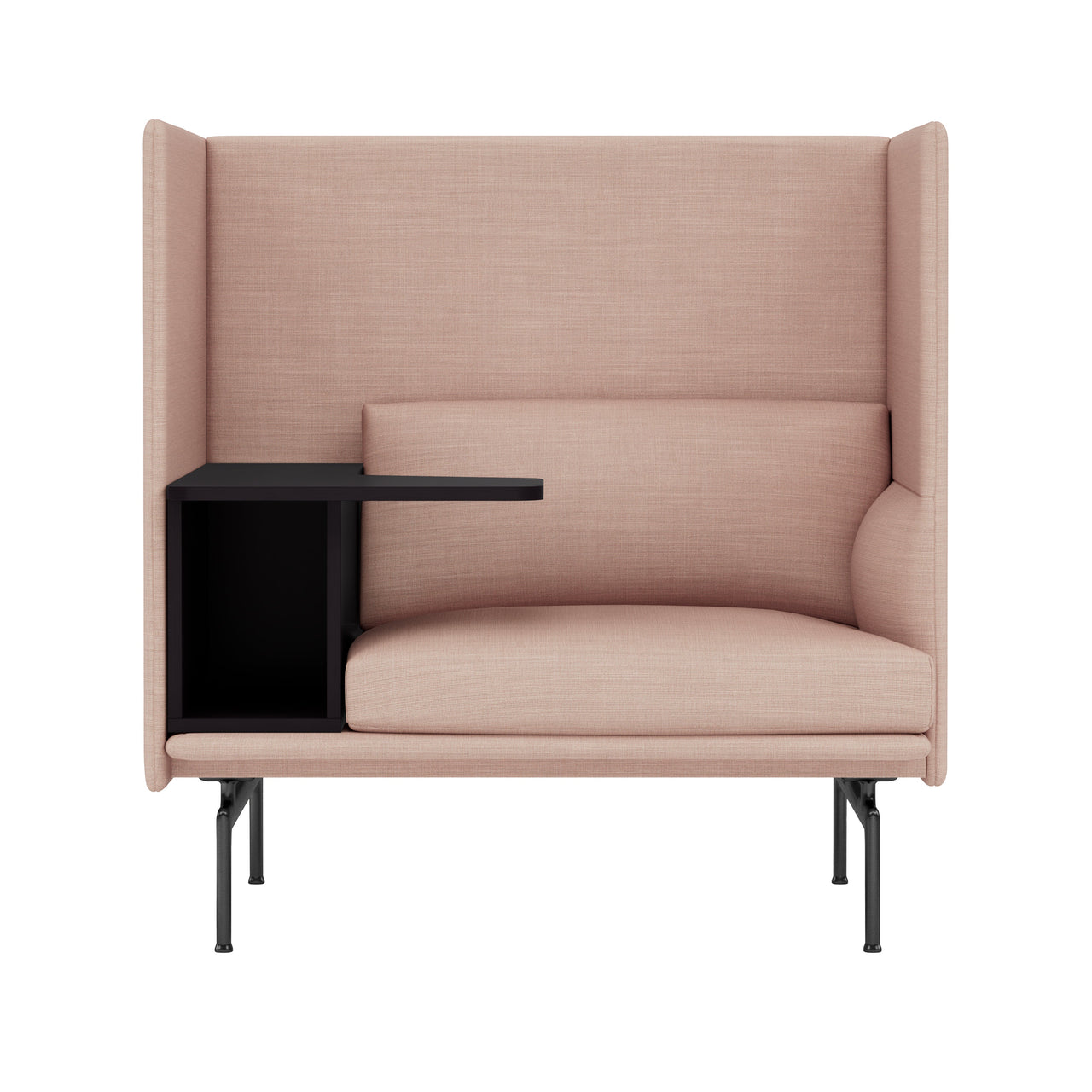 Highback Work extends the clean lines of the Outline seating series, creating an acoustic and spatial enclosure with an integrated desk-storage cubby and handy cable outlet. With a choice of premium stock upholstery selections, the seating is available with left or right orientation and features durable wood and steel construction, cold-foam fill and black powder-coated or polished aluminum legs. The work table in black MDF with a matte lacquer finish makes it an ideal fit in any open-plan space, hospitality setting or workplace.