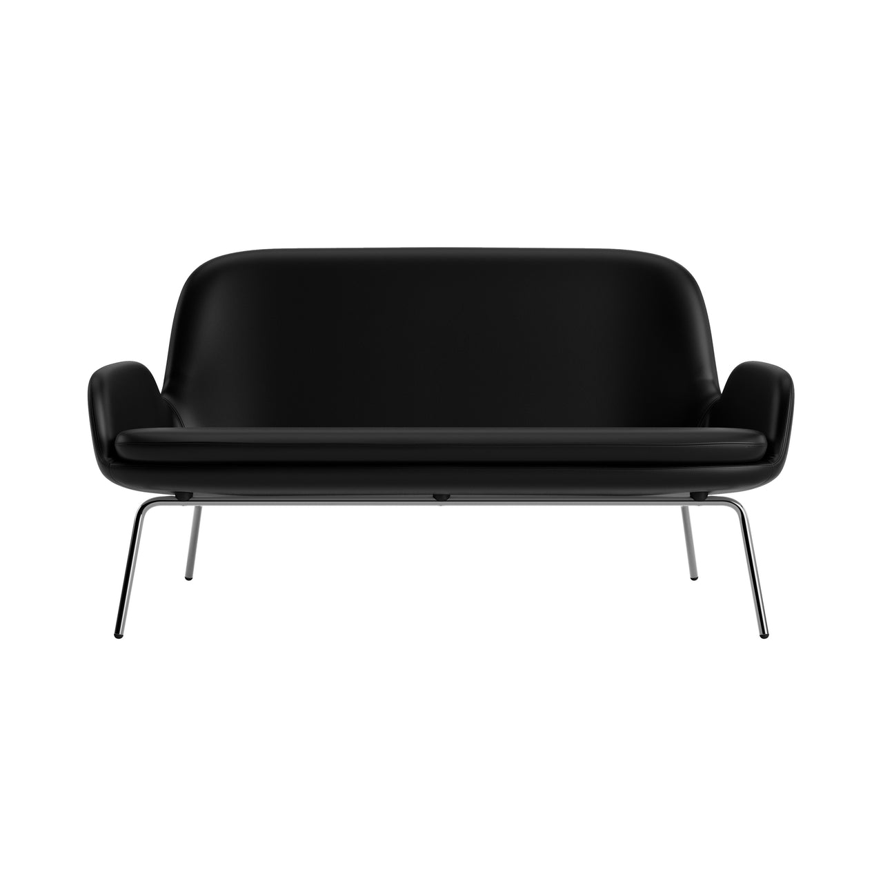 A minimalist metal framework underscores the sleek lines of the Era Sofa from Normann Copenhagen. In either blackened steel or chrome finishes, this version of designer Simon Legald's signature seating—with its defining curves and tight-fitting upholstery—displays a versatile contemporary style. Comfort is always at the fore and the measured size of the Era Sofa allows for placement in both larger and smaller spaces.