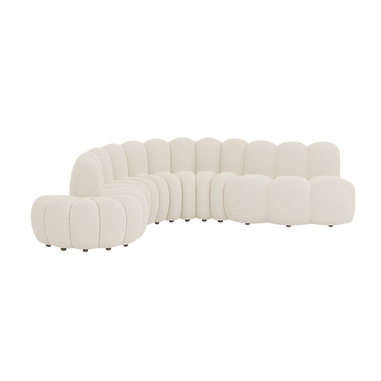 The Jagger Dining Modular Sofa takes cues from iconic furniture styles and sunken lounge layouts, reinterpreted with bold, rounded shapes and modular designs. With a higher seating position tailored for dining settings, the collection includes ten modules, single, double, corner, curved, and half-circle segments, enabling creative and seamless seating arrangements. Handcrafted in Northeast Italy by a family-owned upholstery company, the sofa features a durable plywood frame and cold-cure foam for lasting comfort. Suitable for both residential and commercial spaces.