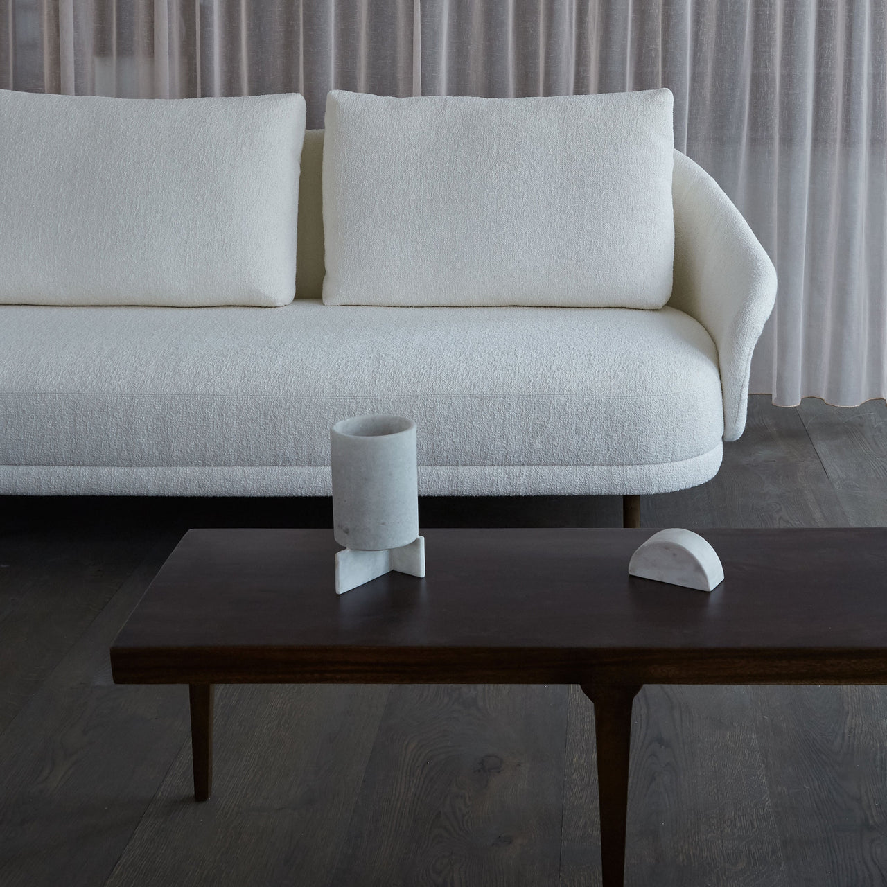 The New Wave Sofa by Norr11 is inspired by Danish sofas from the 1950s, featuring a minimal design that consists of three key elements: base, back, and cushion. Each part is meticulously designed for its function. The sofa's generous proportions easily accommodate three people and comes in either a left or right open ended variation. The legs are available in 4 oak finishes.
