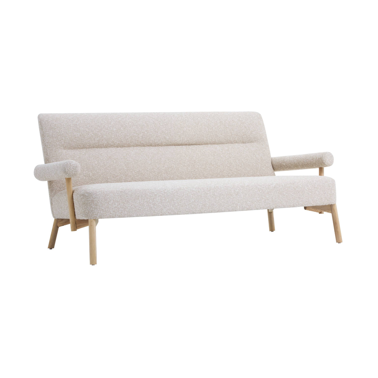Taking a cue from open-sided armchairs from the Victorian and Edwardian eras, Brit designer Matthew Hilton delivers a standout modern 3 seater. In league with SCP’s specialized craftsmanship, the sofa’s curved contours take shape with a hardwood ply and beech frame and ash legs and arm supports. The back is webbed, sprung and elasticated and then structured with coconut hair, wool felt and needled wool to underpin a score of fine bespoke upholstery choices. Made in Norfolk, England.