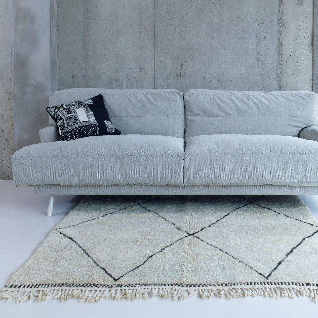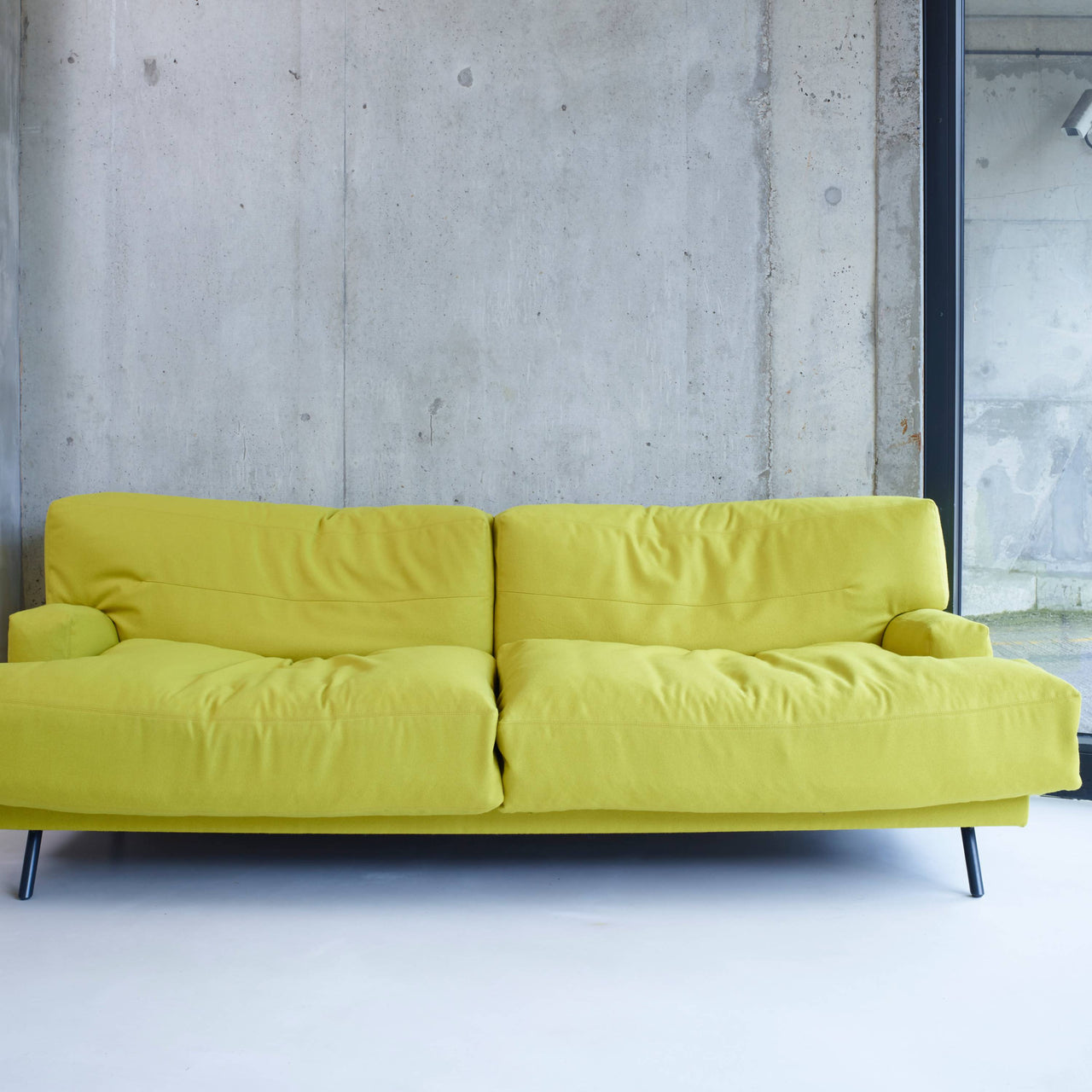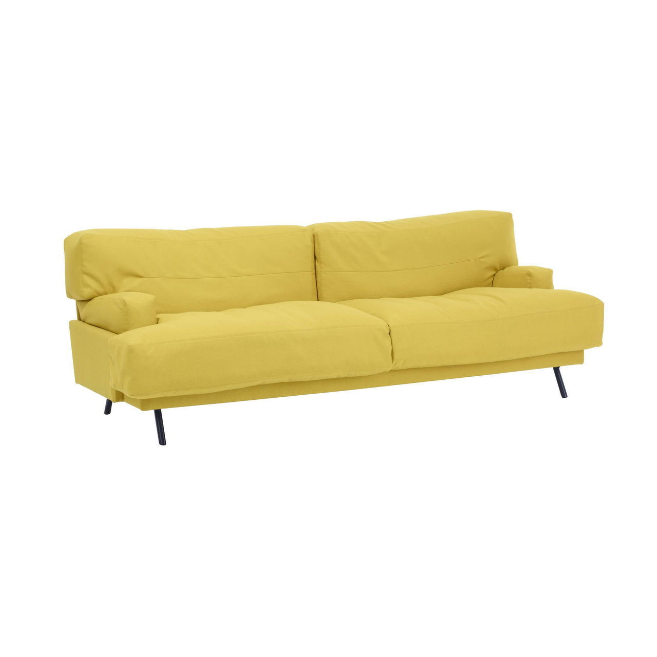 In a standard-size version, British designer Lucy Kurrein's deep-seated sofa harkens back to an old fashioned ideal of comfort. Elmer sits on anthracite grey powder-coated steel legs with its oversize feather cushions leavened with a dividing layer of recycled crumb foam for a comfortable feeling of softness without sinking. Made at SCP’s factory in Norfolk, England, the sofa's frame is FSC-approved beech, jute and webbing and offers a choice of renewable upholstery materials.