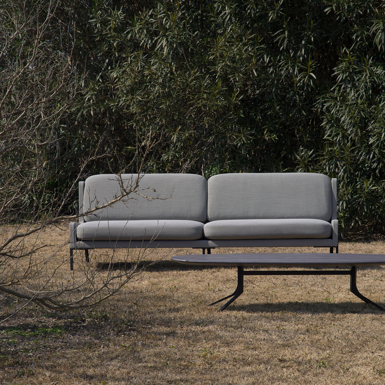 Amply scaled for stretching out in solo bliss or seating a crowd, the 3-seater version of Blink Sofa exudes comfort with its softened take on minimalist style. Designers George Yabu and Glenn Pushelberg present a clear-cut silhouette that yields gentle curves, with a unifying upholstered framework. And the mix of materials keeps things fresh, playing the tactile upholstery against blackened steel and bronzed brass trim.