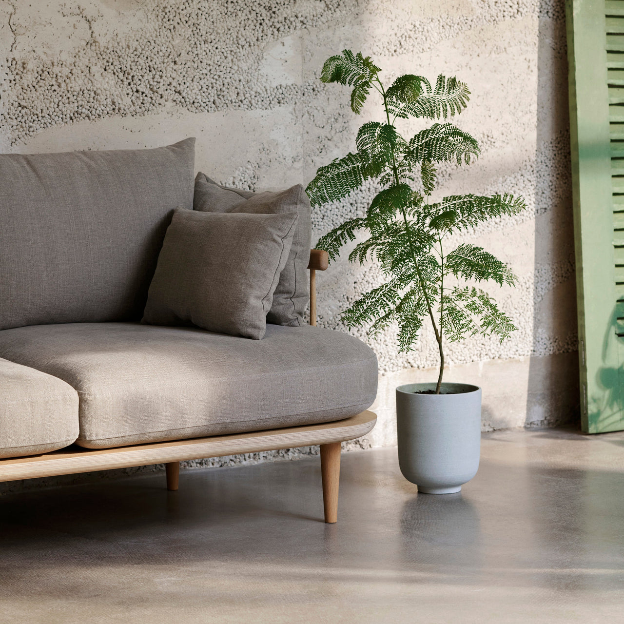 This Fly Sofa SC2 really puts the "Lull" in "Lounge." Whether in splendid solitude or lively company, the loose cushions can be arranged to suit any combination of sitting, sprawling, laying or lolling. In some respects, &Tradition's Fly collection pushes back against the vaunted Scandinavian furniture lineage of defined shapes and ergonomic seating. Yet Signe Bindslev Henriksen and Peter Bundgaard Rützou of the design studio Space Copenhagen honor that tradition in their own way, in the contrast of textured cotton/linen upholstery and artfully crafted oak frame with a familiar slatted back rest. Over time, the oiled finish in a choice of white pigment or smoky black will age beautifully. Though they take a different path, the designers embrace a guiding tenet of their Danish heritage-timelessness.
