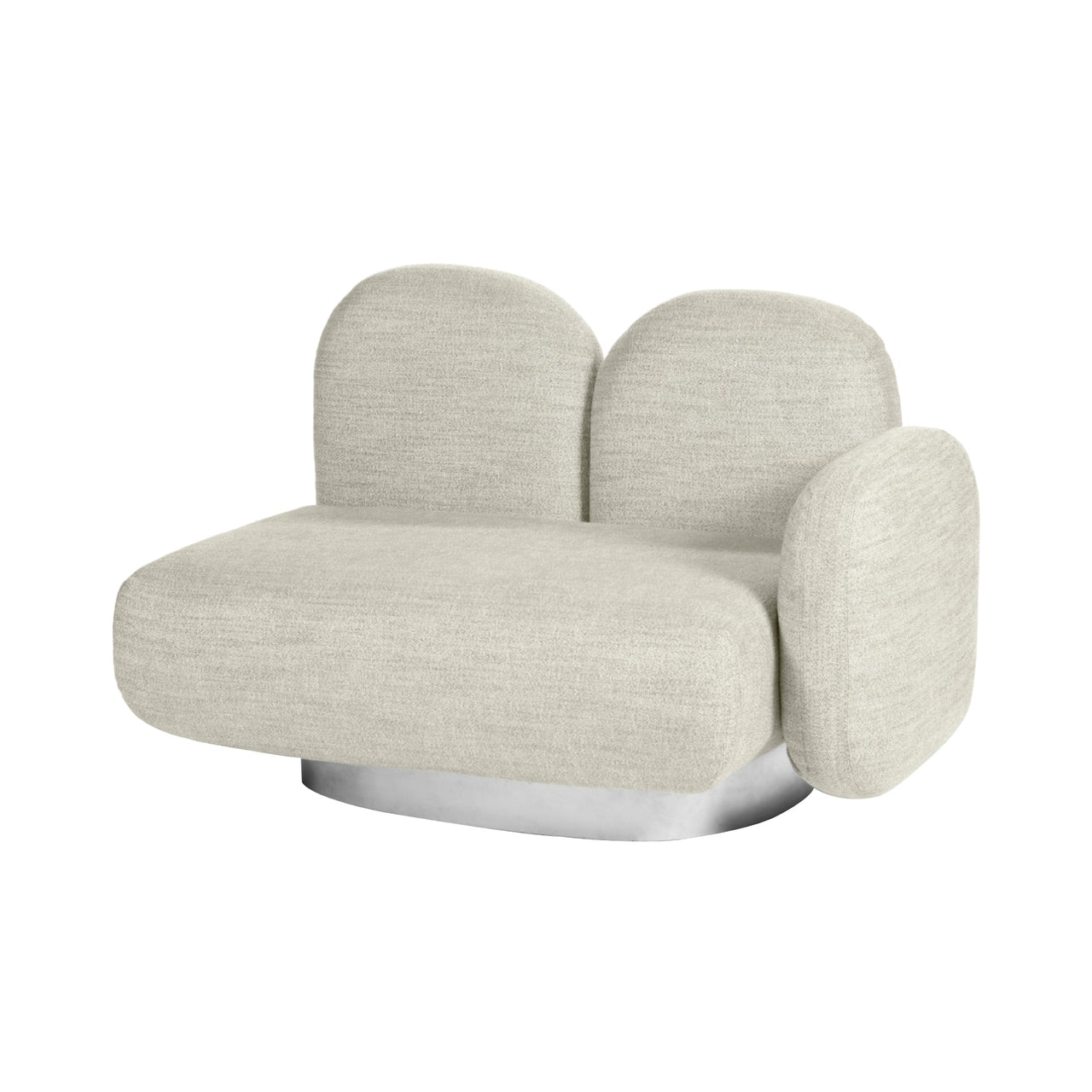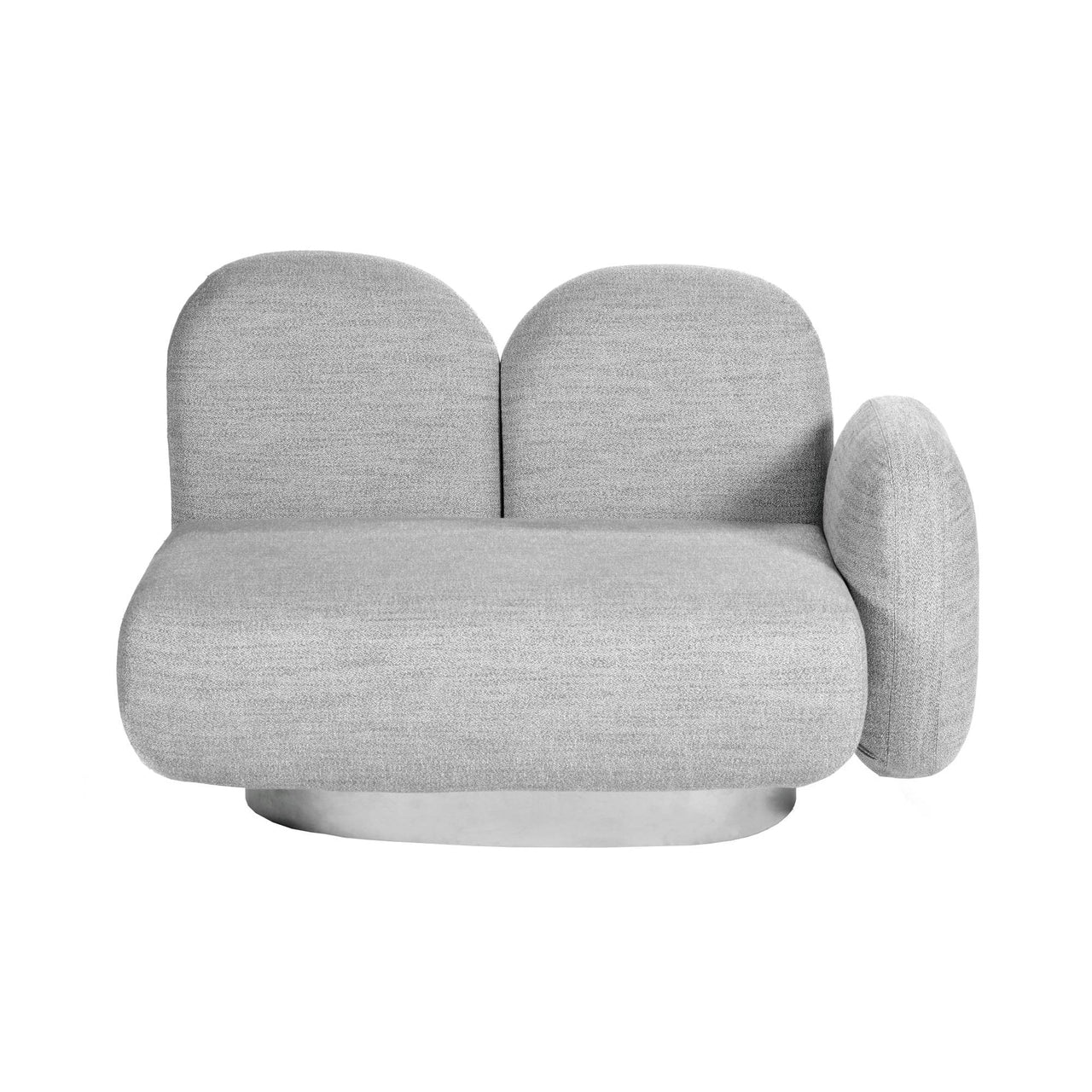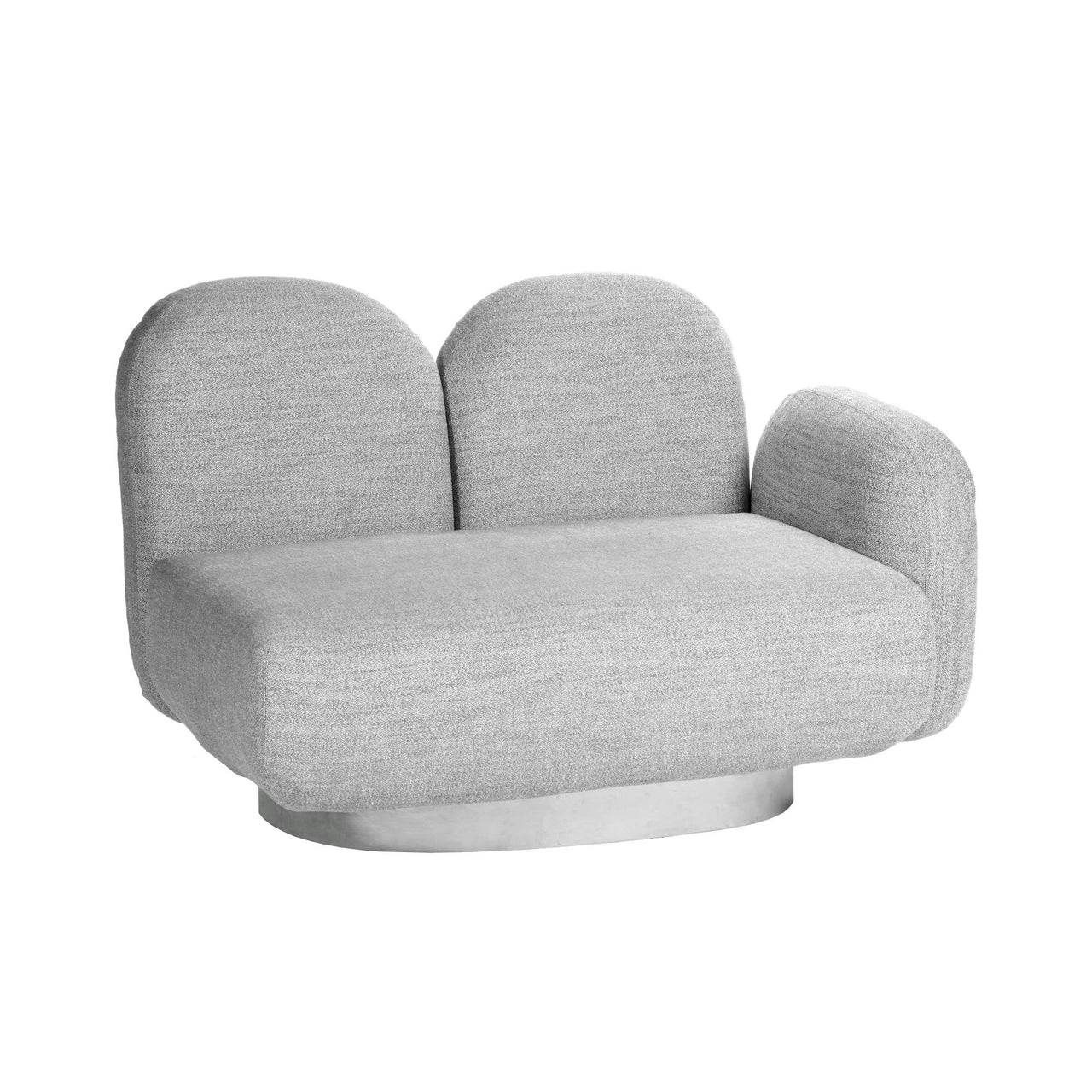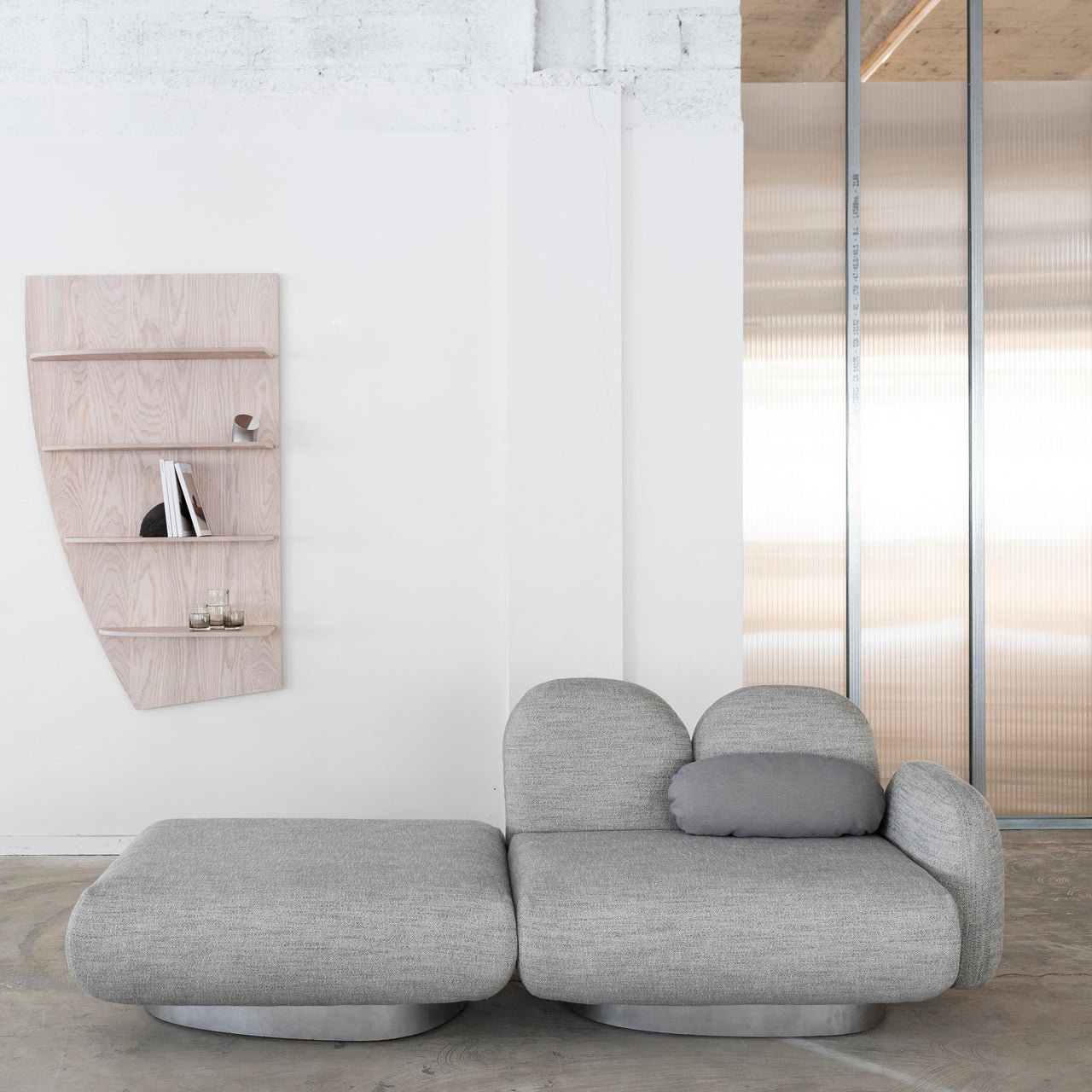 A single-seater makes a versatile addition to Assemble, the organically rounded seating collection by Destroyers/Builders for Valerie Objects. In configurations with the 2-seat unit, corner module and ottoman, the foam-fill sofa adapts to suit any space. Suggested by the shape of weathered stones, the curved cushioning is neither too firm nor too soft. With armless, single-arm and twin-arm options and a choice of upholstery, it also features a recessed wood base clad in natural aluminum.
