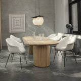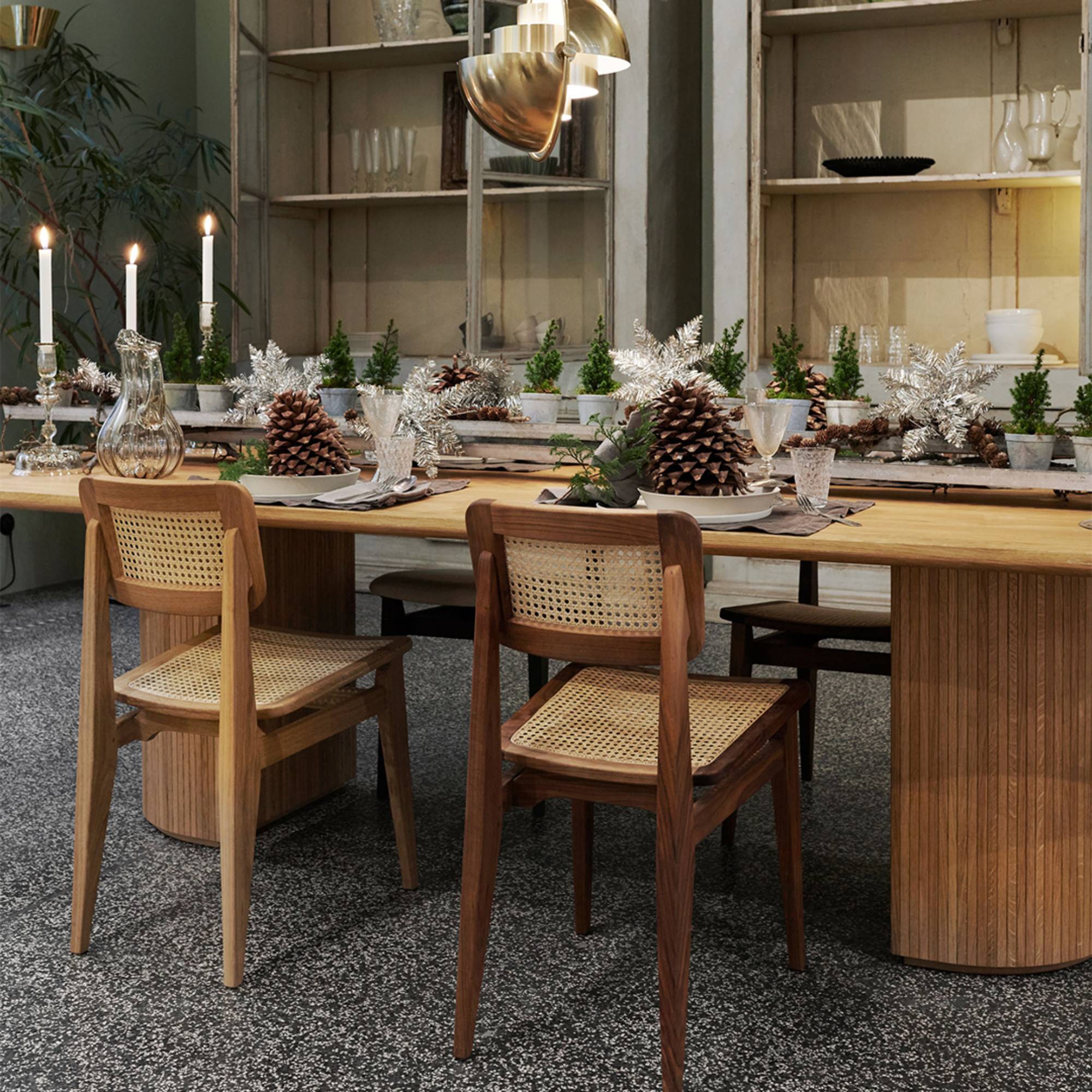 Adroit Danish carpentry underpins the country’s furnishings legacy and this superb dining table extols that marriage of design and craft. Space Copenhagen’s rounded rectangular tabletop rests on a pair of half-moon bases with a fine beveled surface. Instantly identifiable, Moon speaks to Denmark’s ineffable woodcraft heritage in the solid oak tabletop and spherical base that serves as both structure and ornament.