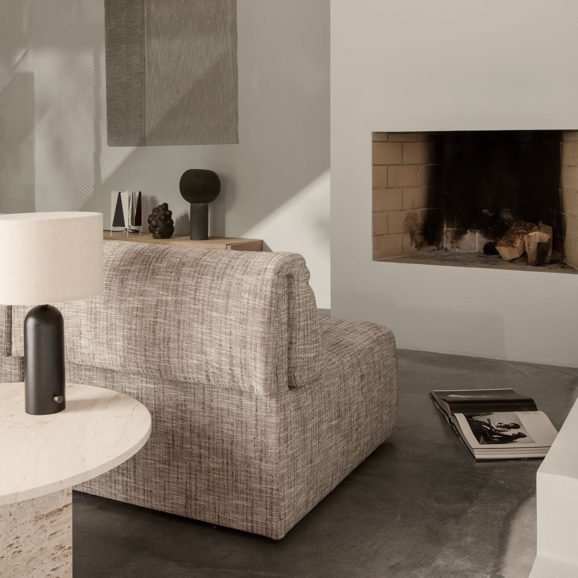 With this Wonder 3 Seater, Danish maker Gubi's updated take on '70s modular furniture takes form as a roomy armless sofa. Space Copenhagen's designers deploy pillowy cushions plumped with duck feather and foam-particle fill that are softly folded over the clean-lined structure and ingeniously secured with hidden magnets.