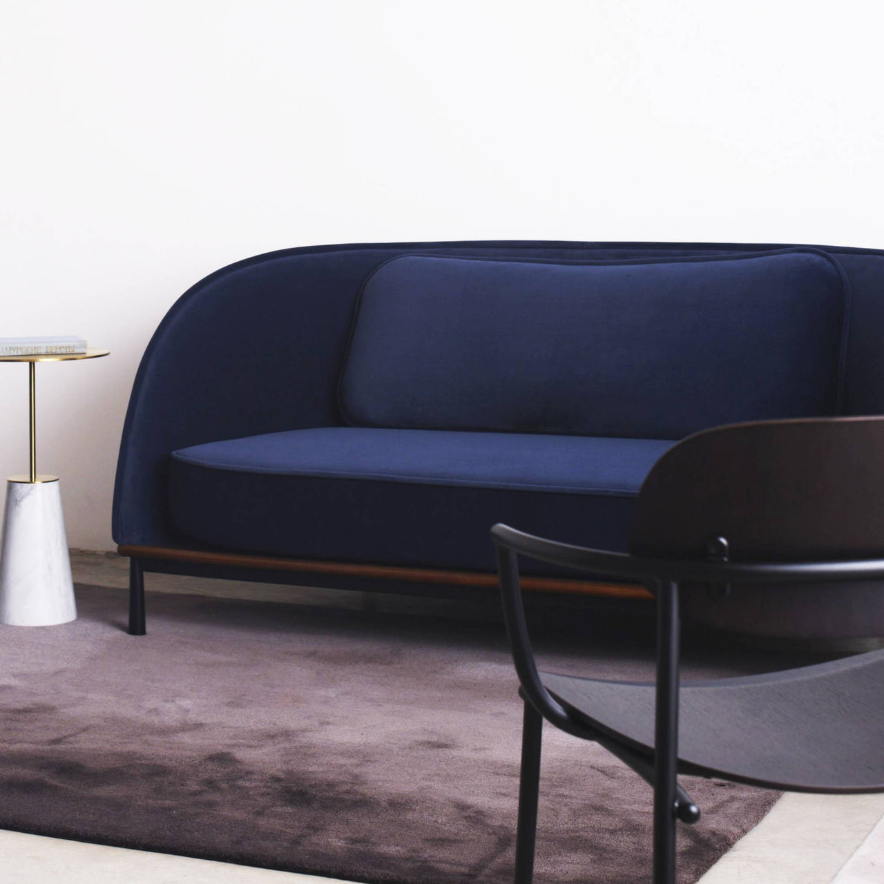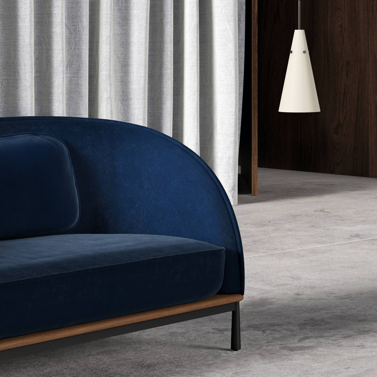 Scaled down for sitting solo or à deux, Arc’s intimate confines are bordered by a thick piping between the sleek exterior and plush inside cushioning. Wanting to create a companionable feeling that suits even contract spaces, young designer Hallgeir Homstvedt emphasizes welcoming curves with the shell, seat cushion and backrest of the sofa upholstered in fine fabric or leather. A solid walnut or ash platform base adds an organic richness, resting cleanly on black steel feet.