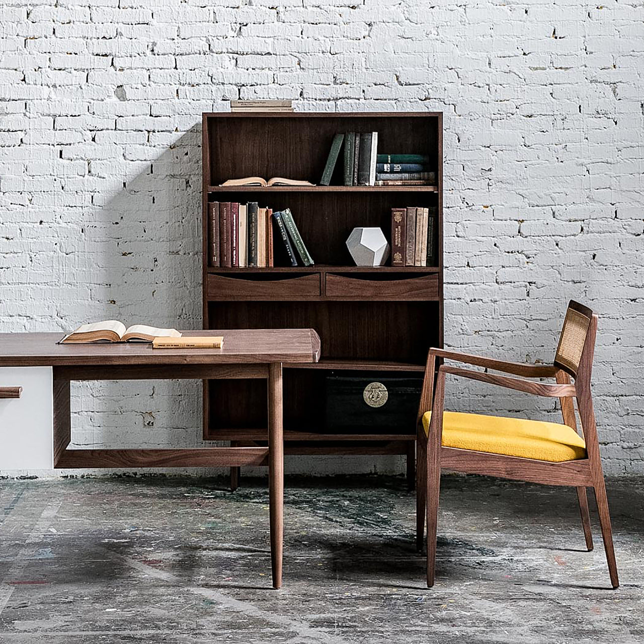 An elegantly restrained midcentury design, this shelf unit was originally designed by famed Danish-born American emigre Jens Risom and has now been reissued by Stellar Works. Simply named after its creator, Risom features clean lines in solid wood with veneer panels and a pair of storage drawers. Whether the choice is ash or walnut, the versatility of the style will readily satisfy either residential or business needs.
