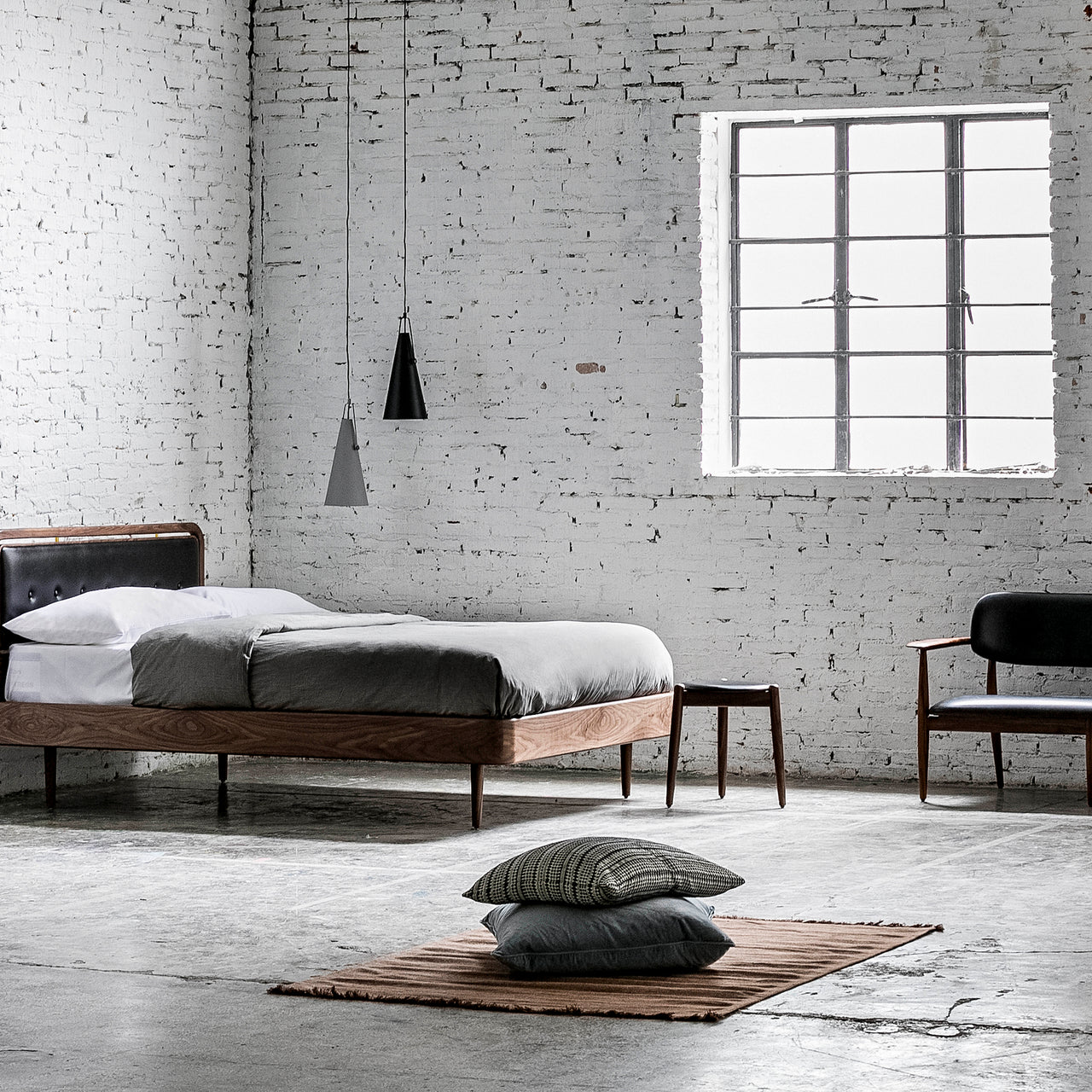 Danish designer Vilhelm Wohlert’s spare 3-legged concept adapts as a stool with an upholstered seat, from the collection named for the country's midcentury Louisiana Museum of Modern Art. The beautifully balanced piece is carefully fashioned in solid oak or walnut, with a handsome range of fine woodgrain finishes. Upholstery choices include a variety of select textiles and premium leather selections for a completely customized result.