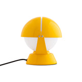 The Buonanotte Table Lamp features a playful design with two adjustable metal shades. By rotating the spherical diffuser, you can control the light beam to create either a bright reading light or a soft, dimmed glow. The lamp is available in white, yellow, red, and blue finishes, and emits a 2700K glow for a warm ambiance.
