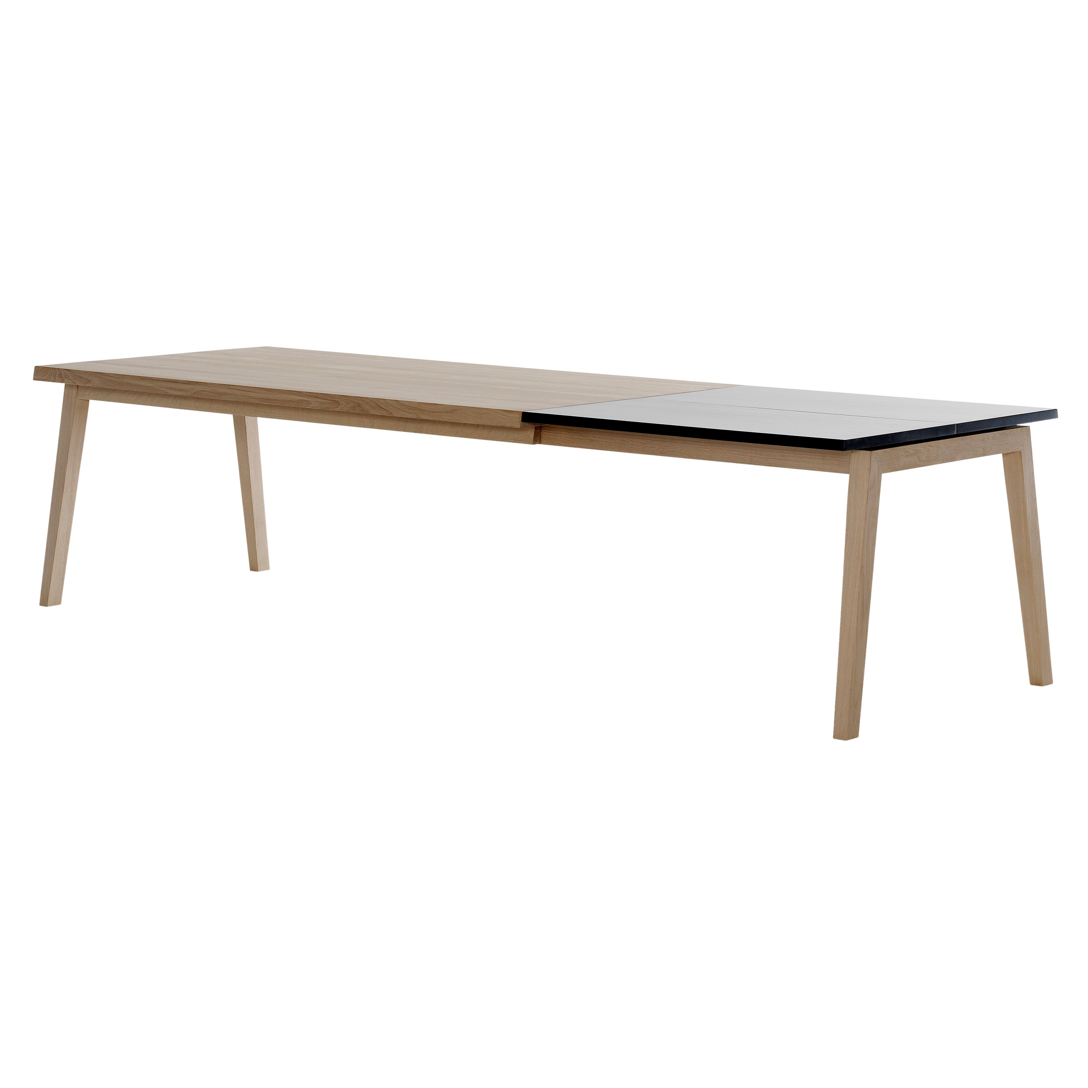 Copenhagen Design studio Strand + Hvass nods to previous Danish design icons while also exploring a new generation's sensibility in Extend. The dining table lives up to its name, with built-in leaves and a unique fold-out system hidden inside; simply pull on the table end to reveal seating for 4 extra guests. With its solid oak top and frame available in a variety of finishes, the black MDF extension leaves feature a honeycomb interior construction that makes them at once durable and lightweight.