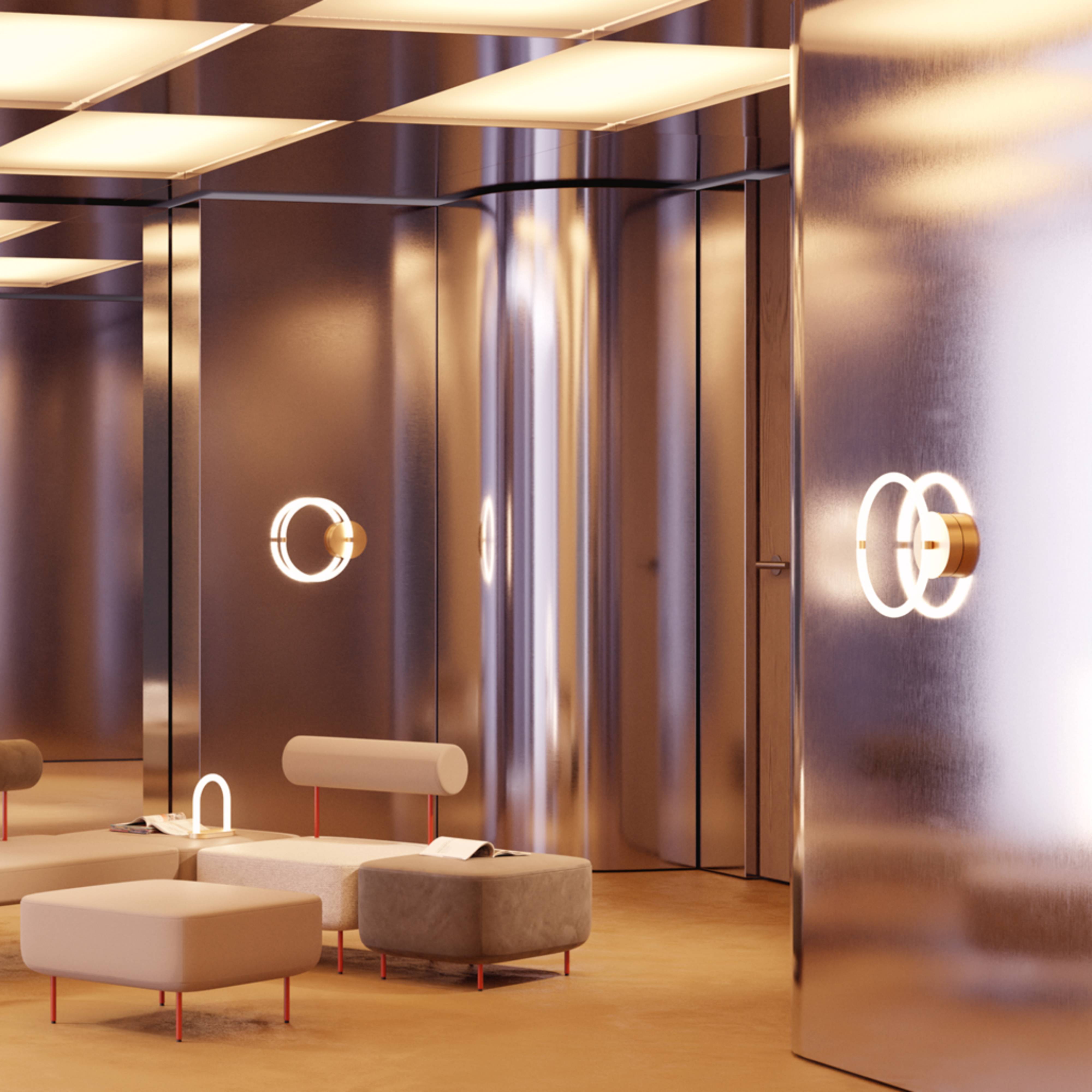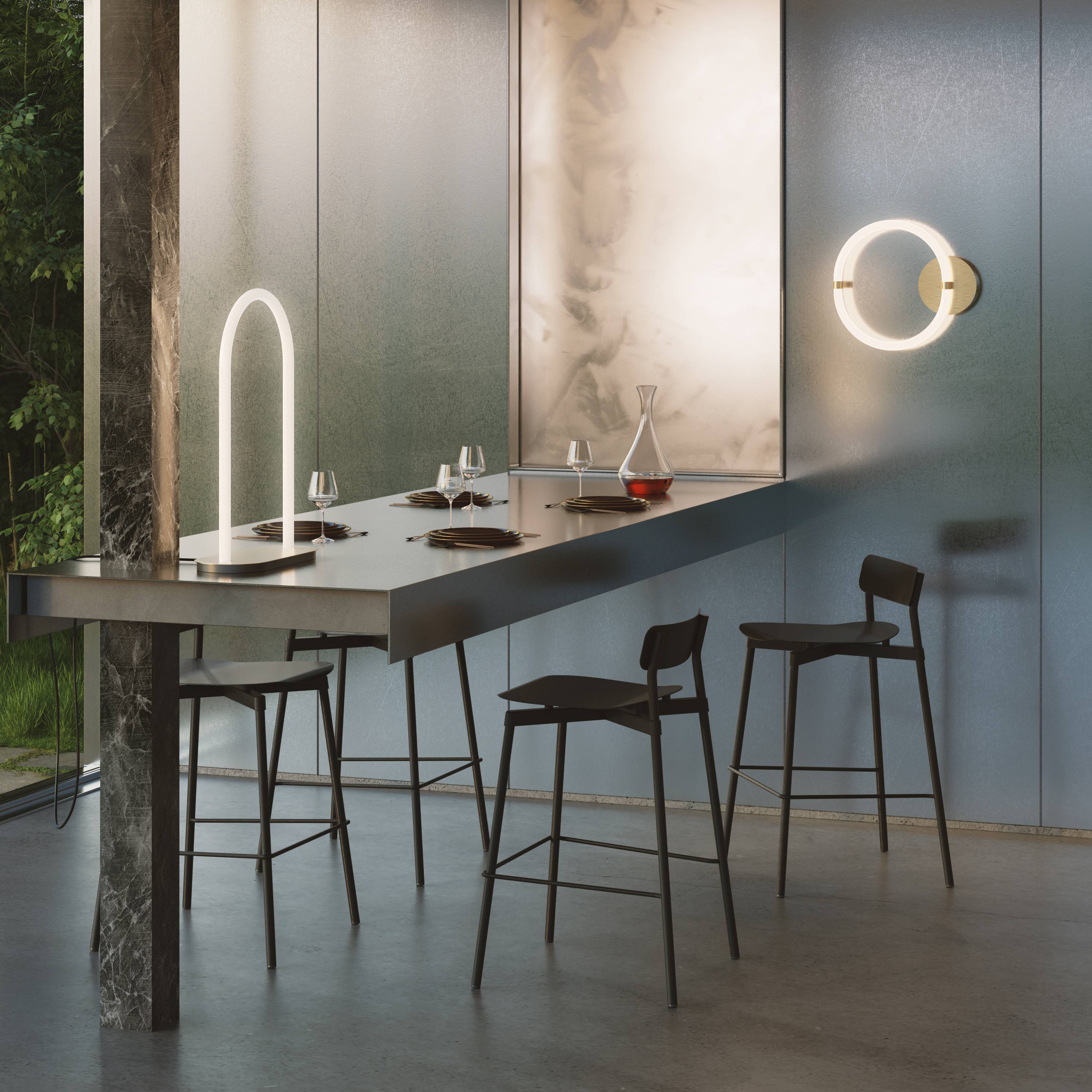 Studiopepe's Arianna Lelli Mami and Chiara di Pinto's put a ring on it with their wall fixture suggested by classic neon light but powered with state-of-the-art LED technology. The Milan design duo overlays Unseen with brass accents to match the gleaming mounting plate while the halo of illumination casts rounded shadows on surrounding walls. Admitting the piece was technically challenging, they persevered until the tubular structure had the desired purity of form.