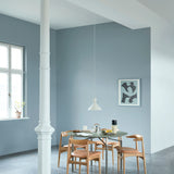 The Bloom Pendant Lamp features a super-elliptical form inspired by the gentle flow of paper lanterns. Its design combines a finely perforated mesh core with frosted blown glass, projecting a soft-focus texture onto the inside of the shade while casting unobstructed light downward. This pendant is available in 3 colors, each finished with a silky matte lacquer for durability.