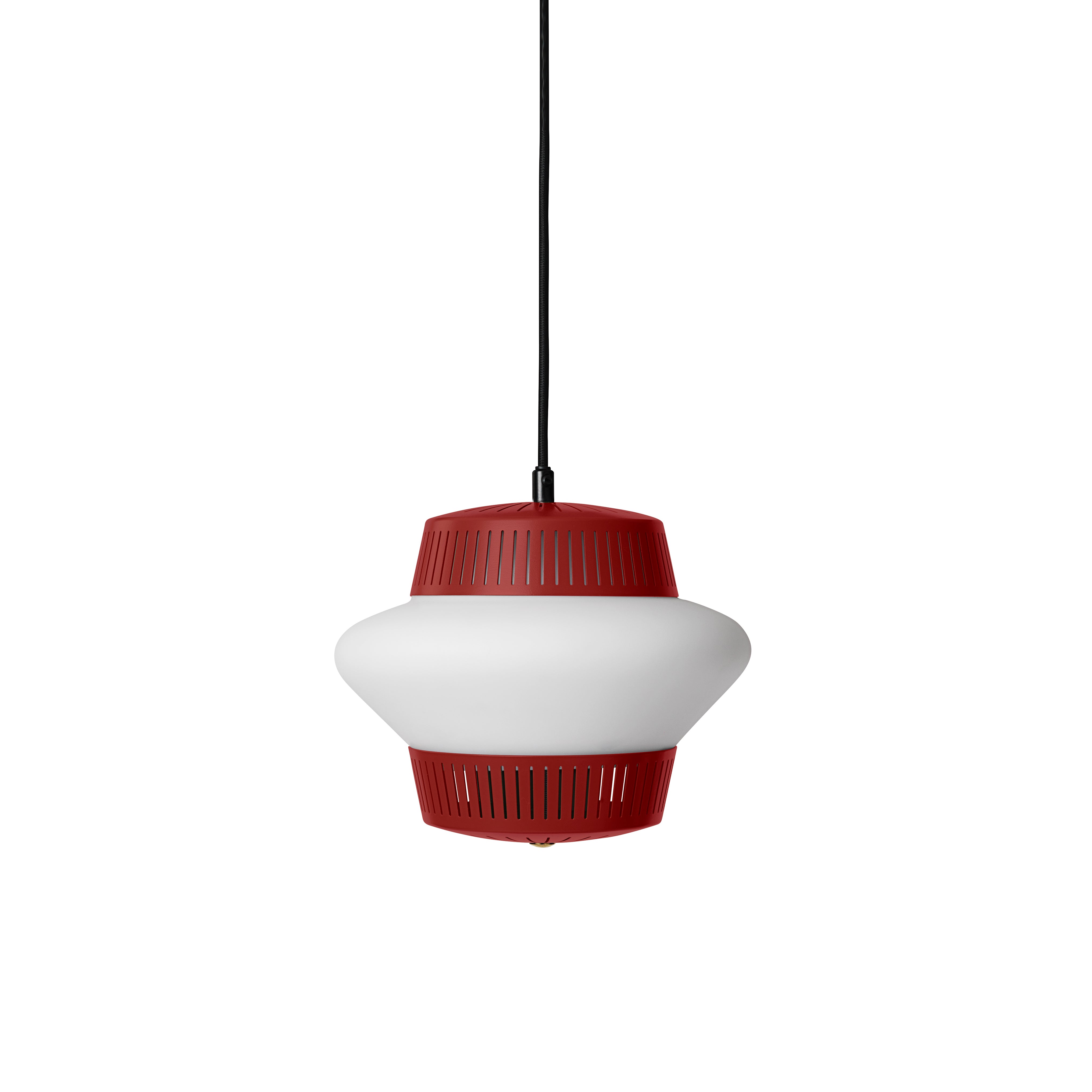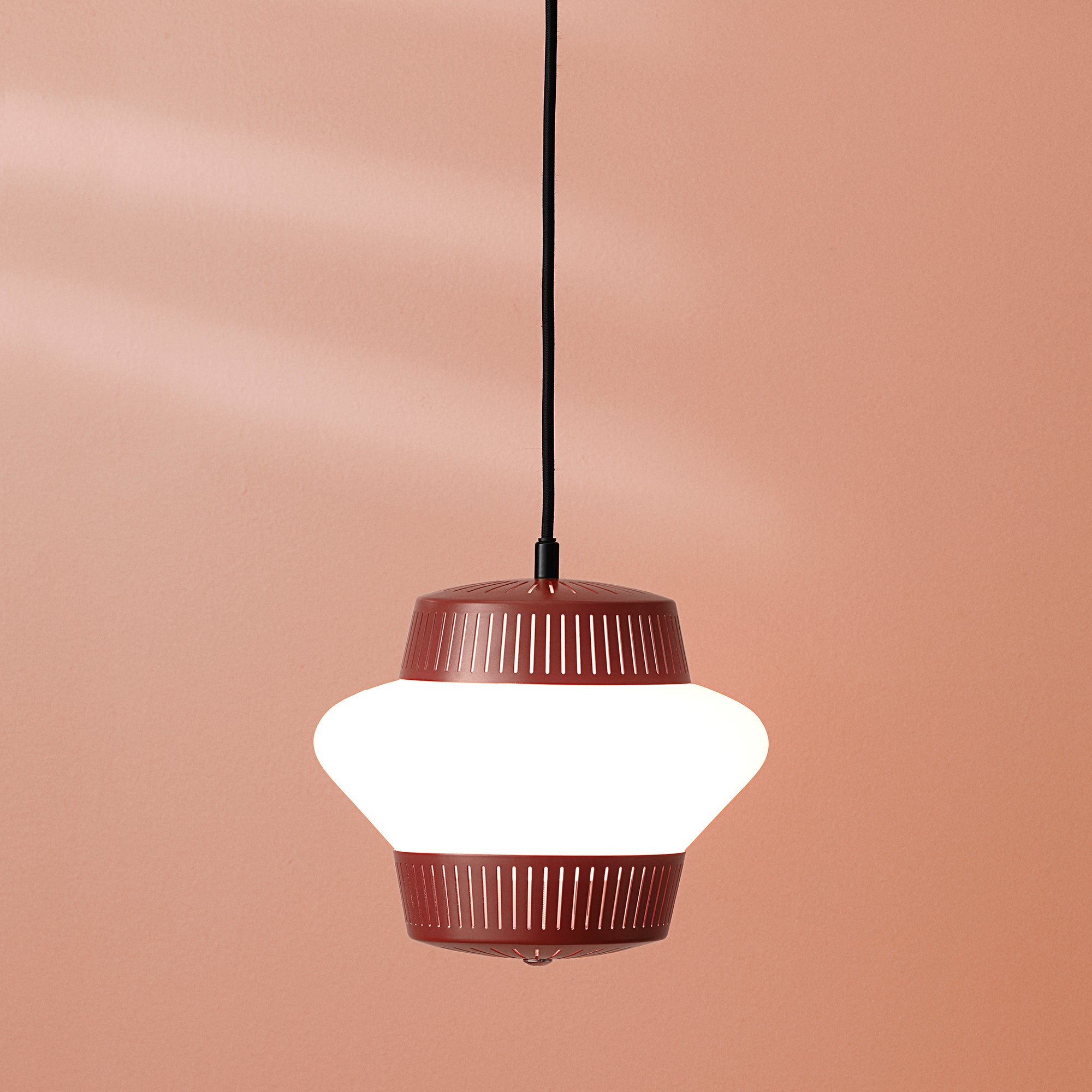 The Opal Arch Pendant features a soft opal glass shape with curved lines and distinct light grooves in the metal top and bottom. This design provides indirect lighting, making it suitable for dining rooms, kitchens, or entryways. Available in 5 colors.