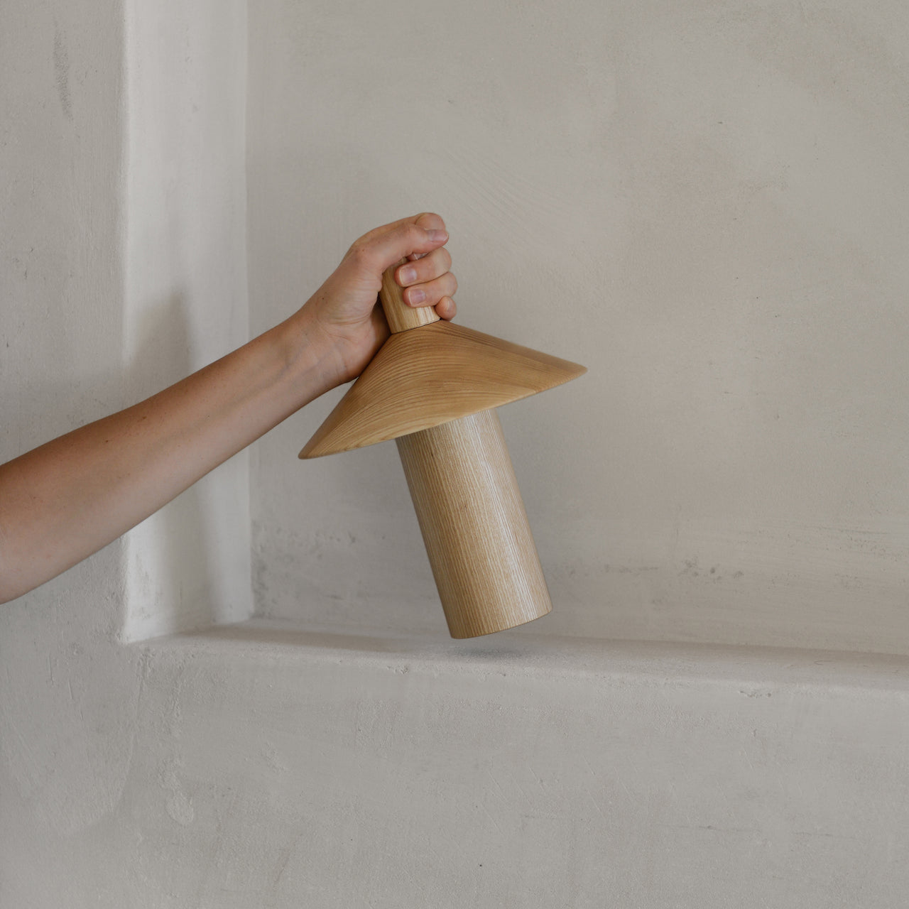 Inviting to touch and hold, Pepa’s natural ash form combines tactility with completely portable LED utility from Milanese designer Francesco Faccin. Sophisticated multi-axis magnetic field sensor technology eliminates any wires inside and outside of the unit and it’s powered by standard AA rechargeable batteries with simple USB connectivity. Inspired in both looks and functionality by the traditional pepper grinder, the lamp takes just a twist of the conical reflector to add light to any setting—going smoothly from off to on, and anywhere in-between.