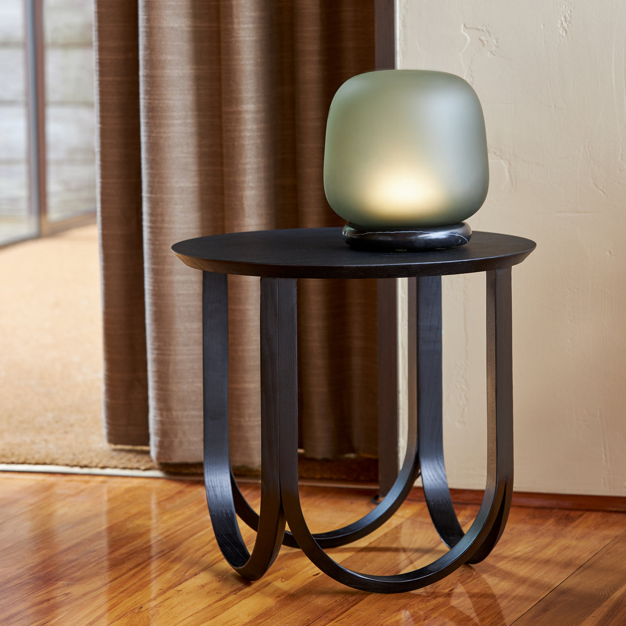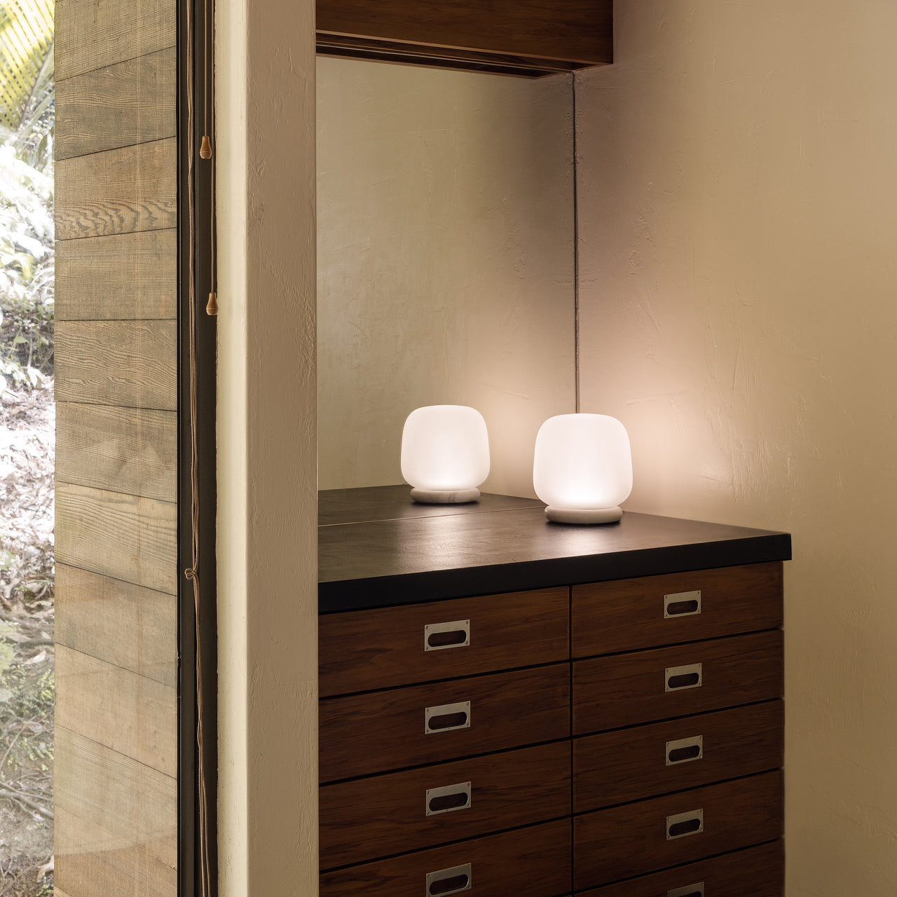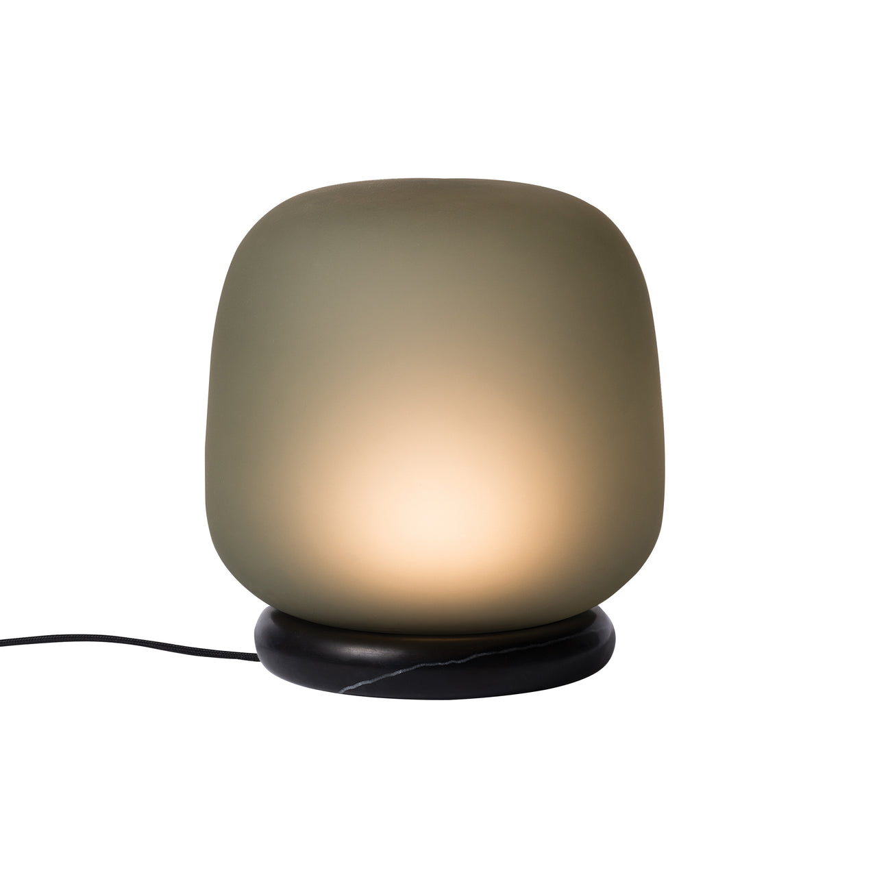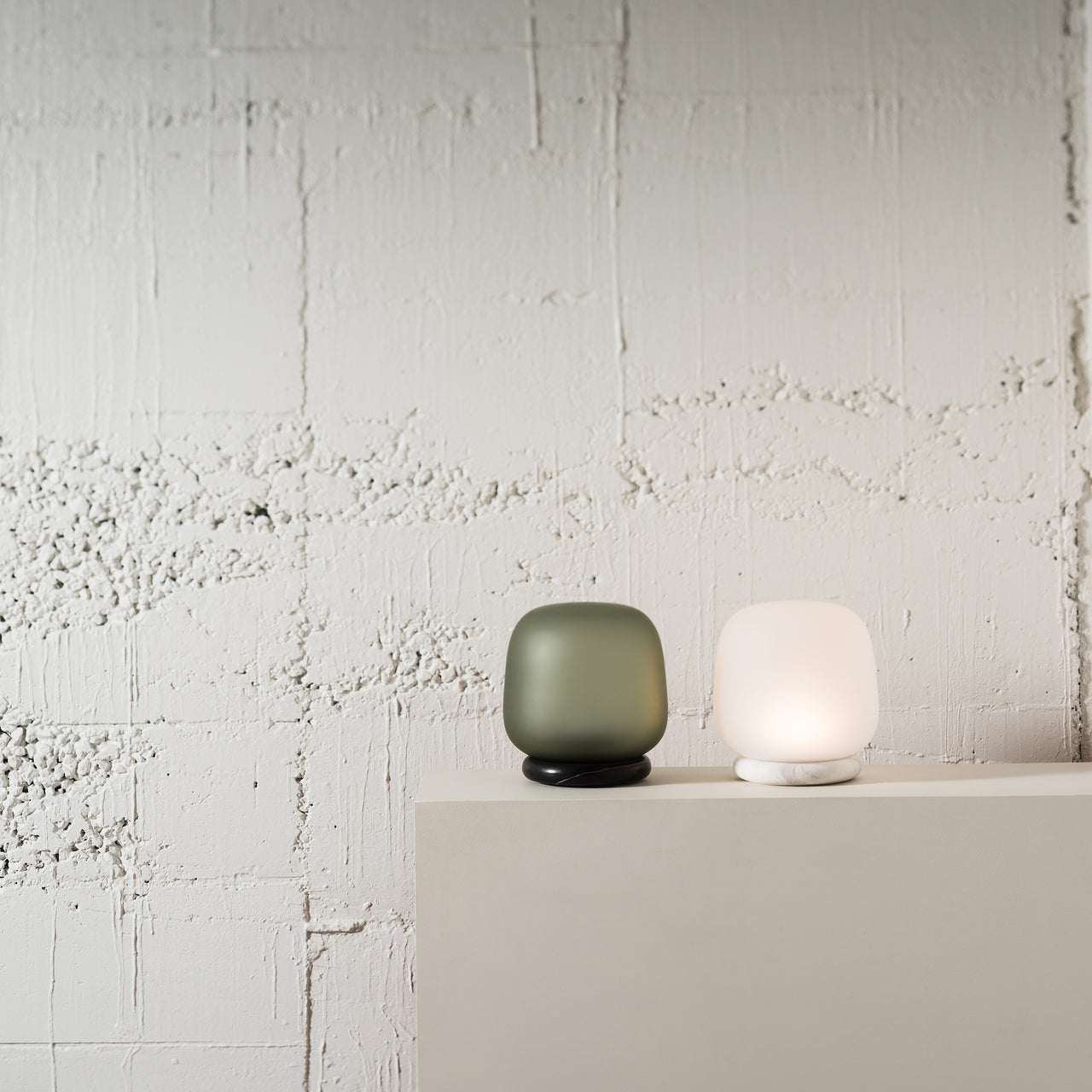 With the sophisticated glow of its frosted glass topper nestled in a rounded base of genuine solid marble, AB Table Lamp celebrates the beauty of elemental organic forms. Subtly diffusing the dimmable LED light source, the shade is crafted by skilled artisans using a traditional glass-blowing technique and then fitting it into a mold.