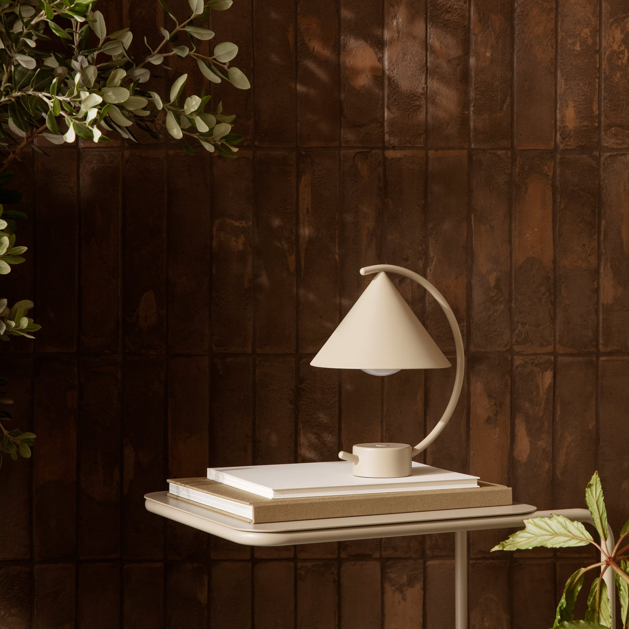 Meridian is a portable and fully dimmable lamp with an intriguingly graphic silhouette based on 3 classic geometric elements. Made in collaboration with design studio Regular Company, it offers easy, hassle-free charging and provides up to 12 hours of light at a time. The non-removable LED light source provides warm white illumination (with a service life of 30,000 hours or about 20 years) and the lamp comes in a cashmere beige or black powder-coat finish or golden polished brass.