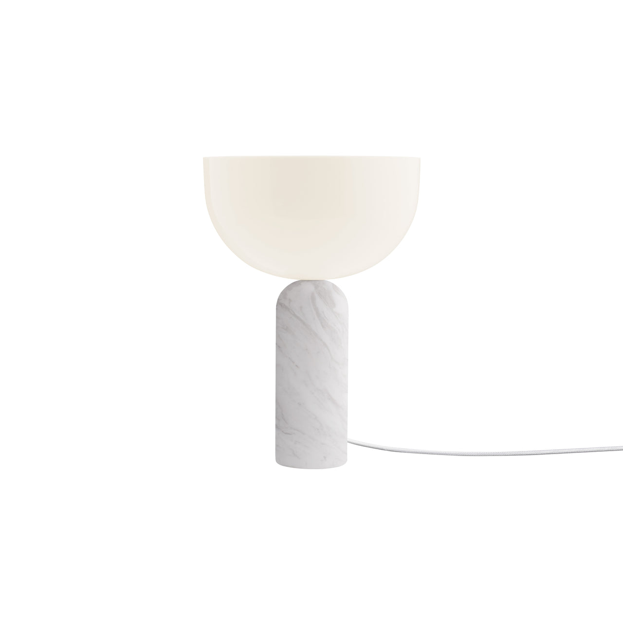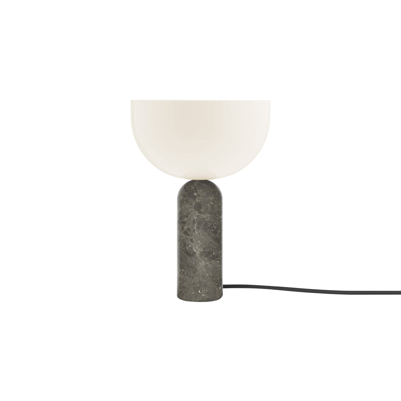 The Kizu Table Lamp by Lars Tornøe is characterized by two sculptural forms that seem to balance weightlessly on top of each other. The hemisphere-shaped, glare-free acrylic diffuser appears to float atop a rounded marble base, producing a striking visual effect. Available in white, black, and Gris du Marais marble finishes, and in two sizes.