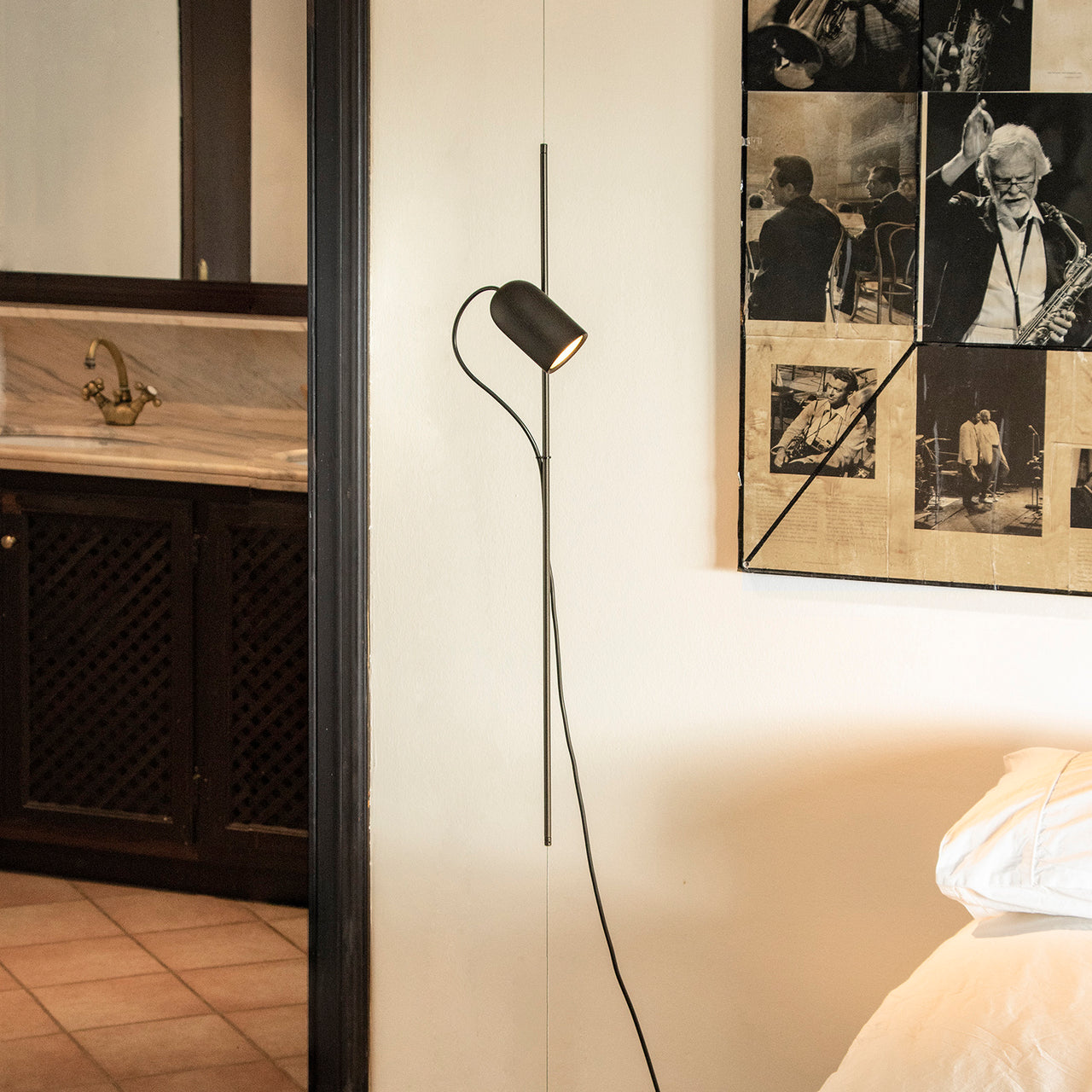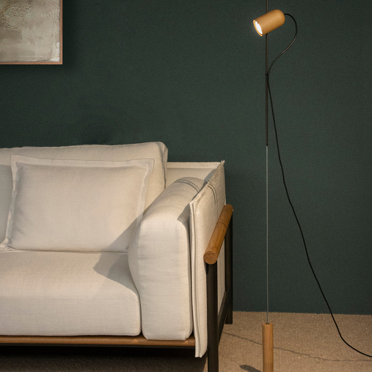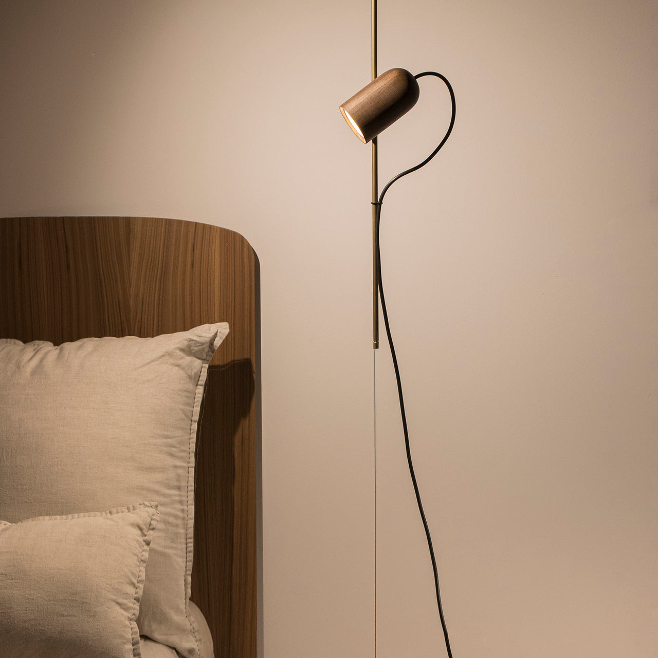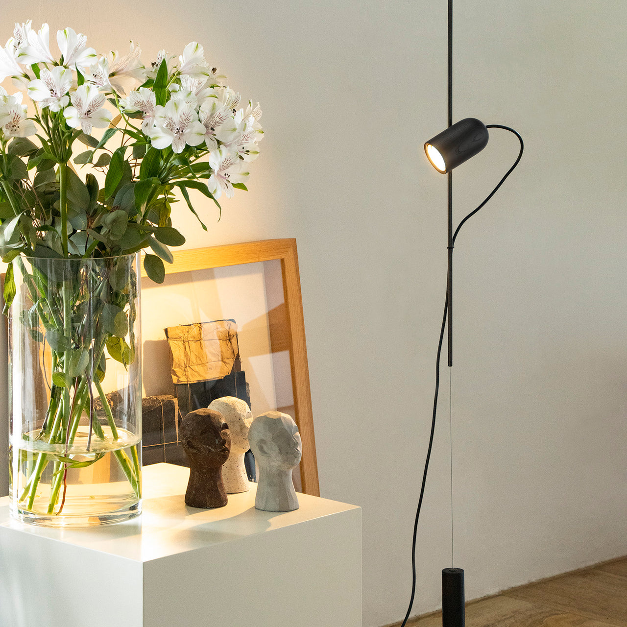 The Onfa Pendant Lamp pairs natural wood with metal for a refined look. Its metal body, available in brass or graphite finishes, is complemented by a spotlight and pendulum crafted from walnut, oak, or black ash wood. A magnet-based mechanism allows for easy adjustment of the light’s direction, adding flexibility.