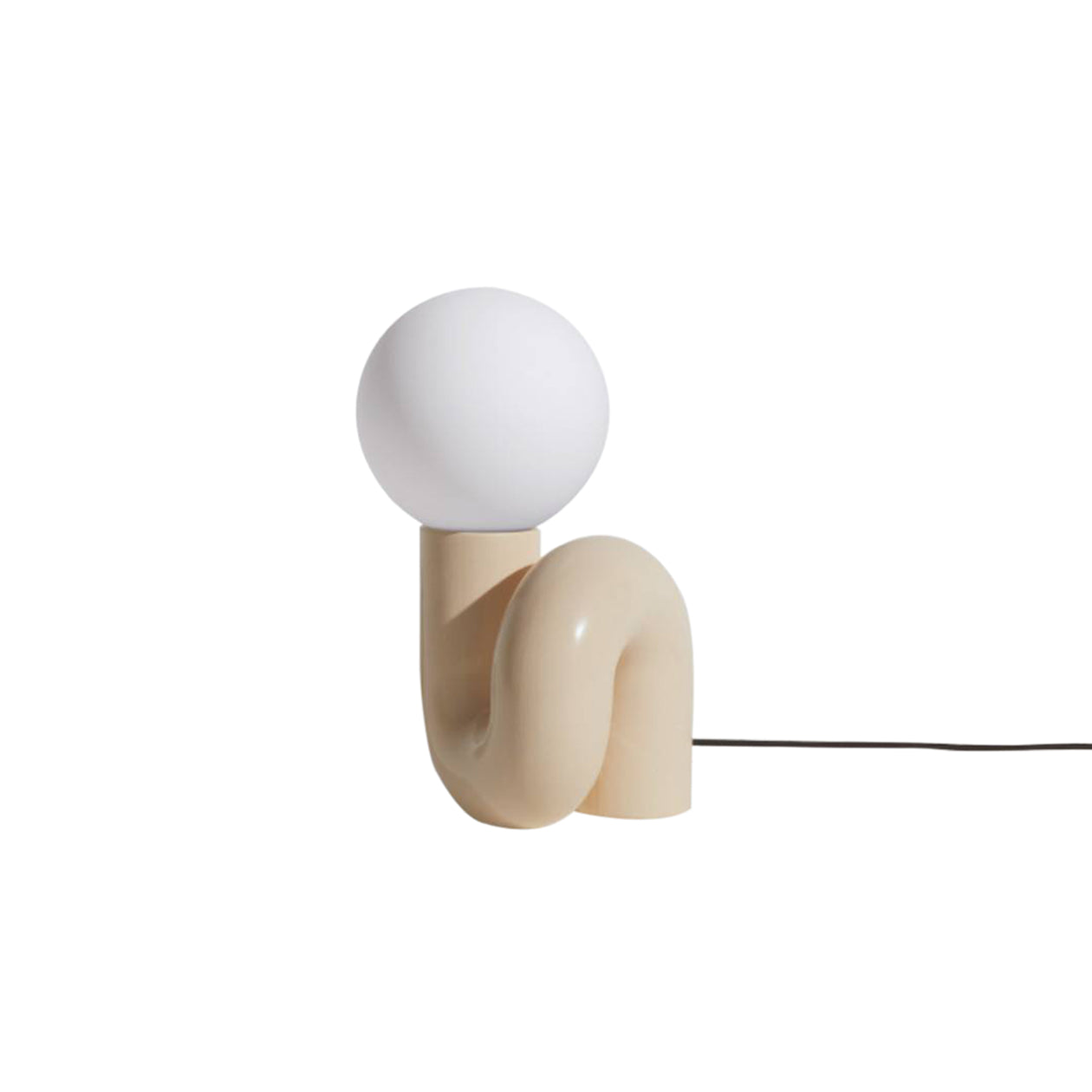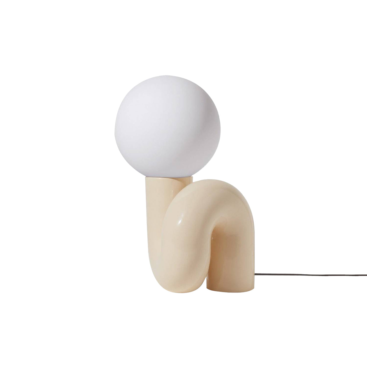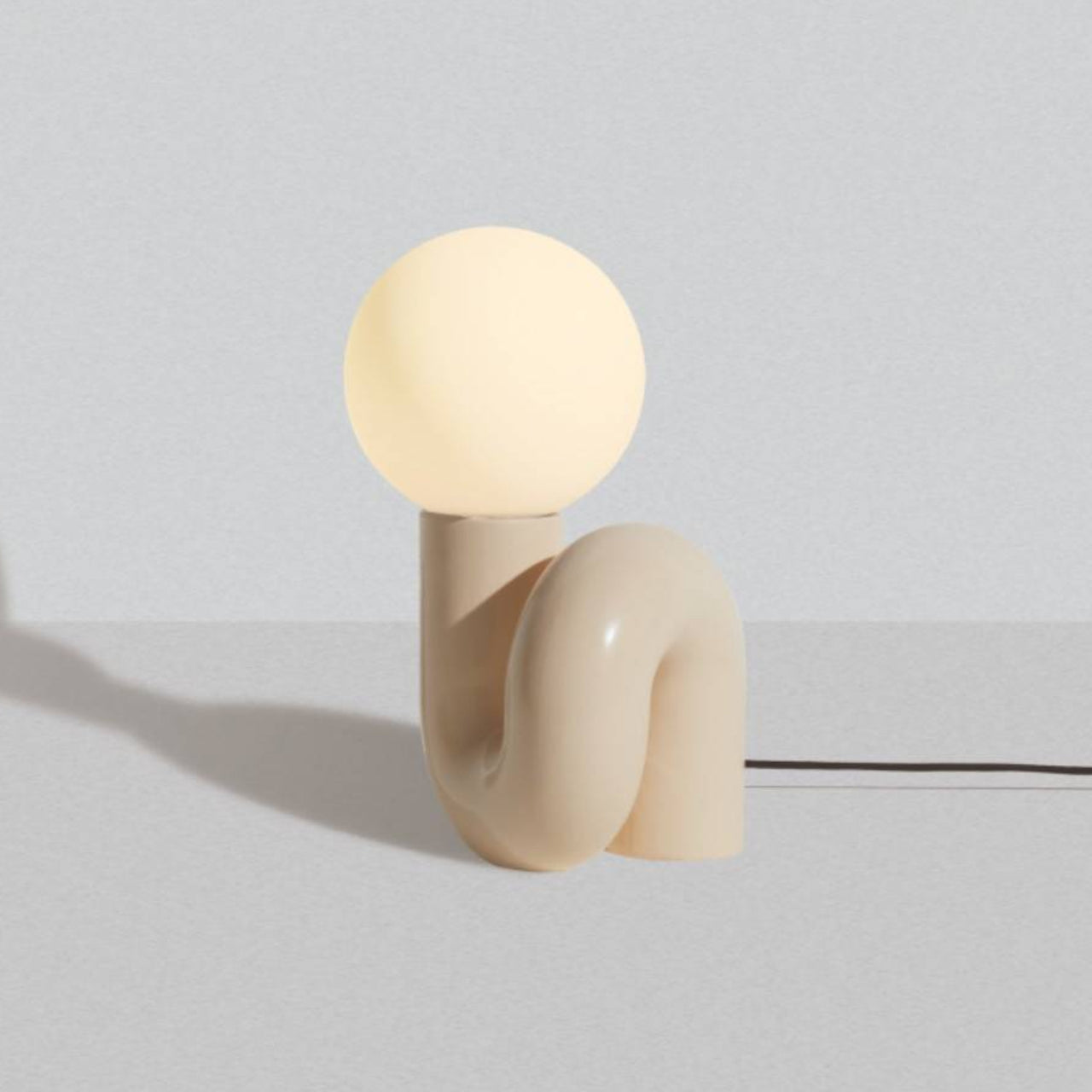 With a Pop Art appeal, Neotenic flaunts its bulging round form with a base amusingly shaped like corkscrew pasta in Paris-based Petite Friture's first collaboration with Brooklyn NY design studio Jumbo. Fashioned by ceramists in Portugal, the stand's curvature requires a meticulous manual molding and finishing process. Powered by an integrated LED inside the glass globe shade, the warm quality of the light is pleasant, even and accomodatingly powerful.
