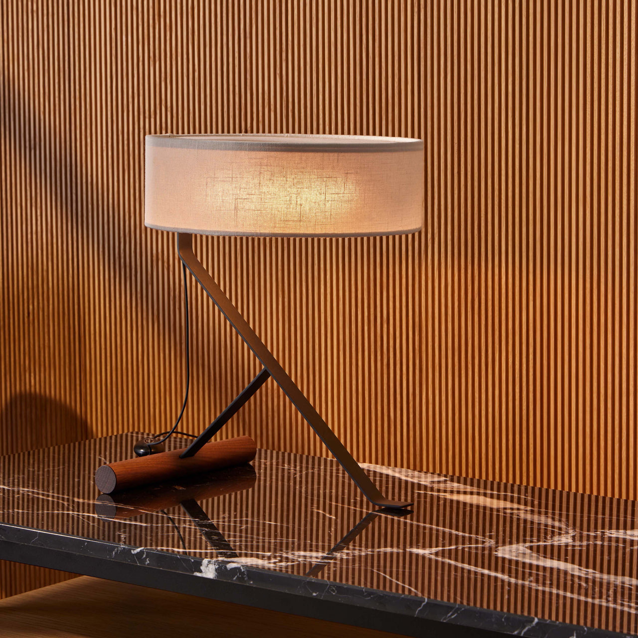 Inspired by stately '50s-era downtown office buildings, Norm Architect's modernist take on Midcentury style extends to accouterments like this table lamp from their Chicago collection. Teaming up with Barcelona maker Punt, the designers juxtapose the textures of a shade in natural cotton textile, a rich walnut wood base and a simple black nickel footing. The light source is pure 21s century though—an integrated dimmable LED tempered by an acrylic diffuser for even, glare-free illumination.