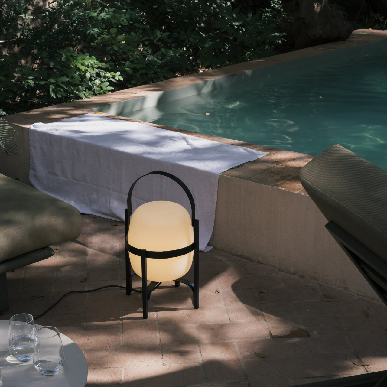 Designer Miguel Milá's beloved ‘60s-era globe lamp originally cradled in a wood stand gets a contemporary outdoor update from Barcelona-based Santa & Cole. With the same aesthetic characteristics as the original and LED lighting efficiency, Cesta’s water-resistant alfresco version comes with an aluminum structure, in black or olive green and an opal polyethylene shade.