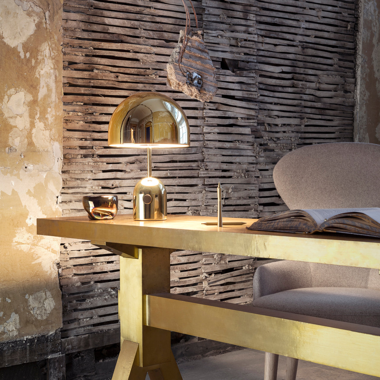 With a gleaming surface that reflects its surroundings, Tom Dixon’s dome-shaded design with its concealed diffuser goes anywhere in this LED-powered portable spin-off. Offering up to 9 hours of soft illumination per battery charge, Bell traverses indoor rooms and outside spaces with ease, its striking contours formed from pressed steel and then plated in a choice of hyper-polished surfaces.