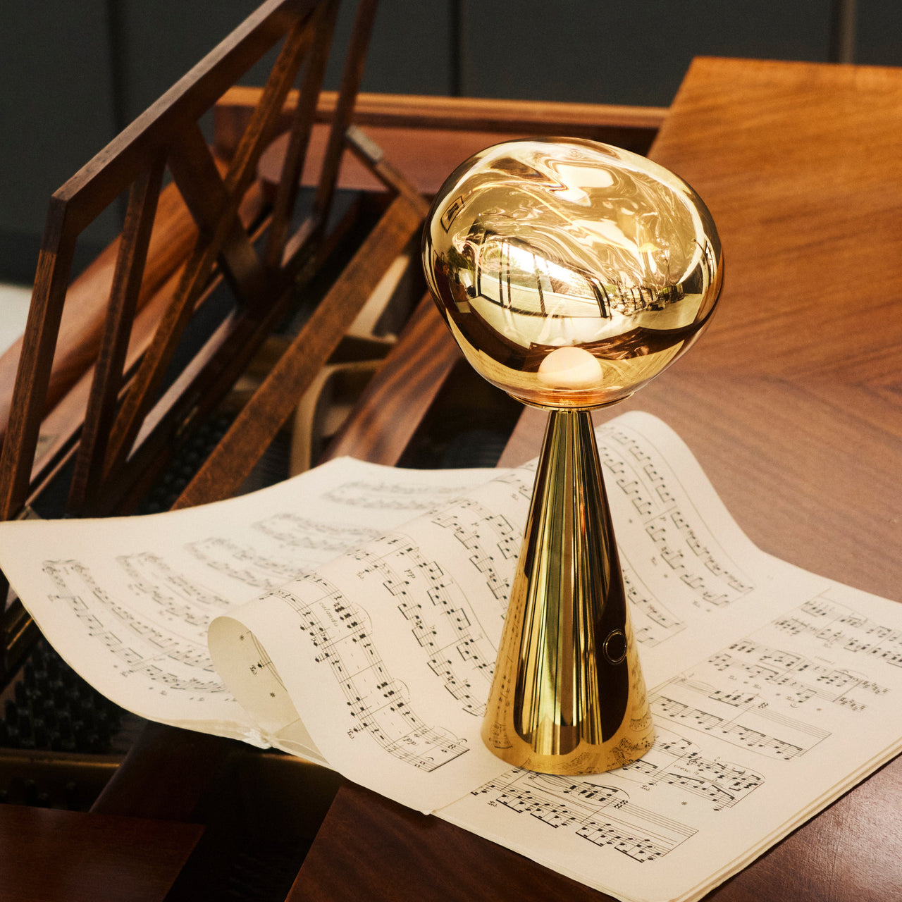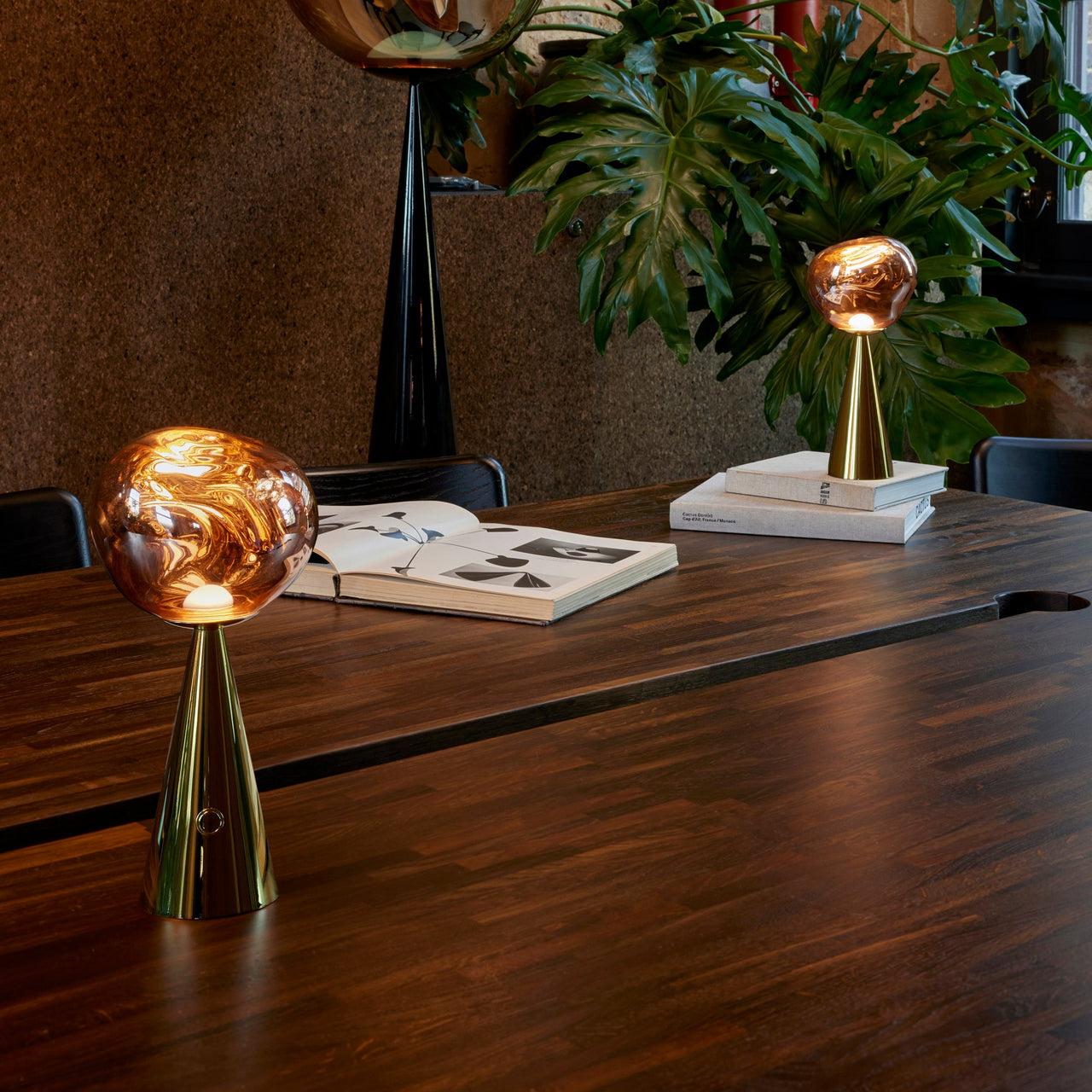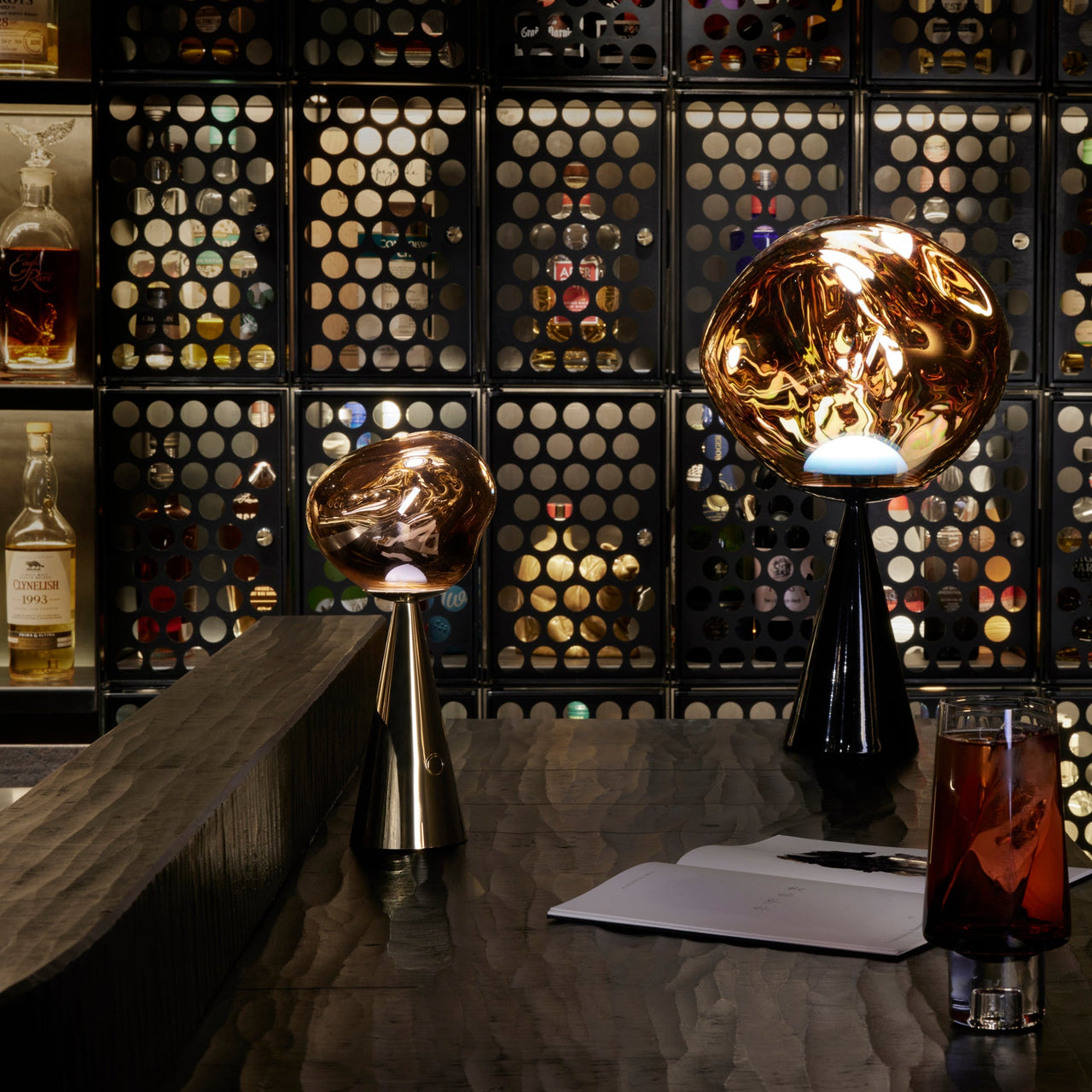 A powerful battery and an energy-efficient LED lend go-anywhere portability to Tom Dixon’s signature Melt, true to the series’ mesmerizing molten-glass effect. For desk, tabletop or even outside to the garden or patio, the lamp brings a diffused glow that lasts up to 10 hours per battery charge—while its sleek range of metallic or black finishes adds extra verve.