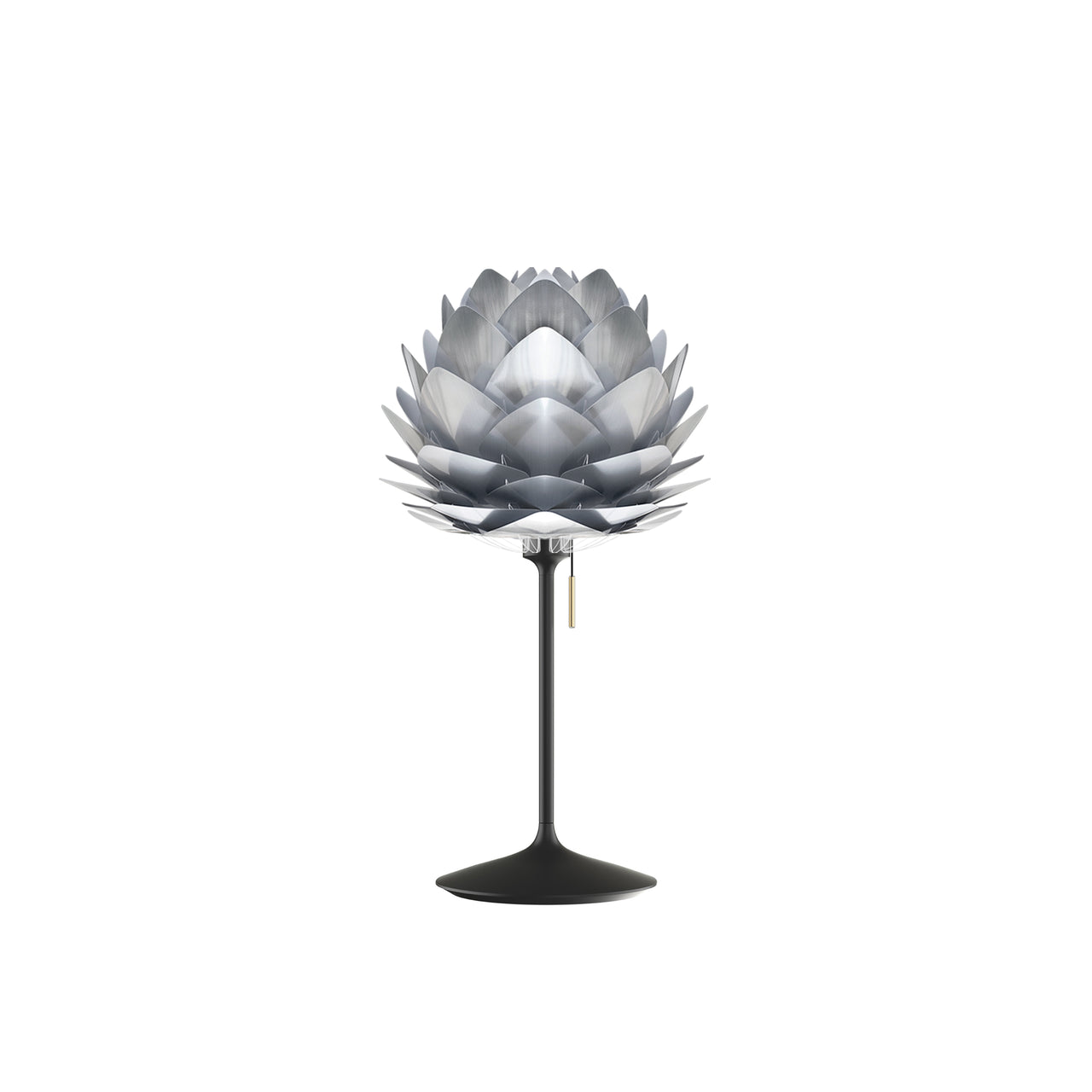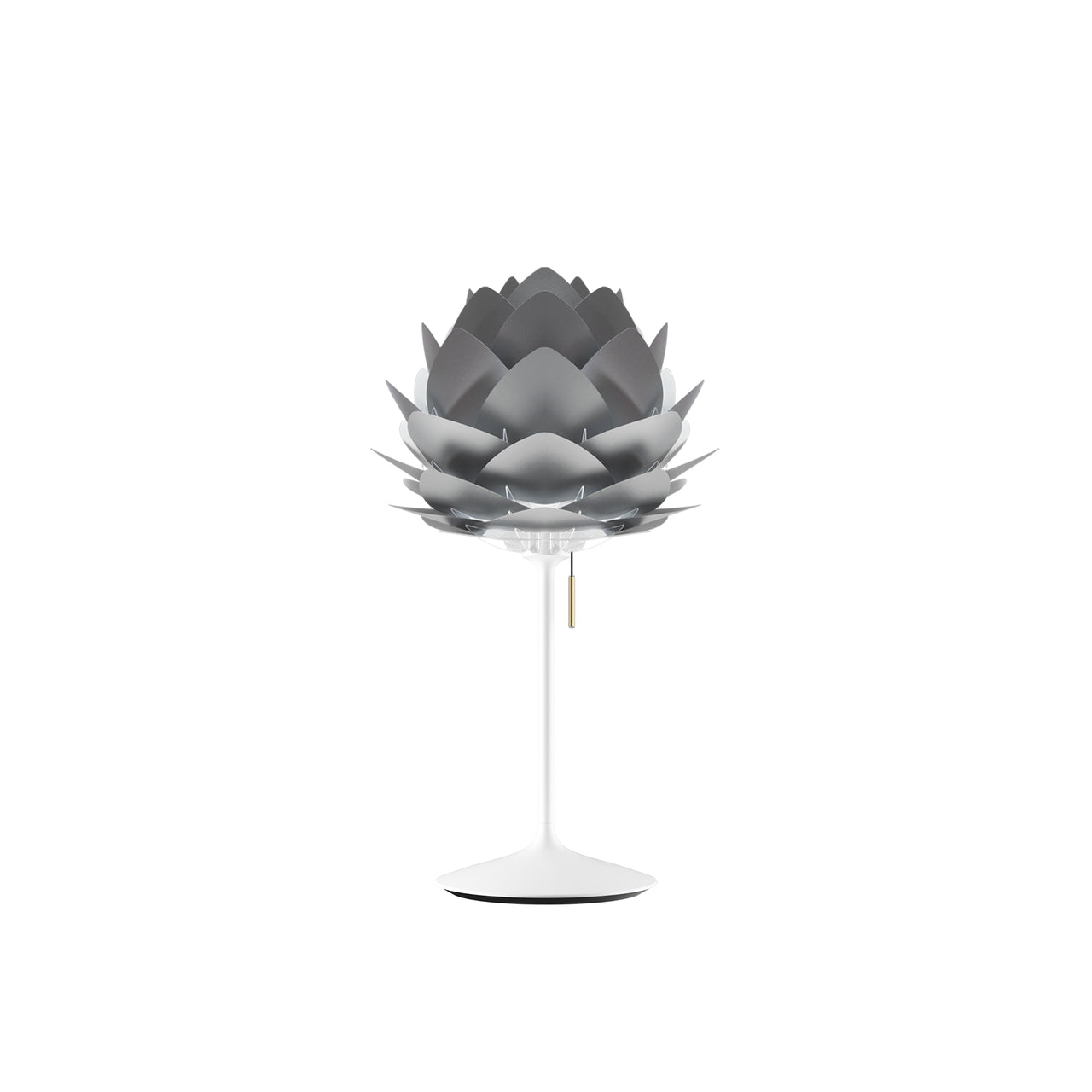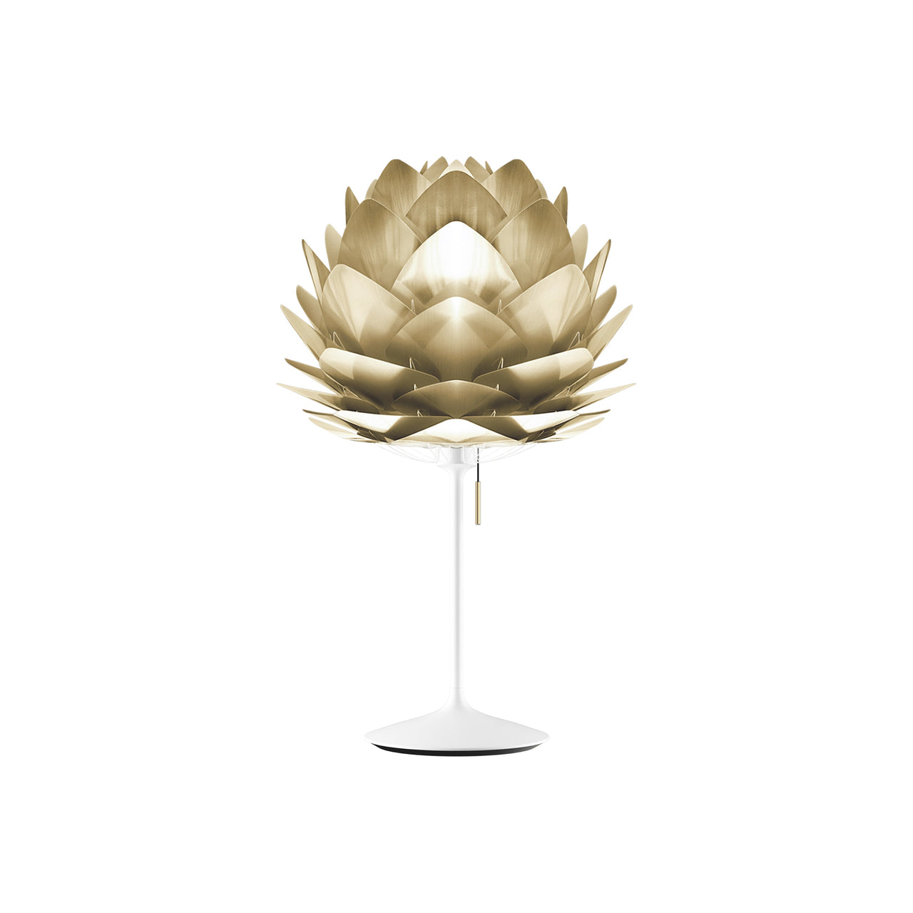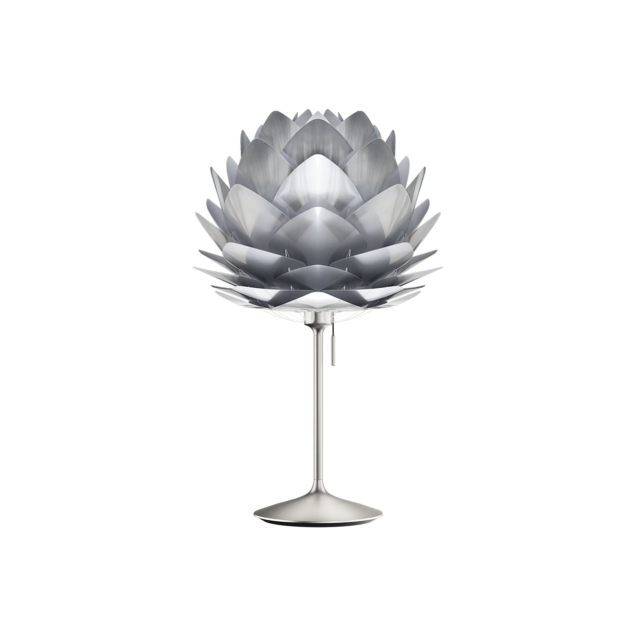 Perched on a slender metal base inspired by a champagne flute, Silvia makes a striking table lamp and offers the added convenience of USB charging for mobile devices even when the light is turned off. Designer Sřren Ravn Christensen's layered metal shade radiates warm, glare-free LED illumination via its unfolding layers, in a choice of rich metallics or crisp white or grey. Available in both the versatile medium size and a charming mini, the budding light complements base options in white, black, brushed steel or brushed brass