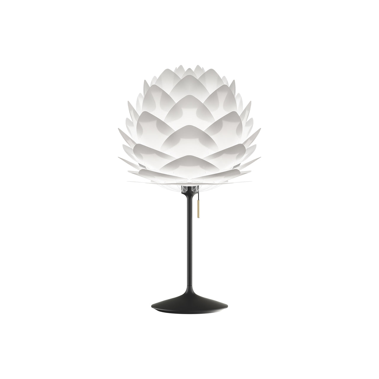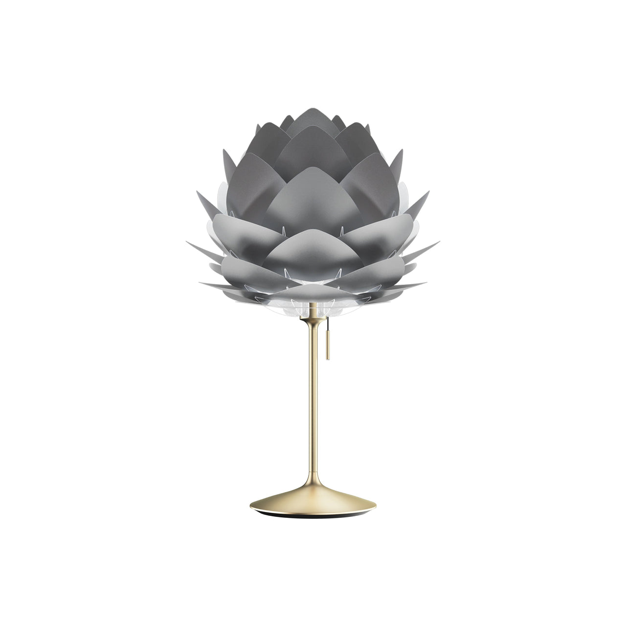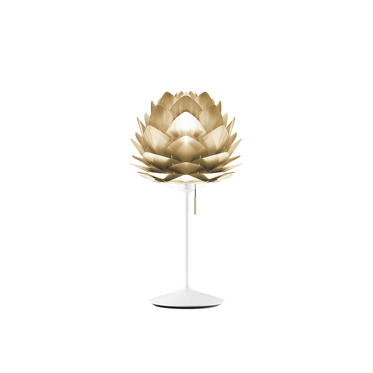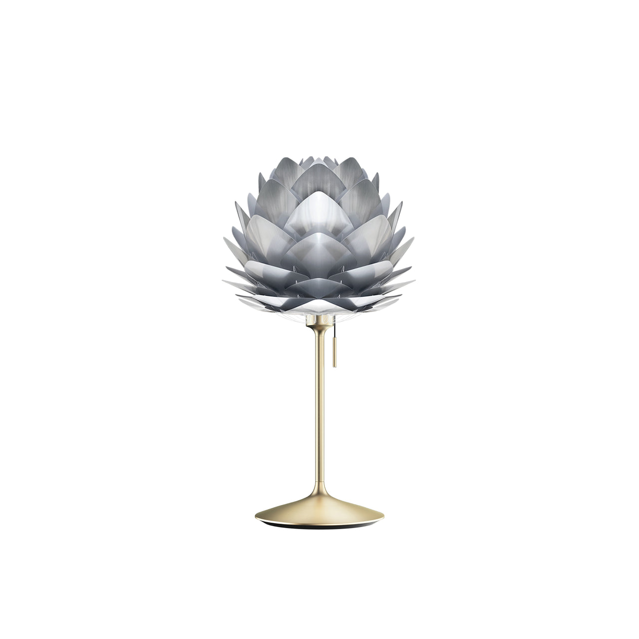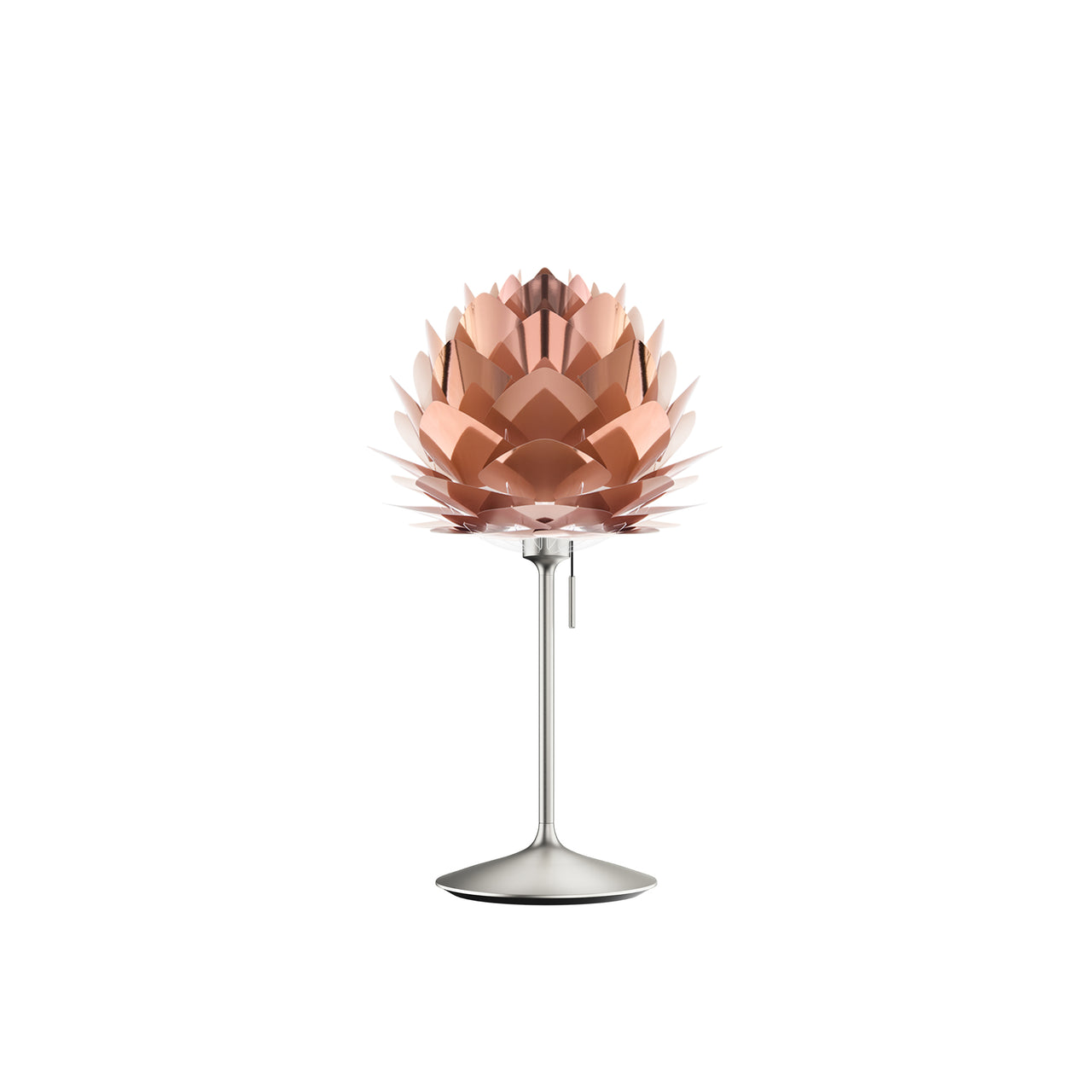 Perched on a slender metal base inspired by a champagne flute, Silvia makes a striking table lamp and offers the added convenience of USB charging for mobile devices even when the light is turned off. Designer Sřren Ravn Christensen's layered metal shade radiates warm, glare-free LED illumination via its unfolding layers, in a choice of rich metallics or crisp white or grey. Available in both the versatile medium size and a charming mini, the budding light complements base options in white, black, brushed steel or brushed brass