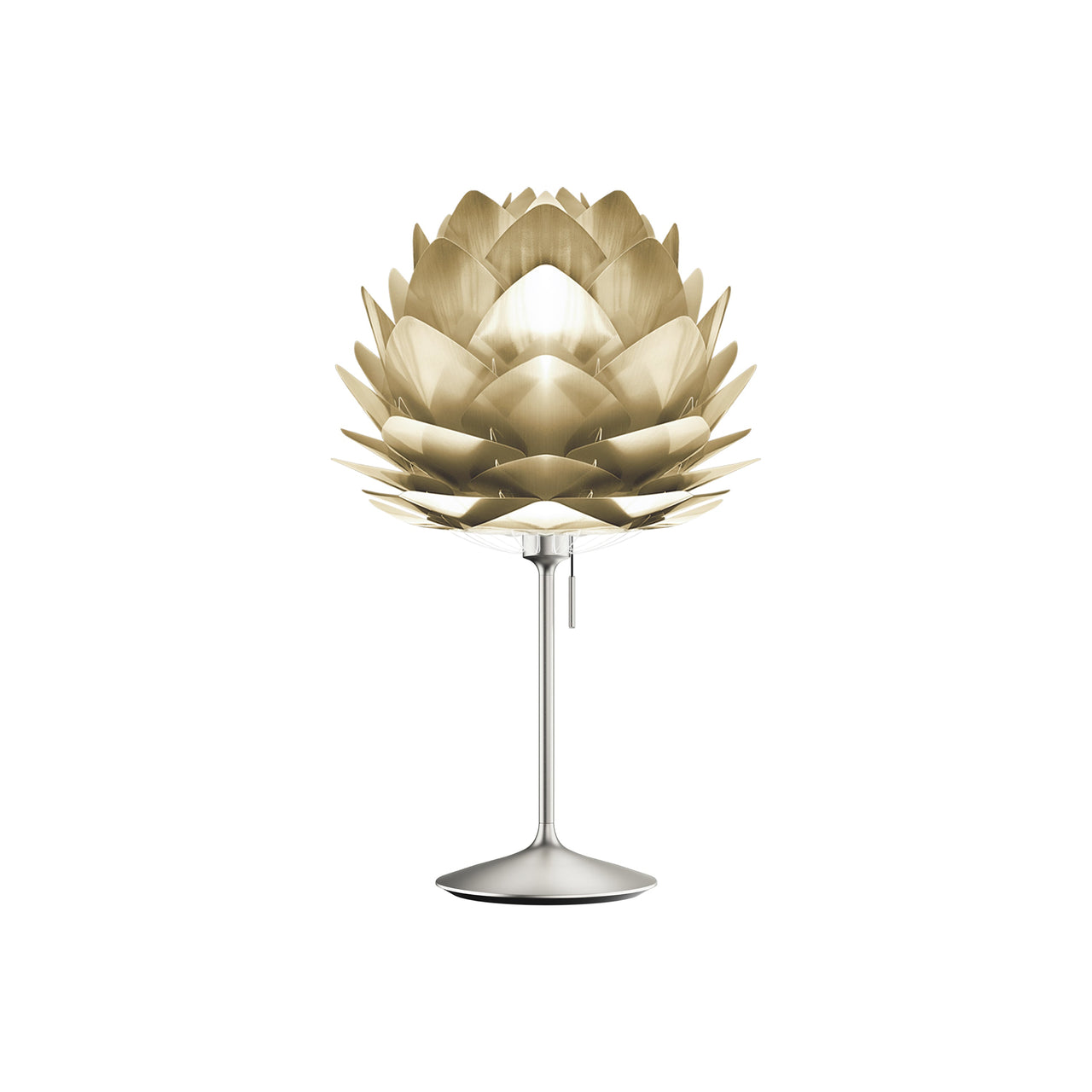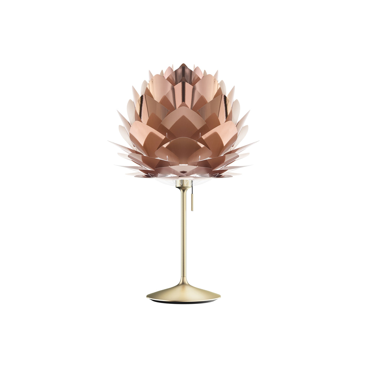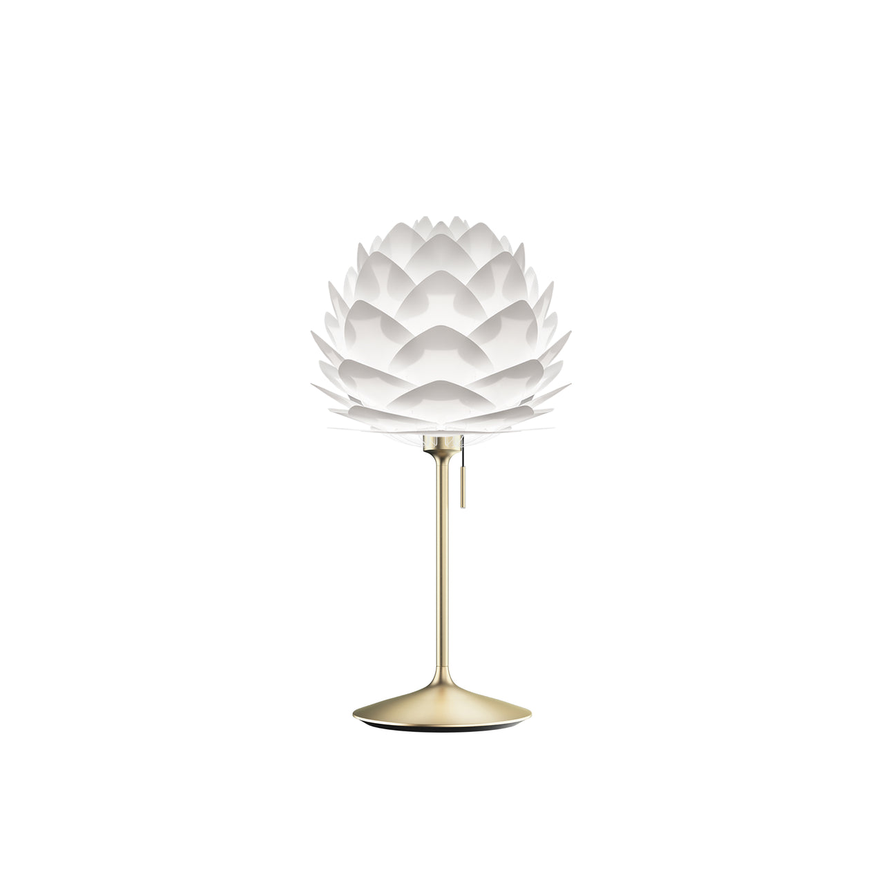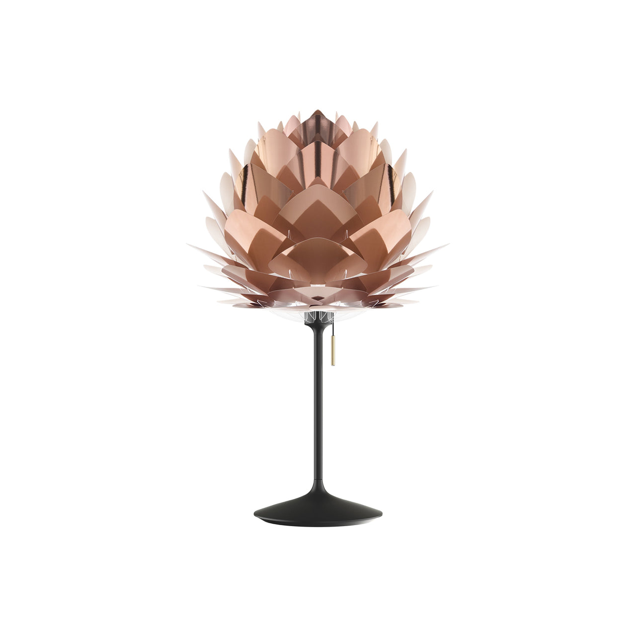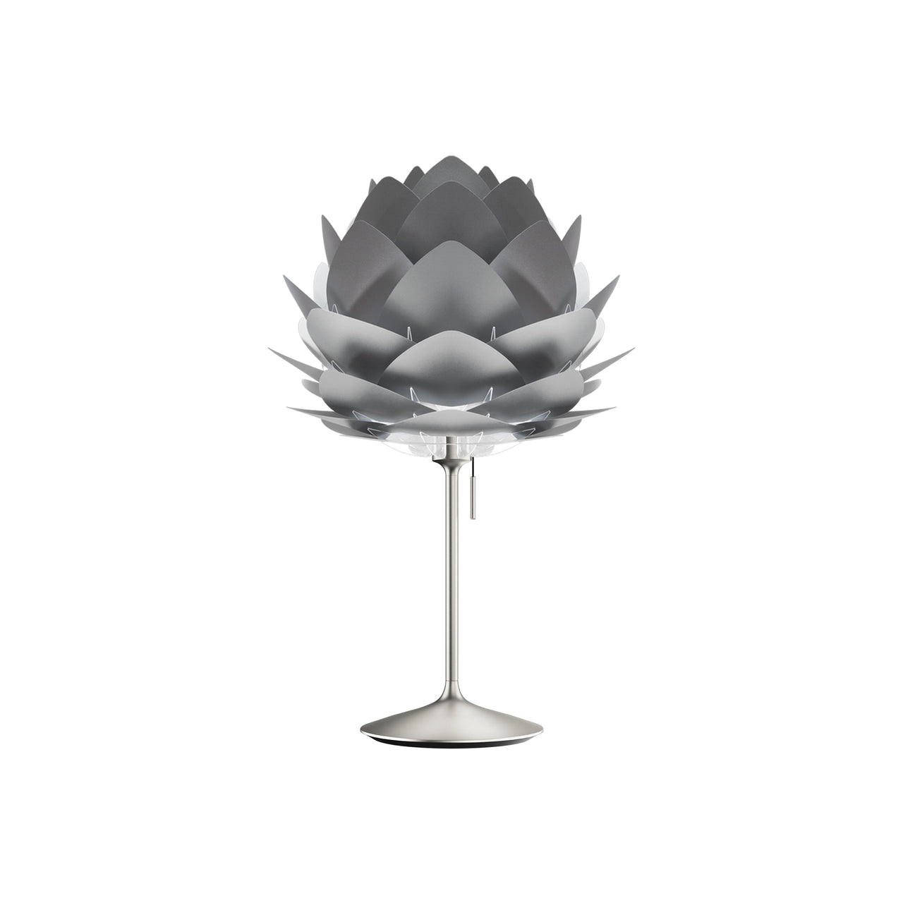 Perched on a slender metal base inspired by a champagne flute, Silvia makes a striking table lamp and offers the added convenience of USB charging for mobile devices even when the light is turned off. Designer Sřren Ravn Christensen's layered metal shade radiates warm, glare-free LED illumination via its unfolding layers, in a choice of rich metallics or crisp white or grey. Available in both the versatile medium size and a charming mini, the budding light complements base options in white, black, brushed steel or brushed brass