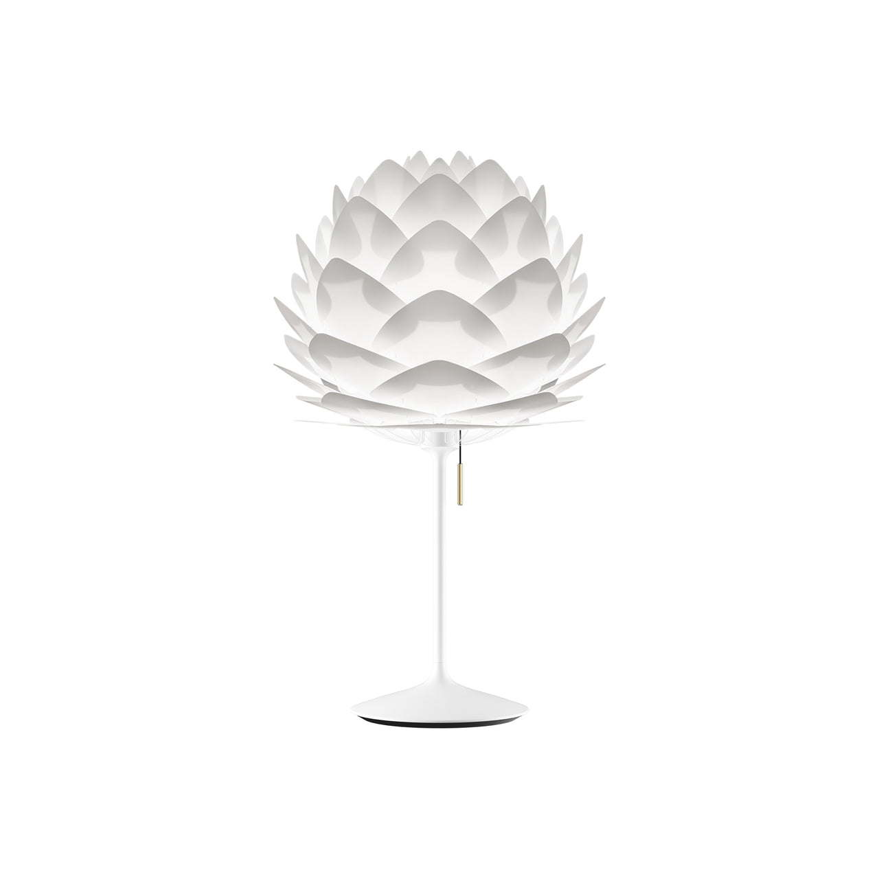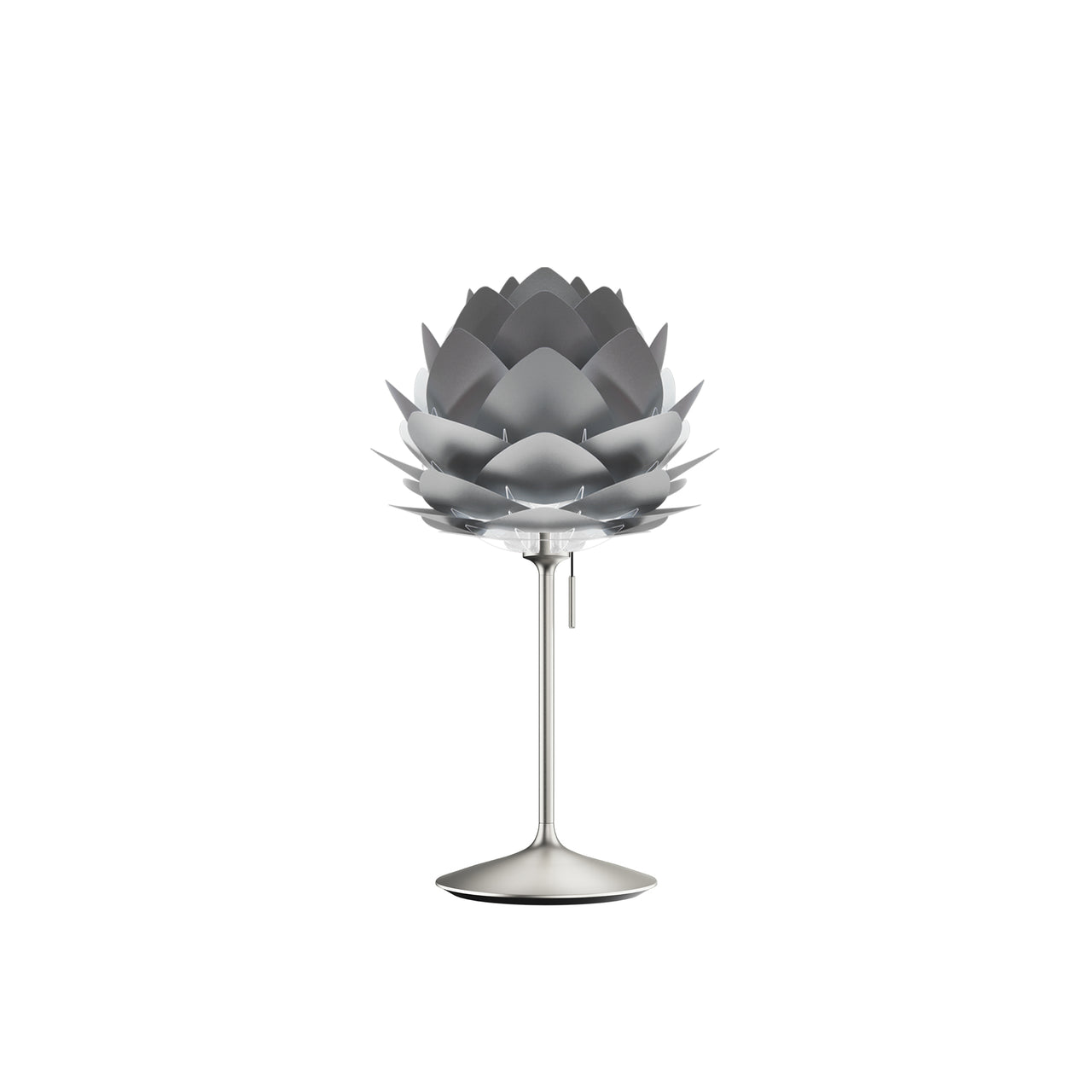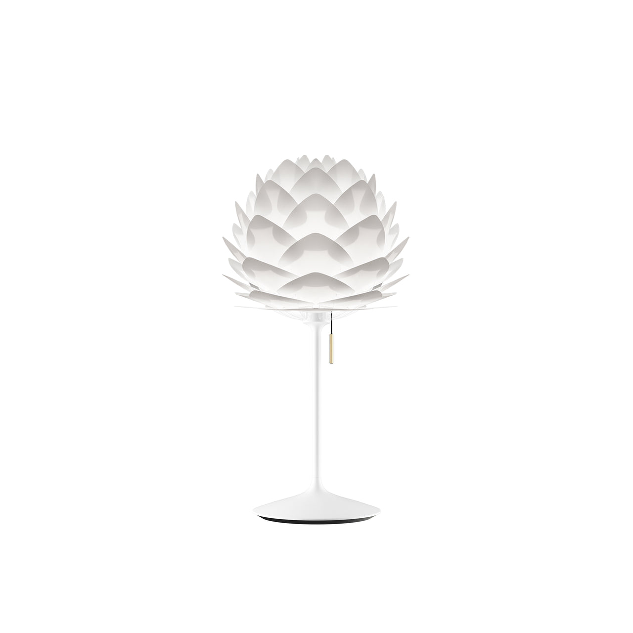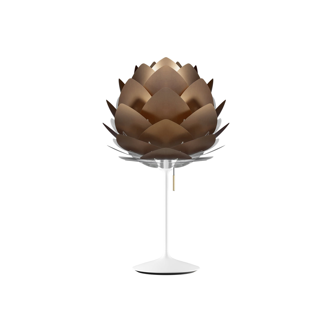 Perched on a slender metal base inspired by a champagne flute, Silvia makes a striking table lamp and offers the added convenience of USB charging for mobile devices even when the light is turned off. Designer Sřren Ravn Christensen's layered metal shade radiates warm, glare-free LED illumination via its unfolding layers, in a choice of rich metallics or crisp white or grey. Available in both the versatile medium size and a charming mini, the budding light complements base options in white, black, brushed steel or brushed brass
