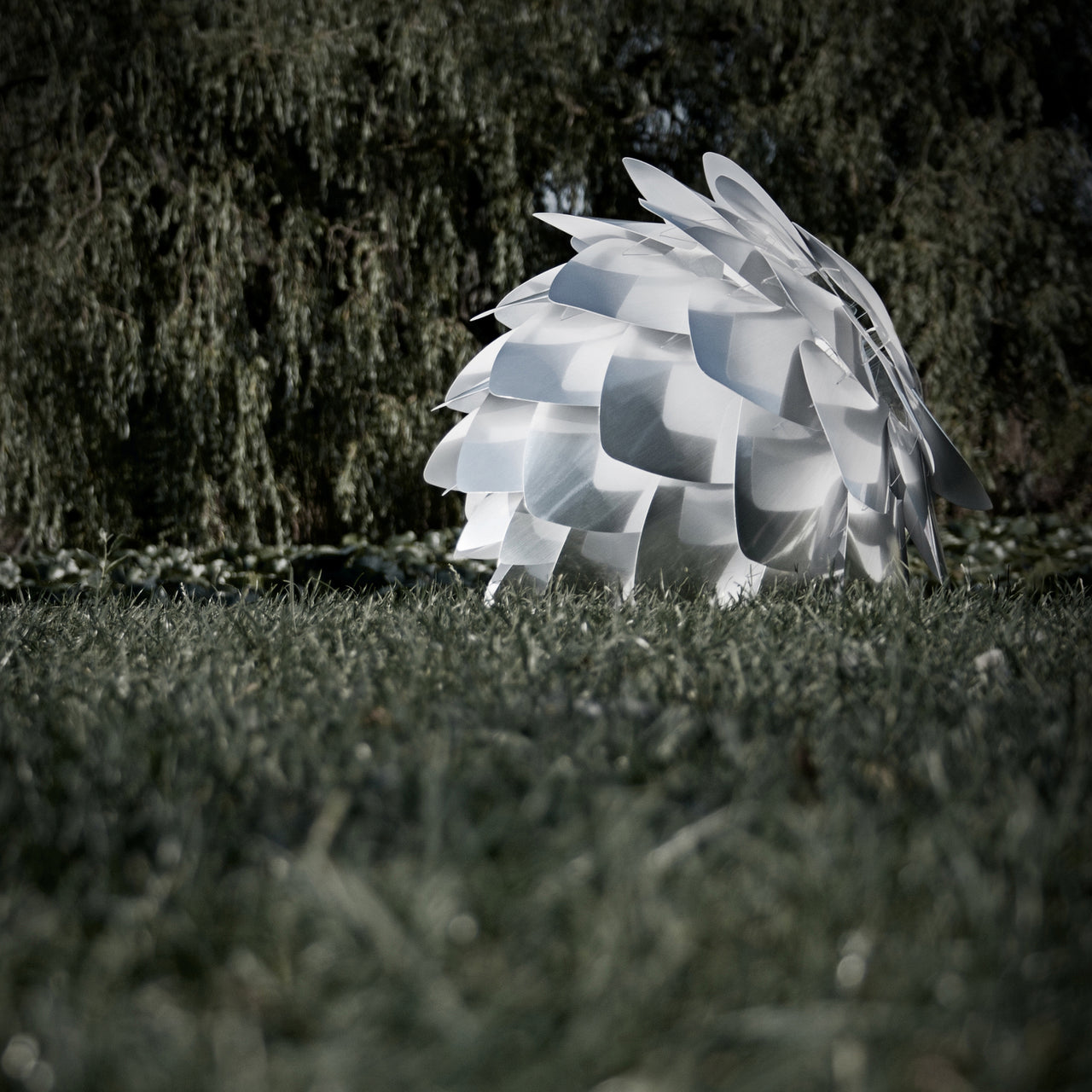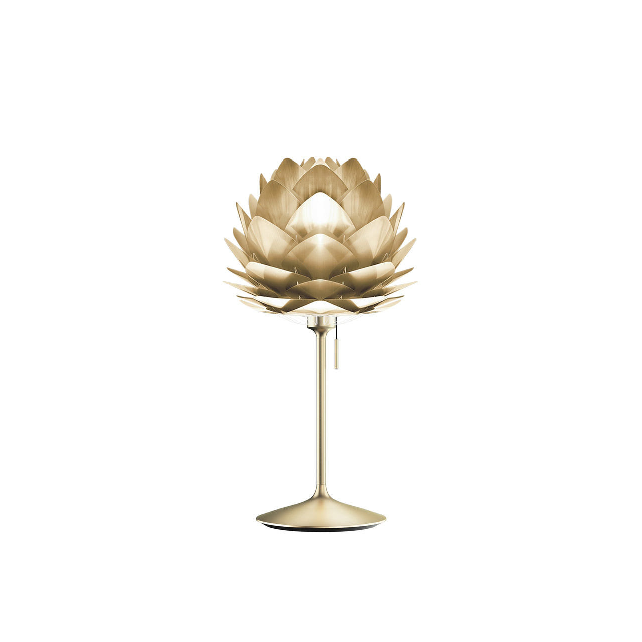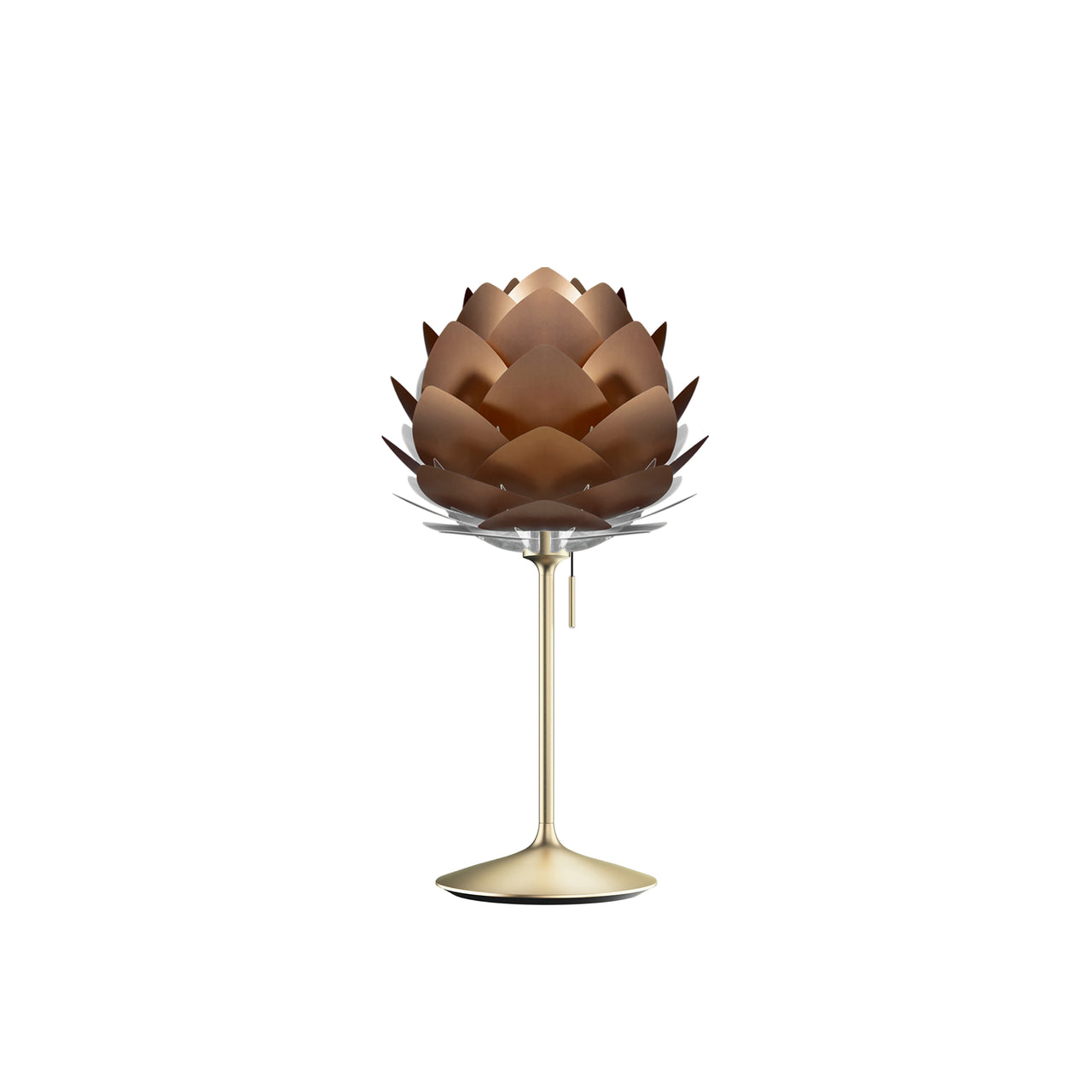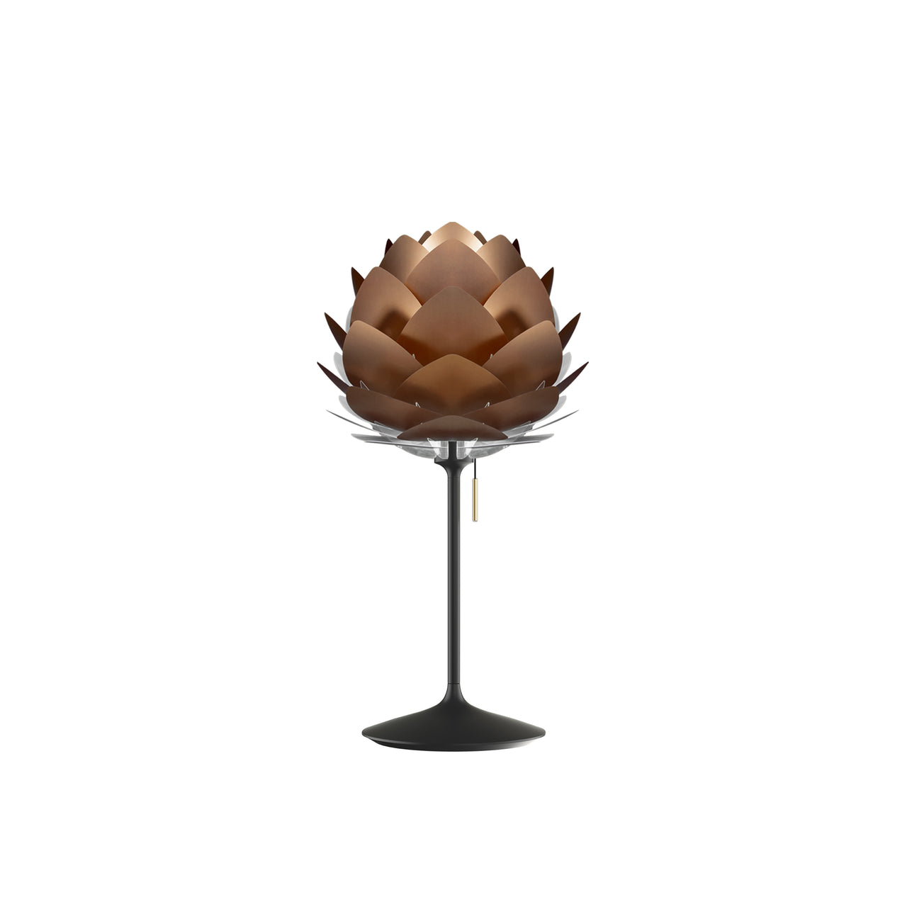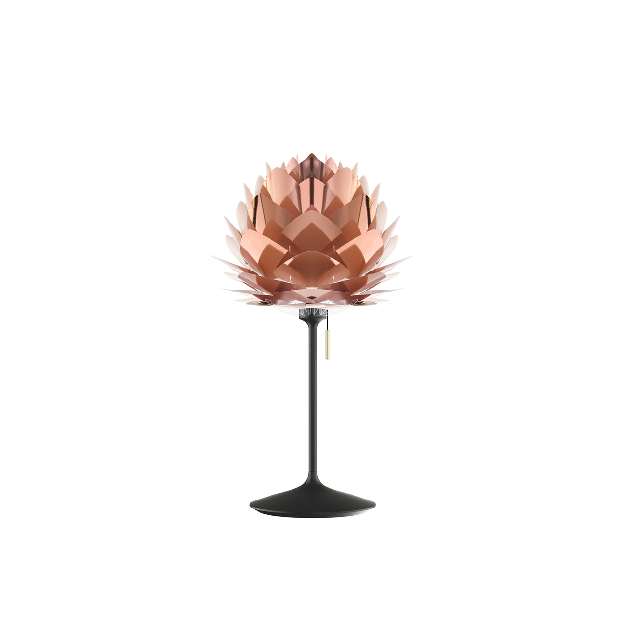 Perched on a slender metal base inspired by a champagne flute, Silvia makes a striking table lamp and offers the added convenience of USB charging for mobile devices even when the light is turned off. Designer Sřren Ravn Christensen's layered metal shade radiates warm, glare-free LED illumination via its unfolding layers, in a choice of rich metallics or crisp white or grey. Available in both the versatile medium size and a charming mini, the budding light complements base options in white, black, brushed steel or brushed brass