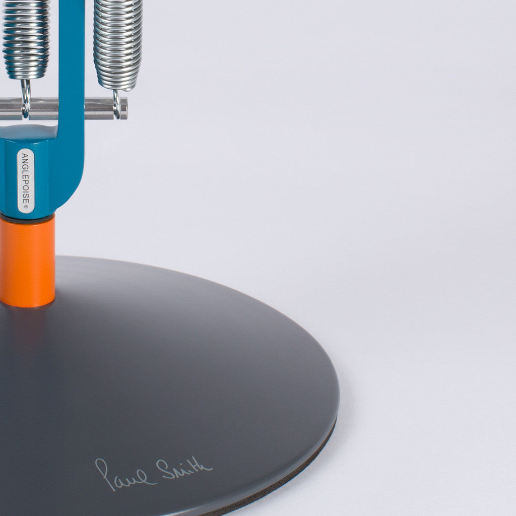 As summer turns to autumn, so too the Type 75 Desk Lamp: Paul Smith Edition Two "hues" to a deeper, richer palette. The acclaimed British designer known as a master colorist combines dark jewel tones with slate blue and cool grey. Then, in signature fashion, he punctuates the mix with a dollop of bold orange in his second adaptation of the Anglepoise classic. The adjustable-arm lamp has been beloved by Brits almost since its inventor, automobile designer George Carwardine, first patented a new kind of helical spring that he used to create the forerunner to the Type 75 in the 1930s. Now this post-modern makeover proves its timeless appeal.