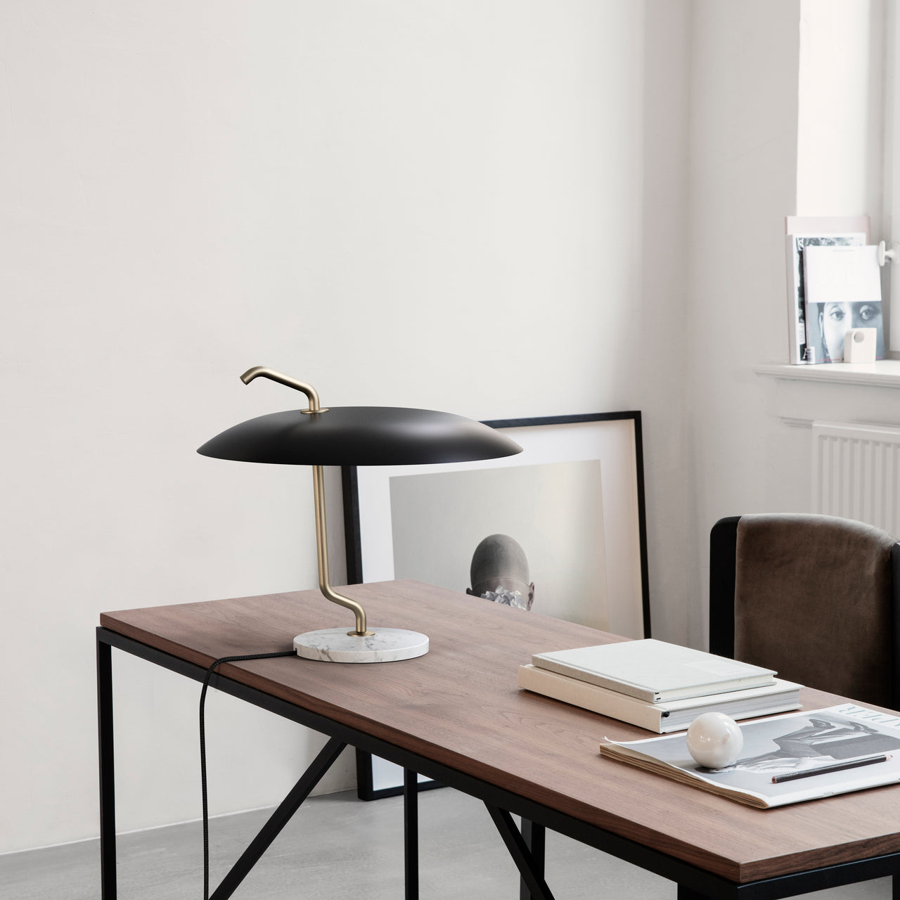 Model 537 Table Lamp: Black + Black Marble