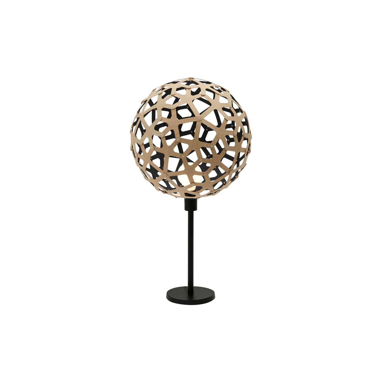 Inspired by nature and geometric polyhedra, Coral was David Trubridge's first-launched lighting design as a pendant and also makes for a bewitching table lamp. Fashioned in sustainable bamboo, the light’s timeless cutout pattern emits beautiful shadow patterns—and it comes in a raft of natural and accent color choices with matching or contrasting interiors.