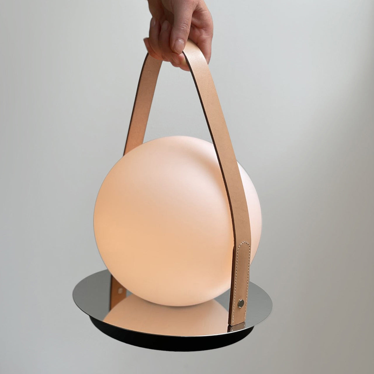 Steel, opal glass, leather