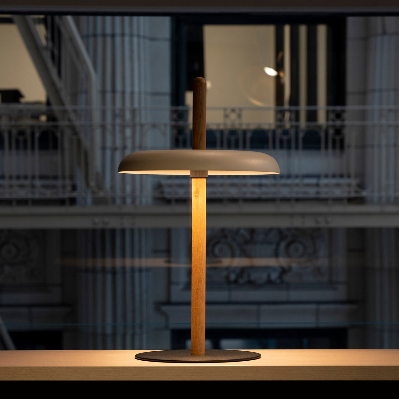 Go-anywhere portable lamps have become an essential both inside and outdoors and Pablo has a standout in Nivél, with a cleverly designed shade that slides up and down on its center wood post secured to a steel table base. Warmly ambient, downward-facing illumination radiates from the integrated LED flat panel—an unobtrusive light source for home or office. The upright comes in solid oak or walnut with steel shade in powder-coated hues as well as white and black.