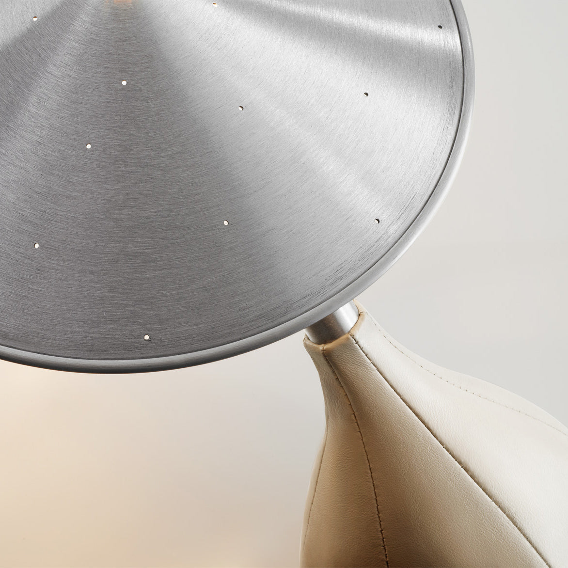 The Piccola Table Lamp was the move that started it all for designer-entrepreneur Pablo Pardo. His inaugural product epitomizes his "less is more" ideal—delivered with a playful twist. Italian glove leather covers the soft and pliable base which can be tilted to any angle, while the aluminum shade floats to remain level. Organic, tactile and inviting by design, Piccola resides in San Francisco's Museum of Modern Art permanent collection and was honored with ID Magazine's Gold Award.
