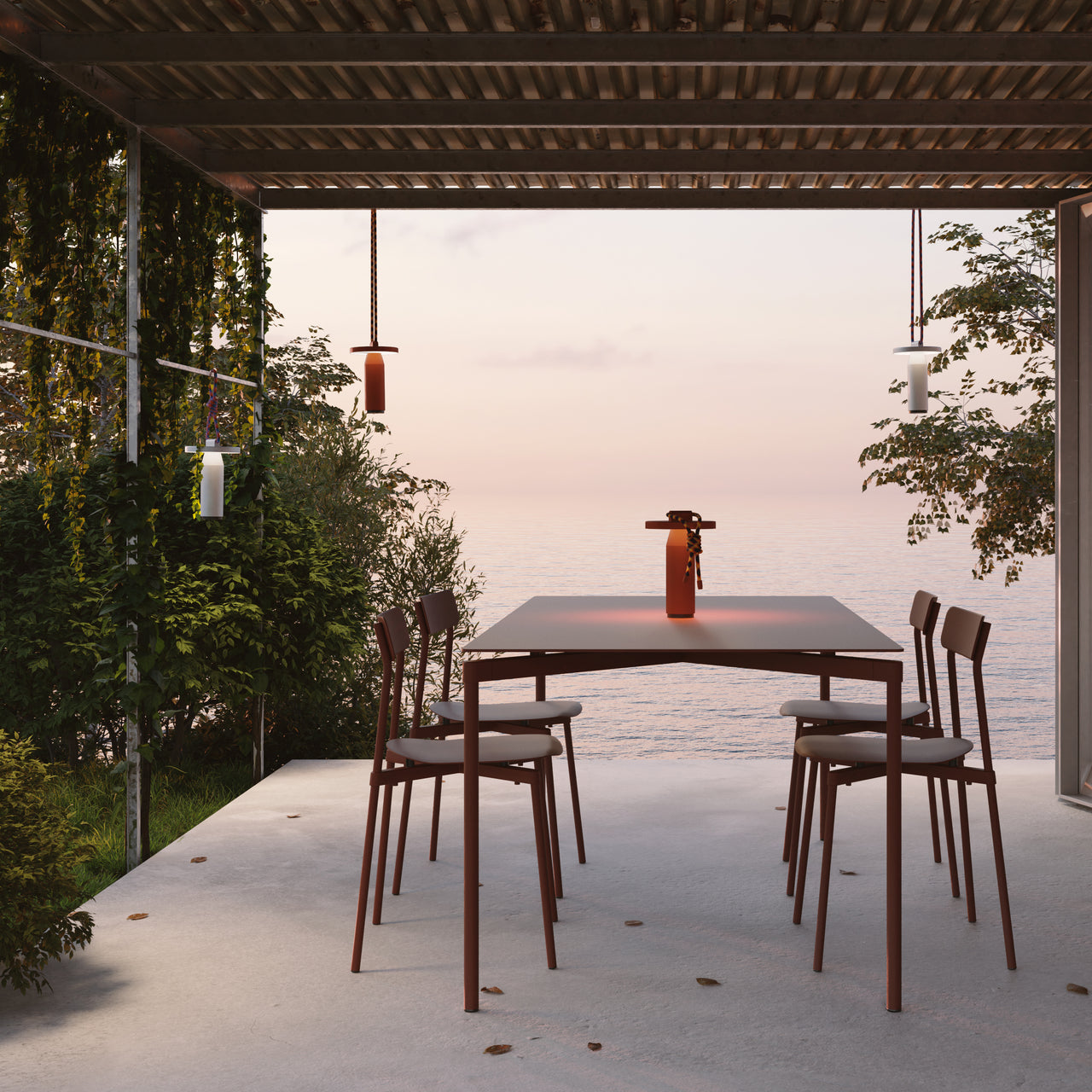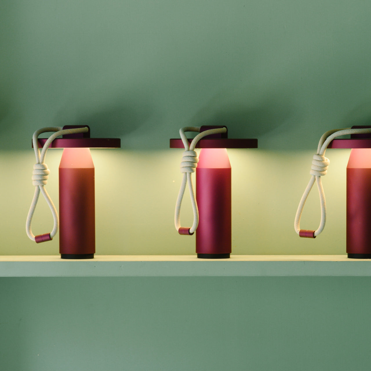 With the cool panache of French maker Petite Friture, designer Sammy Rio's portable lamp readily segues from inside to outdoors and can be hung almost anywhere. Environmentally friendly, Quasar's low-energy, dimmable LED toggles between 3 color temperatures and the rechargeable light lasts from 6 to 12 hours. In a sleek waterproof aluminum housing made from 20% recycled metal, the lamp's accompanying weather-resistant rope can be untied to extend down further.